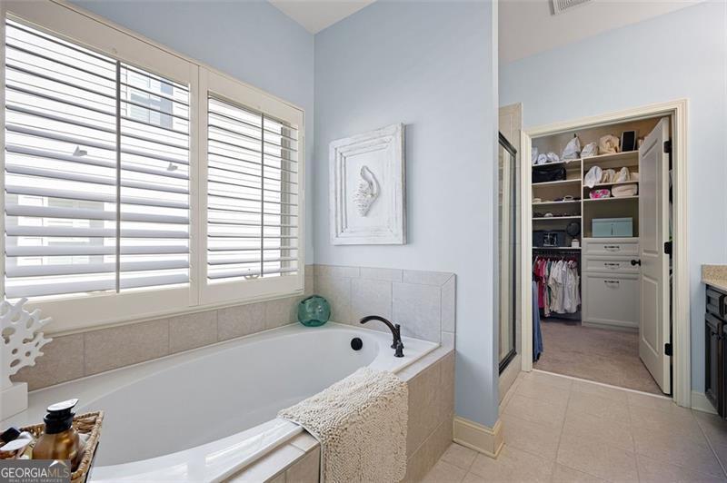 - Interior FeaturesHigh Ceilings, Double Vanity, Master On Main Level, Walk-In Closet(s), Pulldown Attic Stairs, Soaking Tub, Attic Expandable