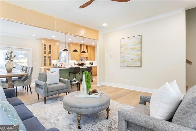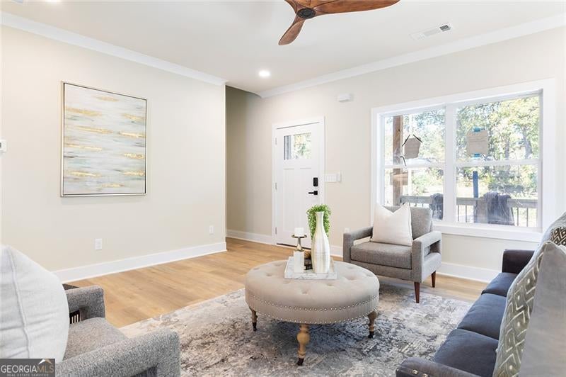 Welcome to your modern sanctuary where everyday living feels easy and entertaining comes naturally. This brand new construction home sits on a generous lot with a welcoming front porch that invites slow mornings and friendly hellos. Step inside to an open concept layout that delivers the ultimate entertainer's flow. The expansive kitchen is the star of the show with a grand island that seats a crowd for coffee or cocktails. Abundant cabinetry keeps everything tidy plus a walk in pantry for all your hosting essentials. A gas range with vent hood and pot filler is ready for every culinary adventure. There is even a water filler for your dog bowl which makes life a little more joyful for everyone. A full bedroom and bath on the main level offers the flexibility you need for overnight guests or the perfect private home office. Tucked just off the kitchen is a full size laundry room with valuable extra storage. The upper level is all about comfort. Your primary retreat is a true getaway with a spa-like bath that features dual vanities, a separate shower and a deep soaking tub for the moments that call for relaxation. The huge walk in closet keeps wardrobe dreams organized. Two additional bedrooms share a convenient Jack and Jill bath, ideal for family or friends. Take the fun outdoors on the deck designed for grilling and gatherings with plenty of space for everyone to enjoy. The fenced yard lets pups and playtime take center stage. Everyday conveniences are just around the corner with I-20 close by plus easy access to the East Lake Golf Course and favorites like the East Lake Publix and the YMCA. Your dream of modern comfort and spirited living starts right here.