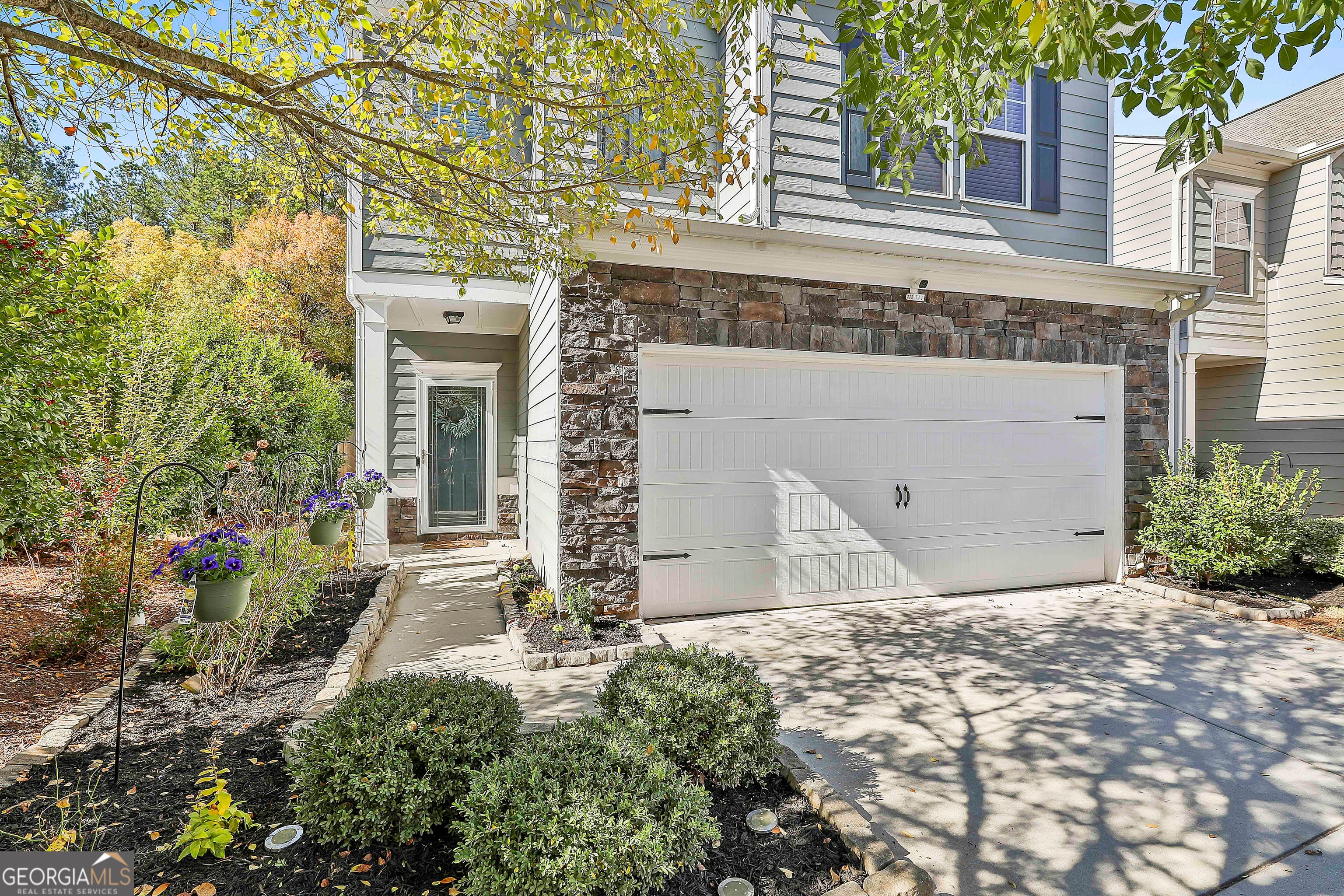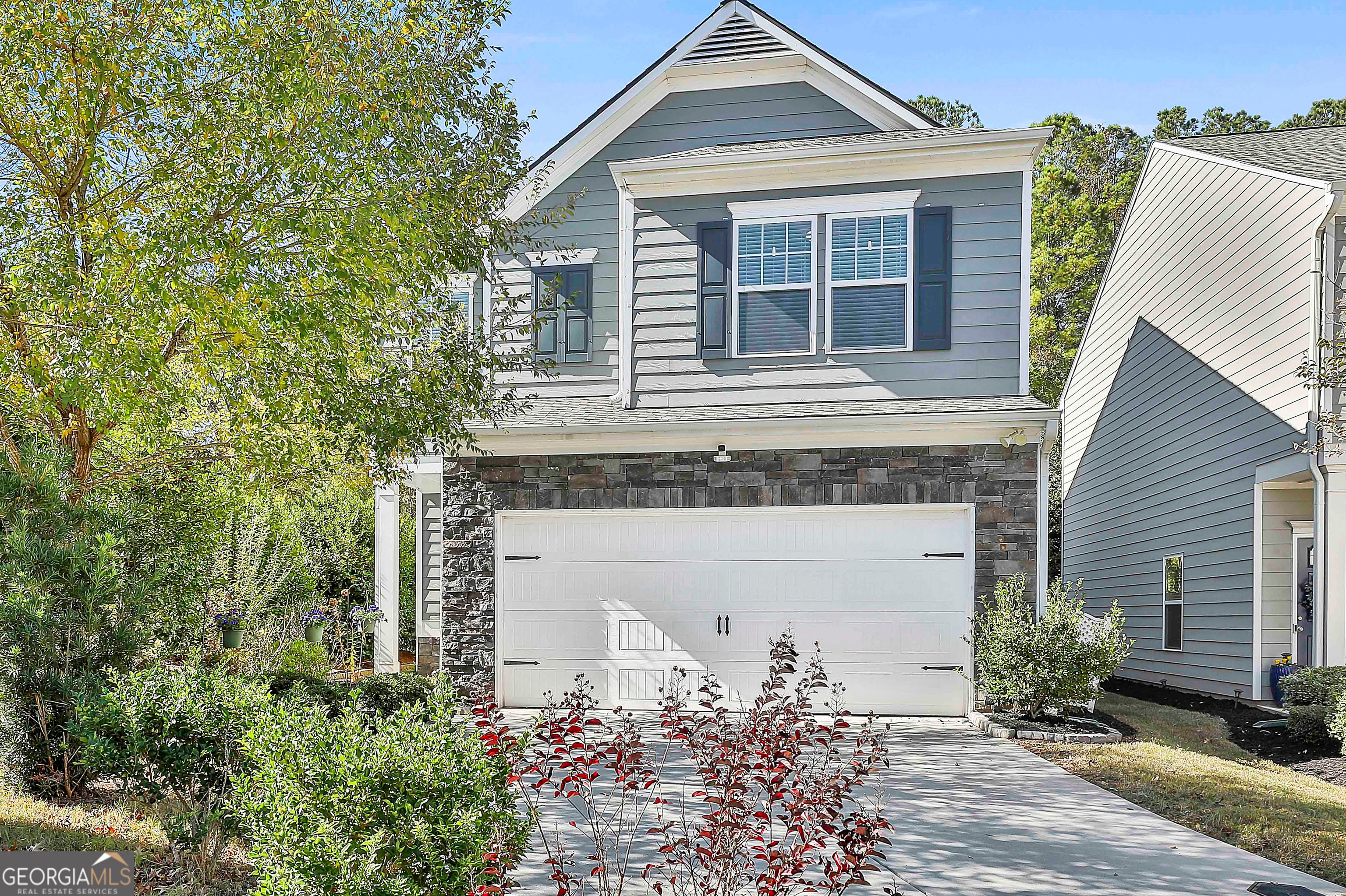 WELCOME TO YOUR NEW HOME! This isn't just another house in the neighborhood. From the moment you walk up, you're greeted with flowers, color, and personality - thanks to the beautiful garden that the sellers have poured so much love into. *PLUS - it sits on a semi-private prime lot that is adjacent to an open green space (A rare find in this neighborhood!)* The inside welcomes you with fresh neutral paint and easy-clean vinyl flooring! Large living room features a cozy gas fireplace that you can flip on with a switch (EASY PEASY!!!), and a little sitting area that would make a great play space, reading nook, or even a mini office area! The kitchen is fully equipped with granite countertops, custom white cabinets, stainless steel appliances that remain with the home, and TWO pantries (yes, two!). In addition to the dining area, there is also a raised bar peninsula that is open to the living room that makes for the perfect spot to have an after school snack and catch up on the day with your loved ones! The sellers are also including the washer and dryer so you're already winning! Half bathroom located on the main level as well for your convenience!! At the top of the stairs landing, you'll find the cutest loft/flex space with 3 little windows - this is honestly one of my favorite features of the home because there is so much versatility for this spot such as a tiny library, a playroom, a home office, or somewhere to just enjoy your coffee in the morning before you go downstairs and into reality! ;) SPLIT BEDROOM PLAN! To the left of the stairs, french doors lead you to the primary suite which features a large sitting area, tiered ceilings, and a bathroom so big it deserves its own zip code featuring double vanities with cultured marble countertops, a separate soaking tub and shower, and an ENORMOUS walk-in closet. Across the hall, two spacious secondary bedrooms and their own full bathroom. SUPER PRIVATE + FENCED IN back yard has been meticulously landscaped and loved dearly (peep the photos from the seller on the kitchen table to see how the garden blooms in season - it is absolutely gorgeous!!!) AND JUST WAIT UNTIL YOU SEE THE GARAGE - Right now, it's decked out like a full-blown man cave dream come true - complete with dartboard, a pool table (**available for purchase!!**), and more, BUT THE BEST PART - the seller installed a minisplit HVAC system so your garage is fully climate controlled. How cool is that?!?! Man cave not your thing? NO WORRIES! It's still a totally normal/boring 2-car garage underneath it all ;) You can park in it, play in it, or make it whatever you want! All of this in Madison Park at Newnan Lakes, where you're just minutes from downtown, shopping, and dining - with community perks like a neighborhood pool, sidewalks, scenic trails around the lake, and well-maintained common spaces. If you've been searching for a low-maintenance home that also has personality, privacy, and practicality - *WITHOUT HAVING TO SACRIFICE BEING IN A PRIME LOCATION* - this is it!!! Schedule your showing today & LETS GET YOU HOME! :)