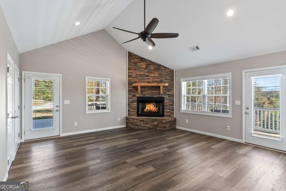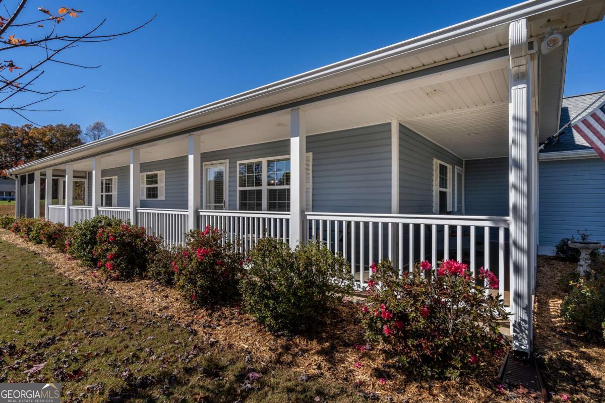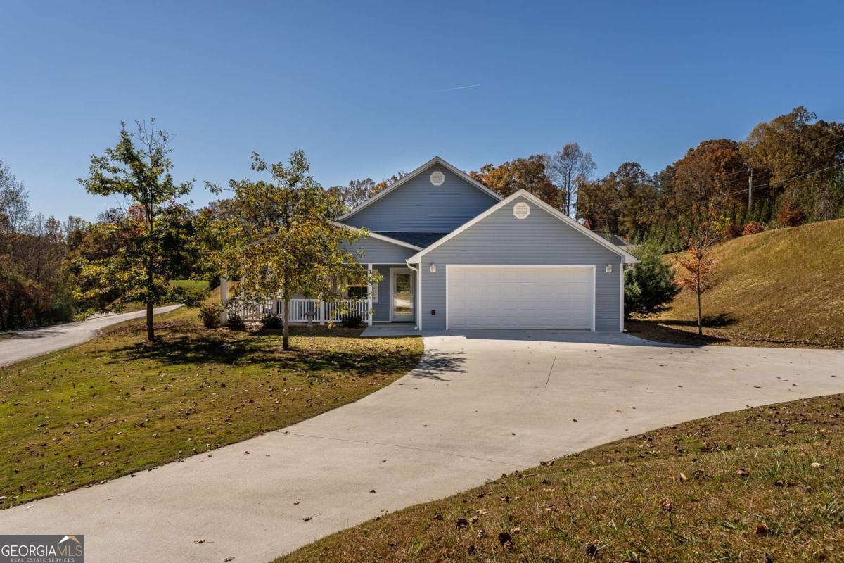 Discover Your Perfect Retreat in Blue Ridge Village! Welcome to this charming upper-level residence in a sought-after gated community that seniors love to call home. This beautiful home on a concrete slab (no stairs, no basement) features three spacious bedrooms and two well-designed bathrooms, providing ample space for mobility. Enjoy stunning seasonal mountain views from many areas of the home, including your private screened porch -the perfect spot to sip your morning coffee or watch afternoon TV amid nature, with protection from the elements. An inviting open-concept layout with high ceilings, a cozy stone fireplace that creates a warm, welcoming atmosphere from floor to ceiling, and ample space perfect for your grandchildren during large family gatherings. This home completed in 2020 and is ideal for modern living. The large kitchen is a chef's dream, equipped with custom cabinets that offer both style and functionality. The residence includes a dedicated laundry room and ample storage, meeting all your needs with a bonus sink. Convenience is key with a two-car garage and a location near the back entrance, allowing quick access to downtown Blue Ridge. Monthly fees cover essential services, such as mowing and garbage pickup, so you can fully enjoy your golden years in peace and comfort. Don't miss the opportunity to make this delightful residence your new home!