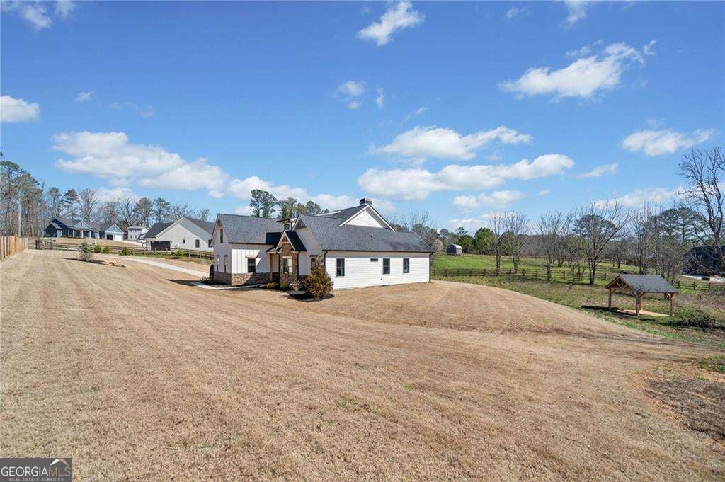 Timeless Luxury Meets Southern Charm Discover the essence of refined living in this private, gated estate, less than two years new and crafted with impeccable attention to detail. Every inch of this custom-built home speaks to elegance and artistry-from the thoughtfully curated designer finishes to the seamless blend of comfort and sophistication. The gourmet kitchen, created for the true culinary enthusiast, features upgraded cabinetry, solid-surface countertops, and an oversized island that flows effortlessly into the grand great room-an inviting space ideal for gatherings and quiet moments alike. Sunlight fills every corner, reflecting off rich wood and tile floors, while the soft, natural palette and bespoke lighting exude a sense of timeless grace. Outside, your private outdoor retreat awaits. Enjoy alfresco dining in your fully equipped outdoor kitchen or unwind beneath the graceful gazebo-perfect for afternoon tea, evening cocktails, or peaceful reflection. The property is fully fenced, offering security, serenity, and the privilege of unobstructed Georgia sunsets that paint the sky with breathtaking color. Nestled within a thriving small-town community, this estate offers the best of both worlds-tranquil, small-town living with the conveniences of a rapidly growing area. Here, neighbors become friends, local shops and markets welcome you by name, and progress harmonizes with tradition. This is more than a home-it's a lifestyle of grace, privacy, and possibility, waiting for the next chapter of your story.