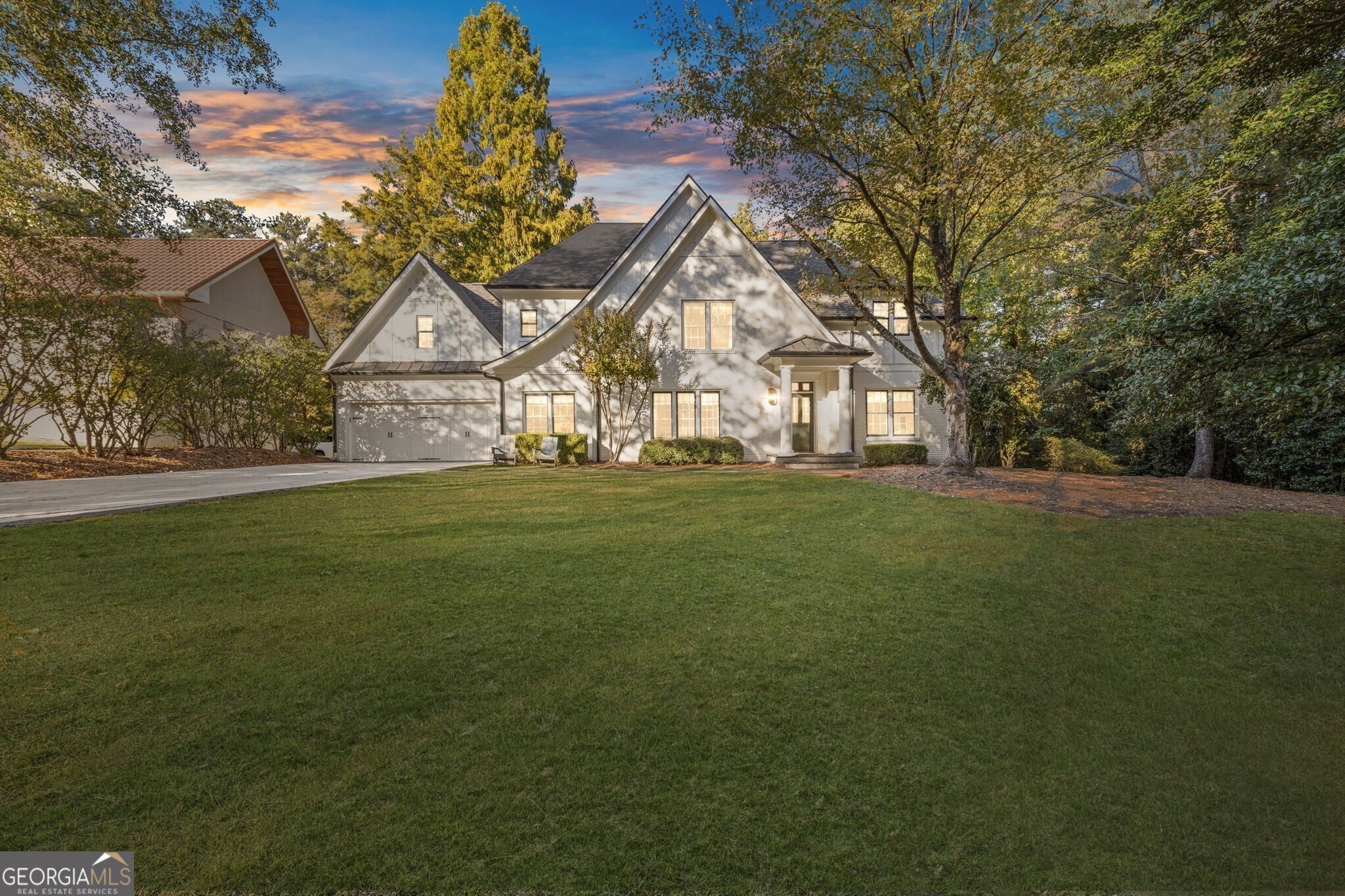 Discover an extraordinary blend of character, comfort, and modern elegance in this beautifully renovated Tudor style retreat. Perfectly set on a secluded, flat one-acre lot across from a peaceful nature preserve, this home offers rare privacy just minutes from Buckhead's finest shopping, dining, and schools. Step inside and experience timeless sophistication reimagined for today's lifestyle. The 5-bedroom, 4.5-bath home features an inviting floor plan that flows effortlessly from one light-filled space to the next, ideal for both everyday living and entertaining. The main level impresses with a dedicated office, spacious dining room, and a dramatic great room boasting vaulted, beamed ceilings. The newly renovated chef's kitchen showcases stunning quartz countertops, high end appliances, and a warm keeping room anchored by a double sided fireplace shared with the dining area, creating an intimate space for connection and conversation. A private guest suite with ensuite bath completes the main floor. Upstairs, the primary suite feels like a true retreat, with a vaulted ceiling, cozy fireplace, and spa-inspired bath. Three additional bedrooms, two full baths, and a well-appointed laundry room with exceptional storage complete the upper level. The expansive, level backyard is a rare find, an incredible blank canvas for a future pool, garden, or outdoor oasis. This home is truly one-of-a-kind! A perfect balance of privacy, elegance, and modern living in one of Buckhead's most coveted locations.