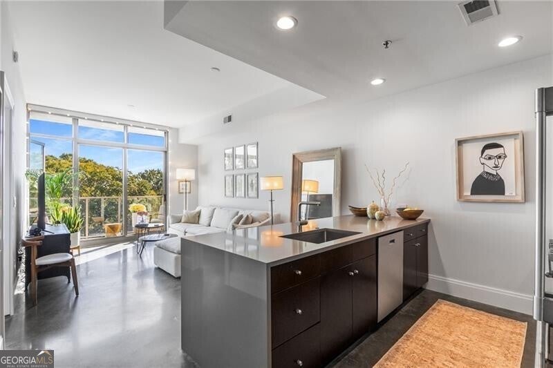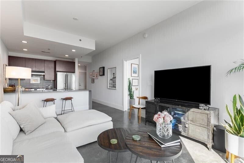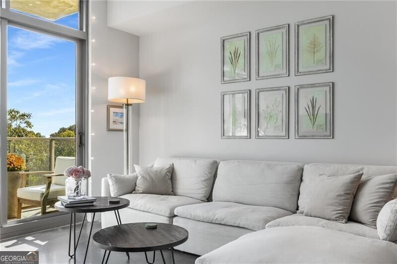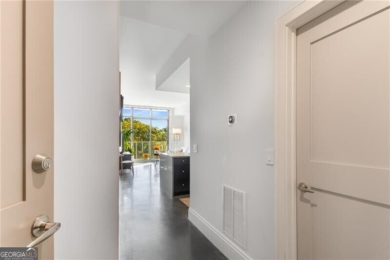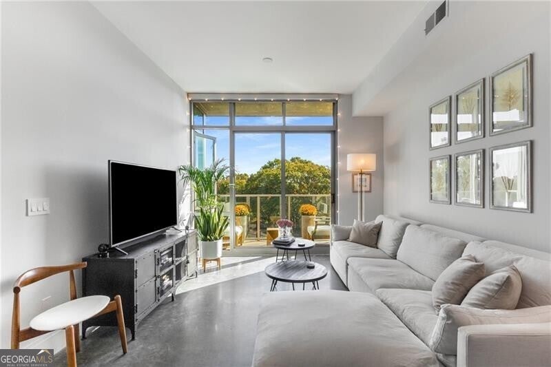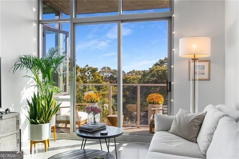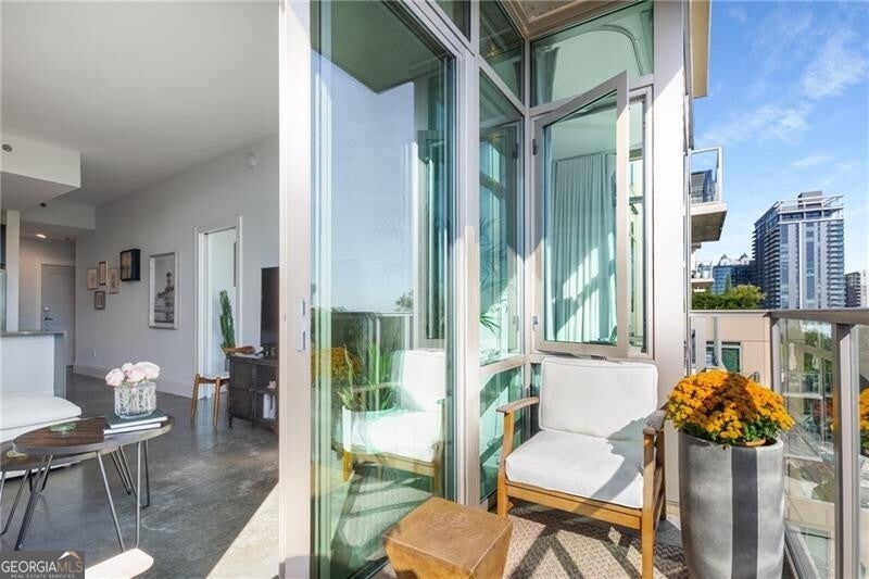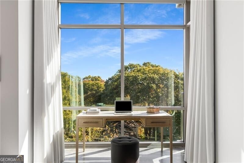 905 Juniper - Midtown's Premier Boutique Residence. Located just two blocks from Piedmont Park and one block from Peachtree Street, this beautiful one-bedroom residence offers modern sophistication in one of Midtown's most desirable addresses. The open-concept layout features floor-to-ceiling windows that flood the space with natural light and frame serene, tree-filled views-creating a rare sense of calm in the heart of the city. The sleek kitchen is anchored by a waterfall-edge island with quartz countertops, rich cabinetry, and premium stainless-steel appliances. The living area flows seamlessly onto a private balcony-perfect for morning coffee or evening sunsets. The spacious bedroom enjoys a wall of glass with leafy views and room for a work-from-home setup. The bathroom has been beautifully updated with a double vanity, frameless glass shower, and designer tilework. Additional highlights include polished concrete floors, a large walk-in closet with custom organization, and an in-unit laundry room with ample storage. Residents of 905 Juniper enjoy resort-style amenities including a saltwater pool, spa, fitness center, and 24-hour concierge-all within close proximity to the BeltLine, Ponce City Market, Fox Theatre, the High Museum, and Midtown's best dining and nightlife.