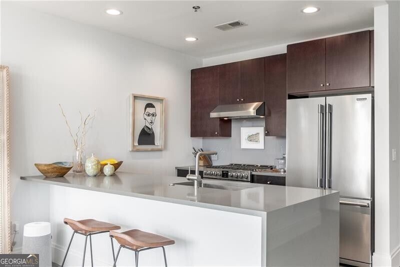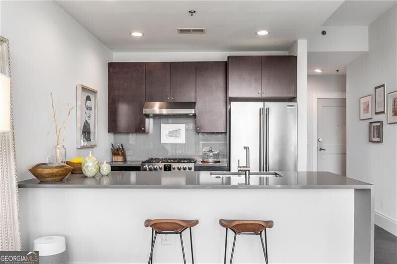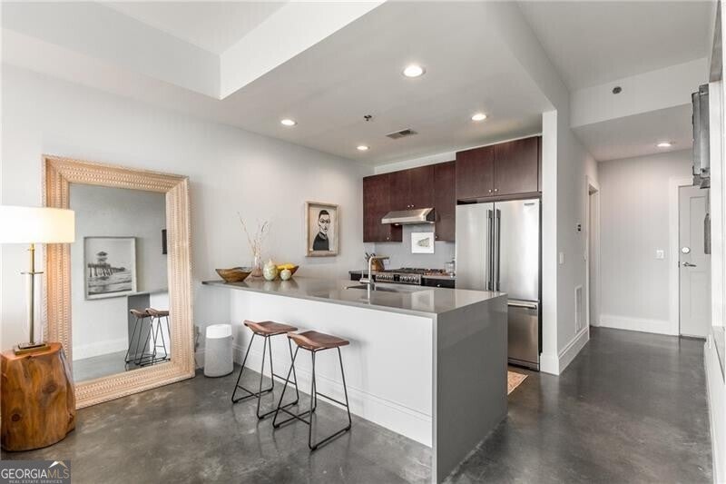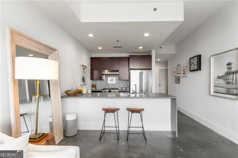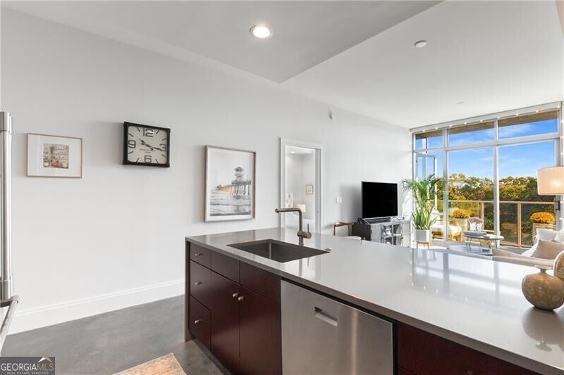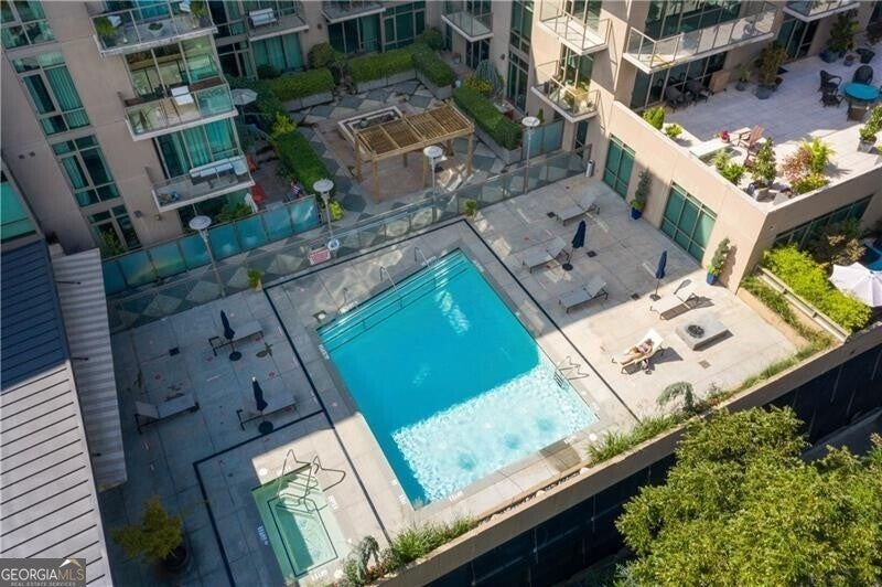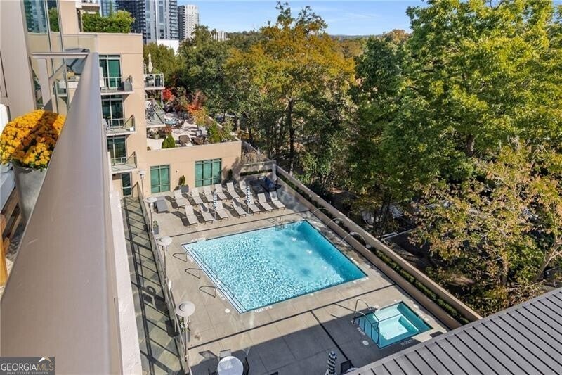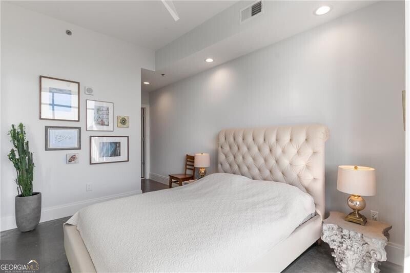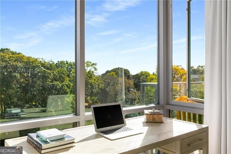 905 Juniper - Midtown's Premier Boutique Residence. Located just two blocks from Piedmont Park and one block from Peachtree Street, this beautiful one-bedroom residence offers modern sophistication in one of Midtown's most desirable addresses. The open-concept layout features floor-to-ceiling windows that flood the space with natural light and frame serene, tree-filled views-creating a rare sense of calm in the heart of the city. The sleek kitchen is anchored by a waterfall-edge island with quartz countertops, rich cabinetry, and premium stainless-steel appliances. The living area flows seamlessly onto a private balcony-perfect for morning coffee or evening sunsets. The spacious bedroom enjoys a wall of glass with leafy views and room for a work-from-home setup. The bathroom has been beautifully updated with a double vanity, frameless glass shower, and designer tilework. Additional highlights include polished concrete floors, a large walk-in closet with custom organization, and an in-unit laundry room with ample storage. Residents of 905 Juniper enjoy resort-style amenities including a saltwater pool, spa, fitness center, and 24-hour concierge-all within close proximity to the BeltLine, Ponce City Market, Fox Theatre, the High Museum, and Midtown's best dining and nightlife.