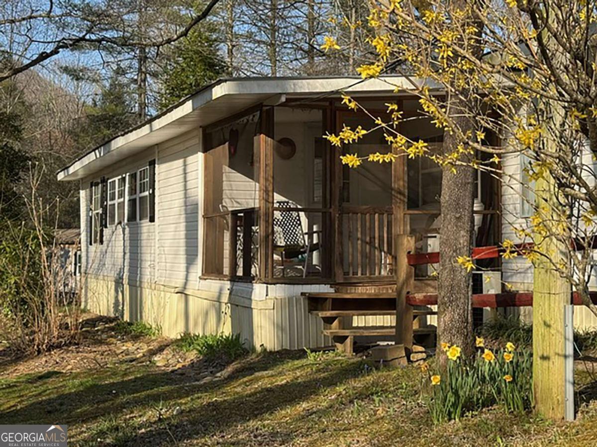 **Seller offering to pay first year lot rental fees at closing** Experience the pleasant and friendly Leisure Woods Park 55+ community in the gorgeous North Georgia Mountains. This 3BR/3BA home offers one level living convenient to downtown Hiawassee for all your shopping, dining and recreational activities. Most furnishings remain for an easy move. Purchase the home and lease the land for $250/mo which includes water and weekly trash pickup. Open kitchen/living/dining space with roomy pantry and laundry area. Large primary and two additional guest rooms each have their own private bathroom. Enjoy the sights and sounds of nature on the oversized covered porch or the cozy screened in area. Tons of storage including a spacious shed (with extra Fridge) and convenient one car carport! Application to be filled out and approved for land lease prior to purchase. Seller will be taking a few furnishings and personal items.