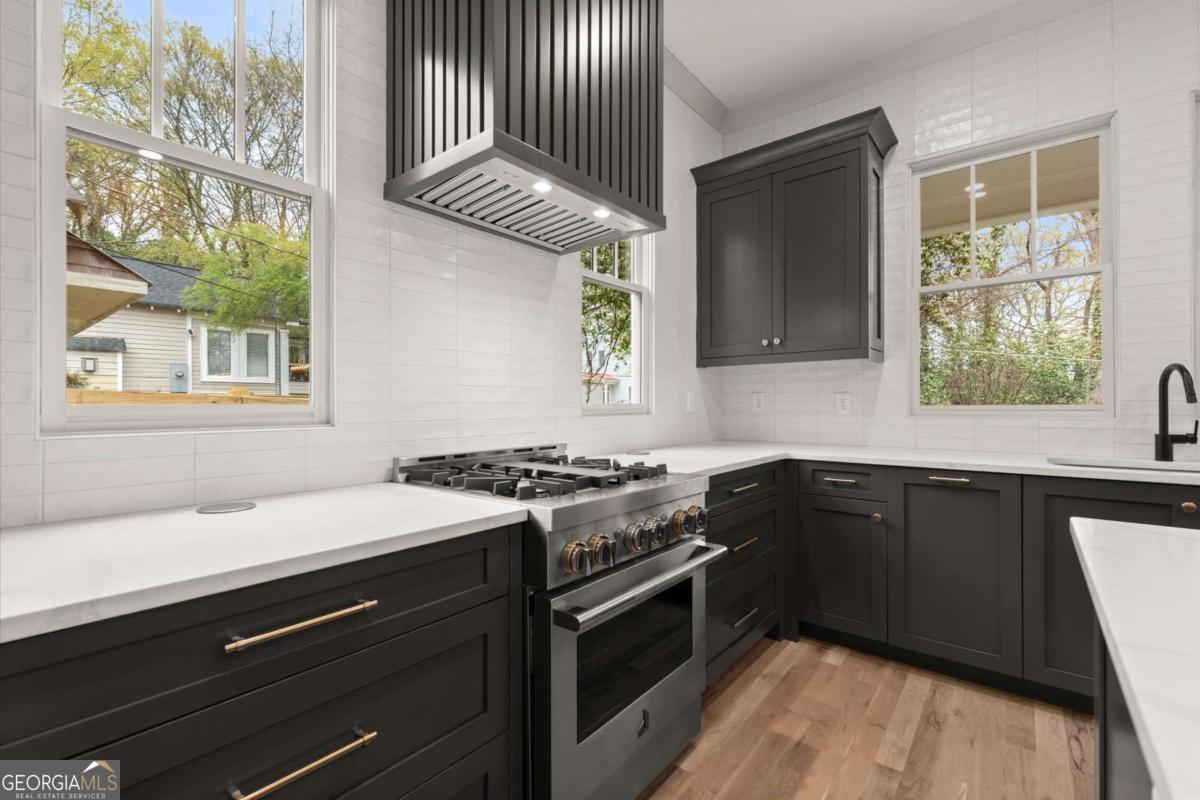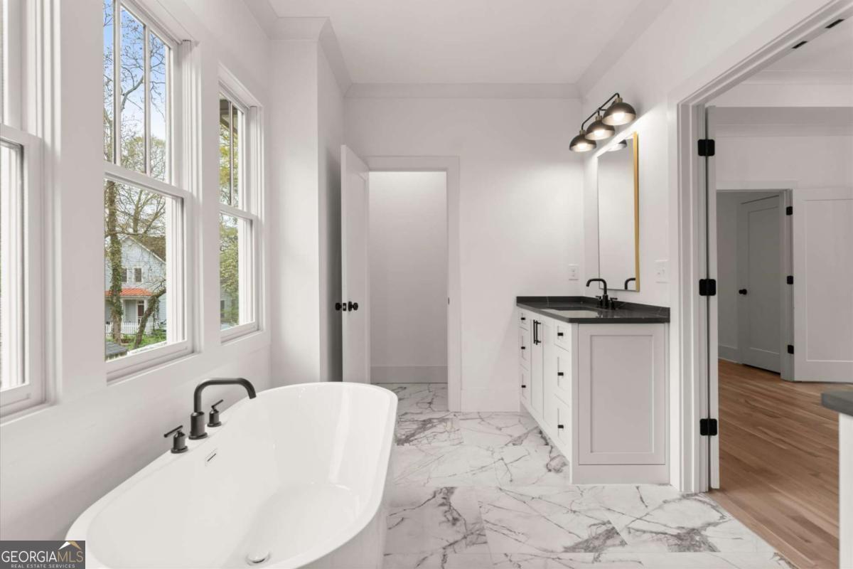 Arrive at this Grant Park home through the rustic wood-filled street, Lynwood. Enter the large open-concept living space through the large front porch. The kitchen, dining room, and living room with fireplace all flow seamlessly. The kitchen includes Jenn Air appliances, an island, custom cabinets, and a pantry. A drop zone between the garage and kitchen, a 1/2 bath, and a covered rear porch complete the main level. Upstairs, the primary Suite includes an office-sized walk-in closet with an ensuite bath including a frameless glass shower, separate soaking tub, water closet, and separate vanities. An ensuite guest room, two bedrooms with a jack-n-jill bath, and a laundry room with a sink complete the upper level. Two-car attached garage for off-street parking. Brand new Beltline adjacent City Home built by Domain Custom Homes and created by architect Adam Stillman. Entrance to Beltline is just steps away at the end of Lynwood by the freshly paved Beltline section.