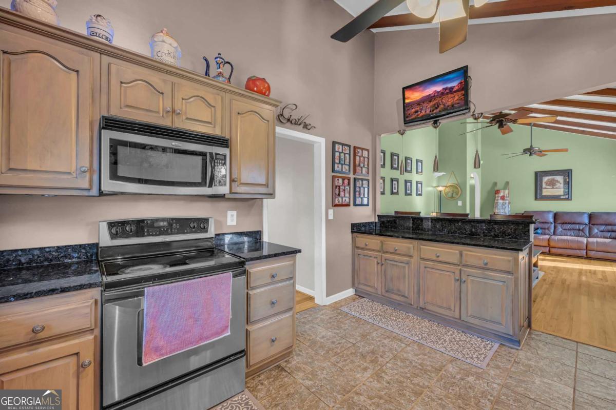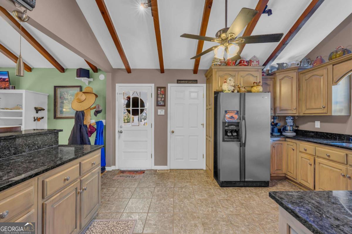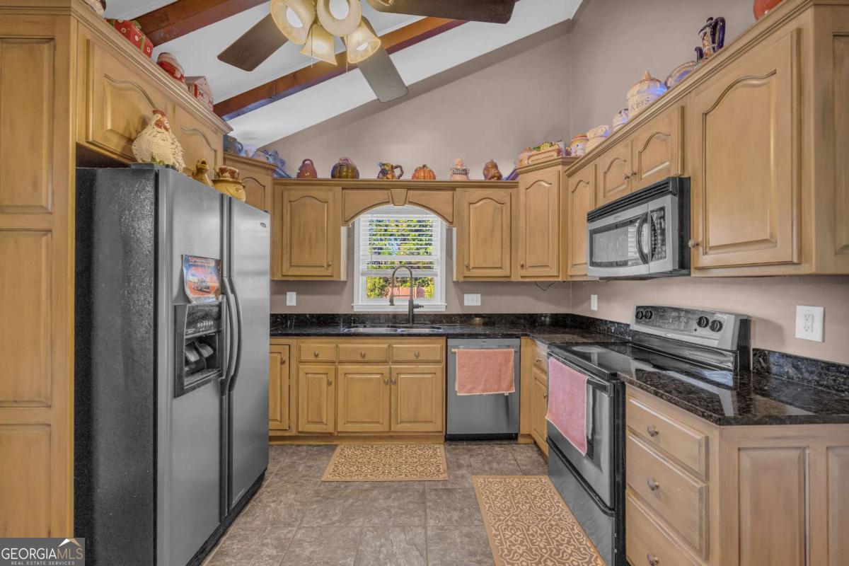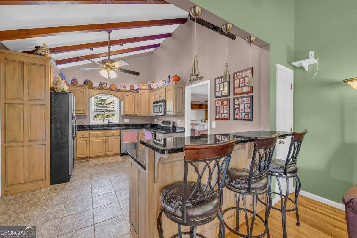 - Interior FeaturesBeamed Ceilings, Double Vanity, Master On Main Level, Pulldown Attic Stairs, Vaulted Ceiling(s)