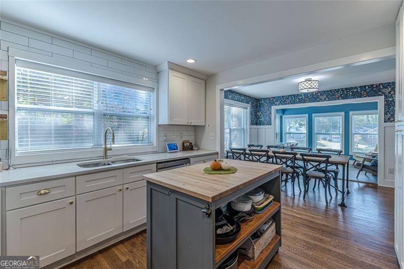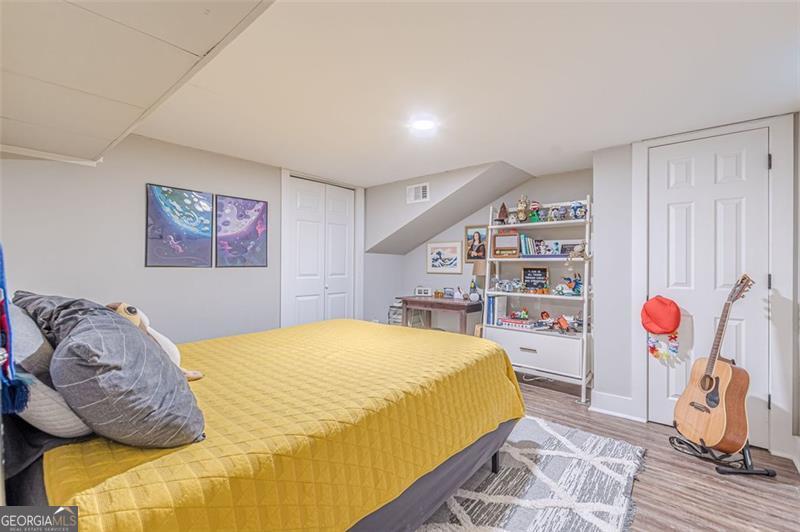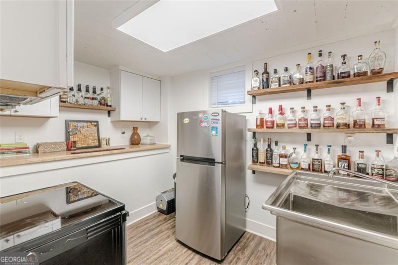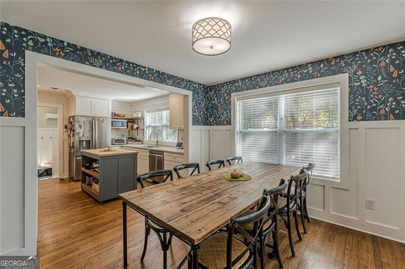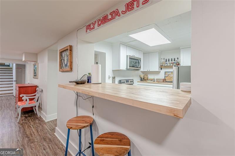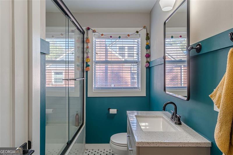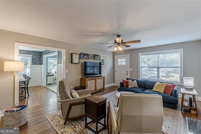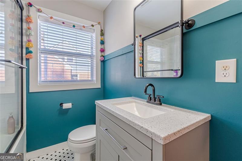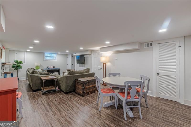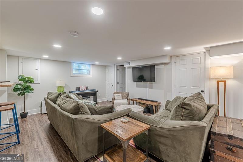 Completely renovated classic in-town multistory brick home in Hapeville, offering three levels of beautifully updated living space. The home features two bedrooms and two full baths on the main level, as well as two bedrooms upstairs. Additionally, the finished basement features two bedrooms, an office/flex space, full bath, full kitchen, and a stackable washer/dryer. Renovations include new electrical, plumbing, roof, gutters, high-efficiency HVAC, a tankless water heater, hardwood floors, and spray-foam insulation. The oversized primary suite on the main level includes a custom-designed full bath. The updated kitchen offers quartz countertops, upgraded lighting, new cabinetry, and a full subway-tiled accent wall, opening seamlessly to the dining room and sunroom. A newly constructed mudroom/laundry room provides additional pantry space and a convenient connection from the main floor to the basement. The large finished basement offers excellent versatility-ideal for additional living space, multigenerational living, or potential rental income. Outside, enjoy a screened-in patio, private courtyard, and firepit area, perfect for entertaining. The wooded half-acre lot includes privacy fencing and a powered gate. All this is conveniently walkable to Hapeville's parks, recreation facilities, and local elementary school. Also within walking distance are the Hapeville Arts District, Chattabrewchee Brewery, and the Chick-fil-A Dwarf House. This home is also just minutes from major employers including Delta, Chick-fil-A Support Center, Porsche, and Hartsfield-Jackson Atlanta International Airport. Don't miss this one of a kind home, with easy access to I-75 & I-85, just 8 miles from downtown Atlanta. Schedule your showing today!