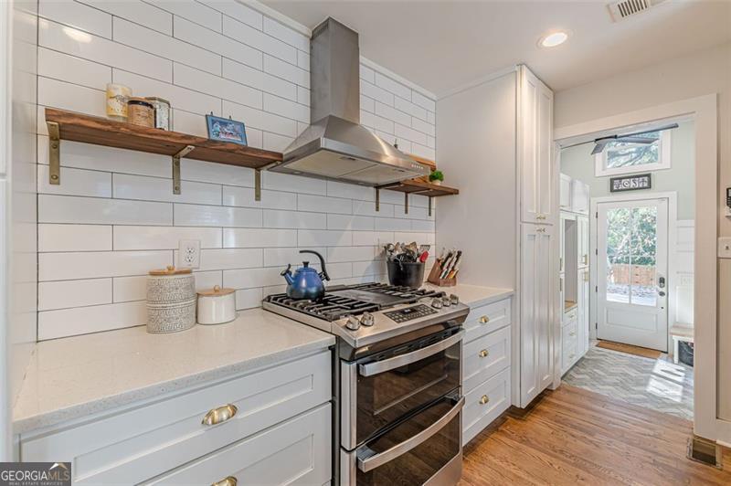 - AppliancesDouble Oven, Dishwasher, Disposal, Gas Water Heater, Oven/Range (Combo), Stainless Steel Appliance(s), Tankless Water Heater
