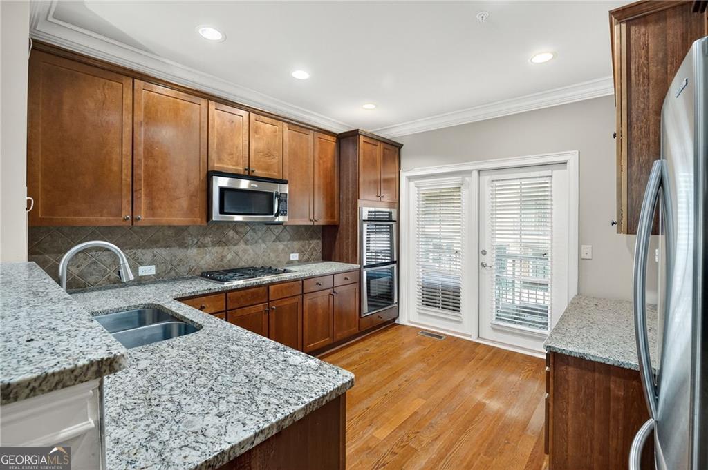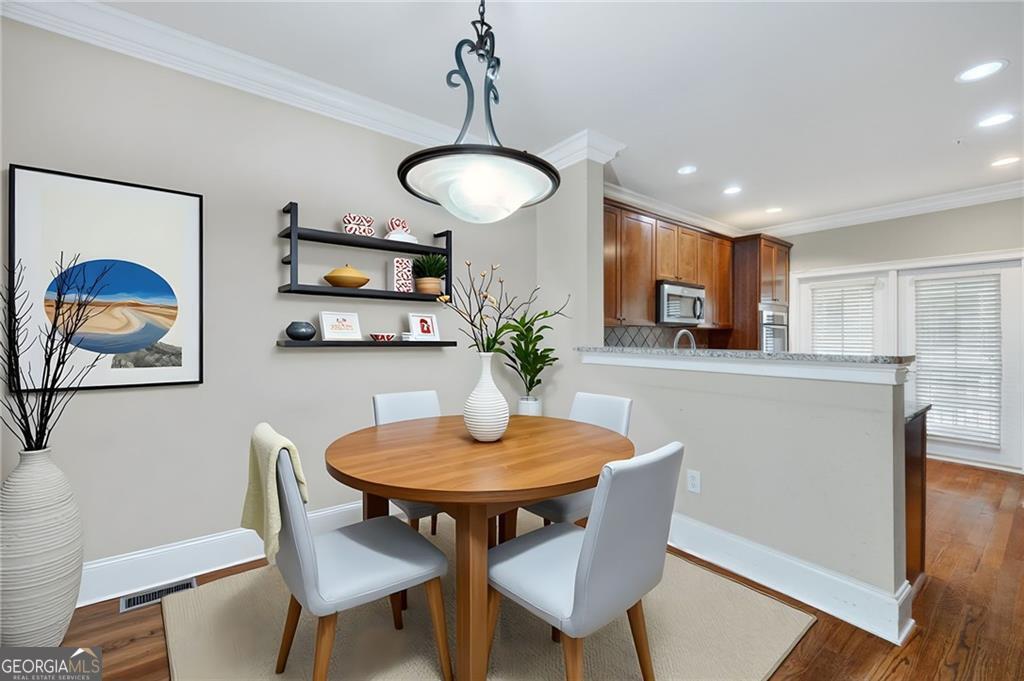 This spacious condo is perfectly positioned in one of North Atlanta's most sought-after locations - just inside of the Perimeter, is situated at the intersection of Sandy Springs and Dunwoody (Atlanta Address!). Step inside this 3BR/3BA unit just mere STEPS away from the pool, mail kiosks and added perk of closeby parking for your guests. You will immediately notice the soaring ceilings and abundant natural light with expansive windows, creating an airy feel throughout the open design. Elegant crown moulding, custom built in cabinetry, hardwoods in main areas while the kitchen features granite countertops, stainless steel appliances and access to the deck. The great room overlooks the community pool inviting you to relax, entertain, or take a quick dip with easy access right outside the door. Incredibly convenient, attached garage with driveway and storage. Two (2) bedrooms on the main level with the third bedroom below provides stepless entry from the garage, perfect for multigenerational living or privacy for a home office, playroom, guest suite, or any flexible use for any lifestyle. Closets have been maximized with storage systems. Newly painted and carpeted throughout. The attached TANDEM garages, each with its own driveway, provides extra storage for cars and possessions ensures both practicality and ease. Set within beautifully maintained grounds with park-like green space and dog-walking areas, the community offers a low-maintenance lifestyle in a serene setting, with mail kiosks just steps away outside. Minutes to GA-400, I-285, Abernathy Rd, Mount Vernon Rd, Roswell Rd, Peachtree Dunwoody, and Johnson Ferry-putting Fortune 500 headquarters, top-tier world class medical facilities - Northside, Emory and CHOA, on Glenridge Dr and some of Atlanta's top-notch chef driven dining, and entertainment at your fingertips. Easy access to Target, Trader Joes, and Whole Foods on Roswell Rd or Costco, Home Depot is just a hop skip jump away near Perimeter Mall. Lenox, Phipps, Buckead Village District provides luxury retail and dining options - all within a short drive. For those that love the outdoors - City Green provides shade and green space with events and festivals & the Sandy Springs Farmers Market, and for the more adventurous, Morgan Falls Overlook with trails and kayak/paddle board rentals along the Chattahoochee provides respite. Abernathy Greenway Park an art-filled play space, and Hammond Park with basketball and tennis courts, athletic fields will cater to any outside interest and are just mins away. Convenient to Buckhead, Chastain Park, Dunwoody, Brookhaven and East Cobb right over the river, this is a rare chance to enjoy all the perks of being able to live, work, and play in one of the most connected, sought-after corners of the city. Hartsfield International 30 mins away. STEM/STEAM schools - Woodland Elementary and North Springs High. Nearby North Springs Marta station. Exceptional access to everything Atlanta has to offer - all at an incredible value in an unbeatable location.