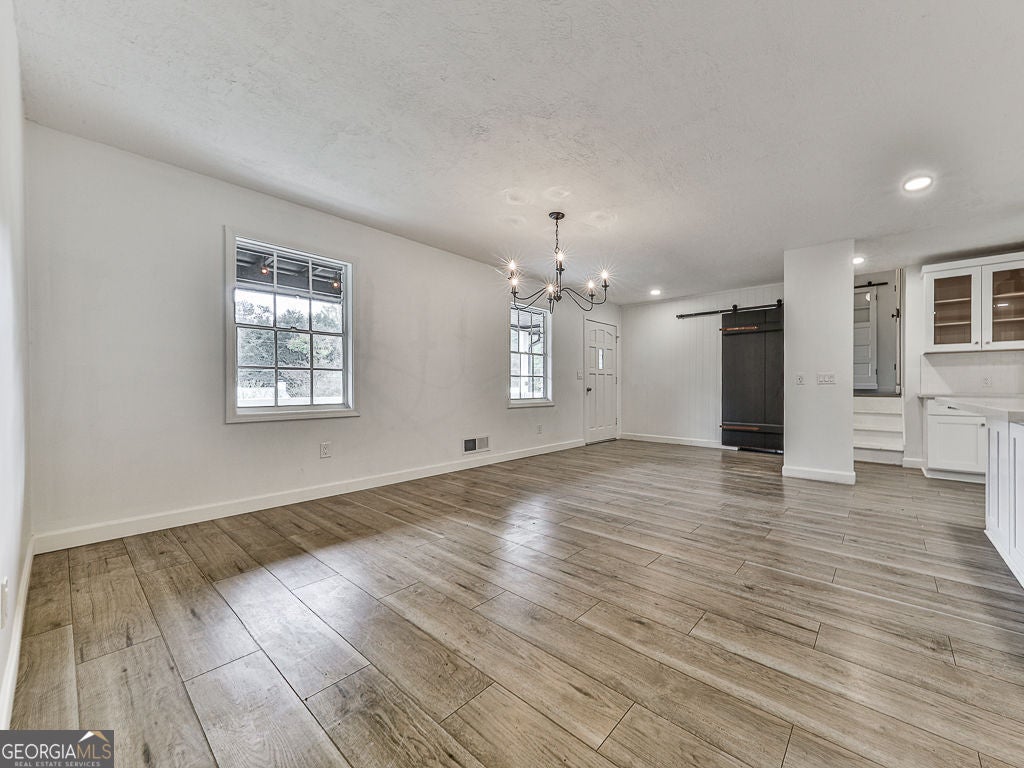 Welcome to this beautifully remodeled home only a few minutes from the very popular Downtown Woodstock! The exterior showcases a fresh coat of paint, complemented by sleek new black gutters, custom wood shutters, and horizontal plank wood railings on the front porch. As you enter, you'll be greeted by luxurious new plank vinyl flooring and a soft, neutral color palette that fosters a bright and welcoming ambiance, enhanced by modern lighting throughout. The kitchen has been completely transformed, now featuring an added island that opens seamlessly to the living room-making it a chef's paradise. The inviting fireside family room serves as a cozy retreat, with a glass door leading to the newly expanded, fenced backyard and patio, ideal for relaxation or entertaining. Enjoy peace of mind knowing the roof and a brand-new 3-ton AC unit have been installed within the last three years, ensuring your comfort. Both bathrooms have been beautifully updated, contributing to the home's overall charm and sophistication. With meticulous attention to detail and an emphasis on quality, this property offers a perfect blend of luxury and comfort. Seize the chance to make this remarkable home yours! With no HOA restrictions, you can bring your toys along! Schedule your showing today before this opportunity slips away!