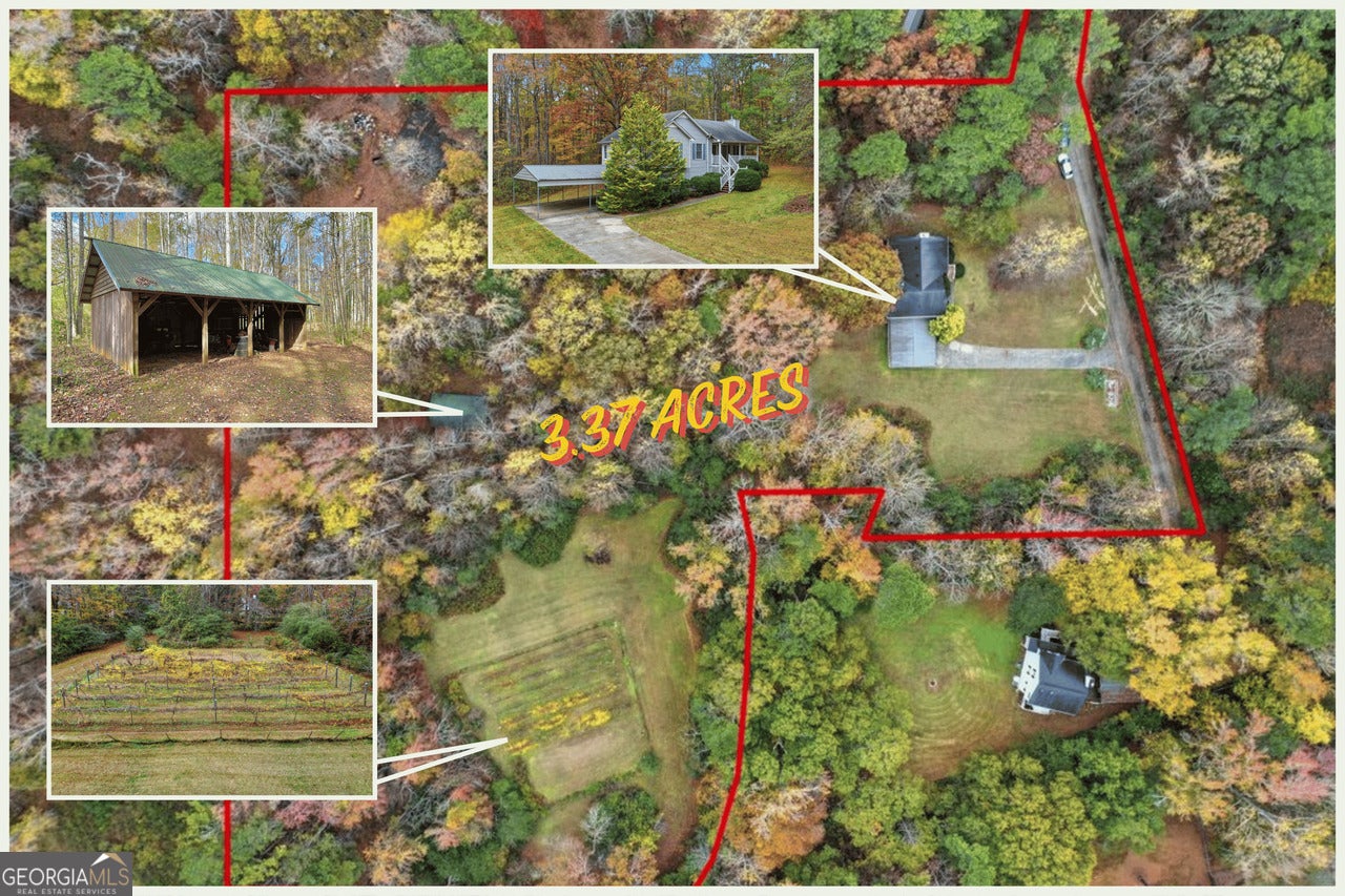 Price Improvement | Your Opportunity Just Got Better 3.37 Acres | Vineyard | Creek | Pole Barn | Paulding County. This one-of-a-kind property delivers the country lifestyle you've been looking for, complete with a private vineyard, a spring-fed creek, a four-bay pole barn, and a comfortable home, all on 3.37 acres of serene, secluded land. From the moment you arrive, the calm and privacy of this property sets it apart. Wide open space surrounds you, with room to grow, explore, and make it your own. The land is the true showstopper. A private fenced vineyard features six lush rows of muscadine grapes, each approximately 80 feet long, alongside blueberry shrubs and a fig tree, everything you need to cultivate your own sweet wine or enjoy fresh fruit straight from the vine. The surrounding open space is ideal for beekeeping, gardening, camping, or gathering with friends under open sky. A four-bay pole barn with additional covered storage adds serious versatility for equipment, tools, or hobby space. And a peaceful spring-fed creek originates nearby and winds along the side of the property, bringing soothing sounds and natural beauty to this private retreat. The home complements the land beautifully. Inside, a spacious living room with soaring cathedral ceilings and a wood-burning fireplace sets a warm, inviting tone. A bay window in the dining area frames views of the property, making every meal feel connected to the outdoors. The primary suite features a walk-in closet and a private bath with a garden tub and separate shower. The front porch is your morning coffee spot; the back porch is ready for summer BBQs and evening gatherings. Below, the basement garage accommodates three or more vehicles and holds real potential for bonus rooms, a workshop, or additional living space. The attached drive-under garage adds even more parking and everyday convenience. All of this, just 15 minutes from shopping, dining, and entertainment, total seclusion without sacrificing convenience.