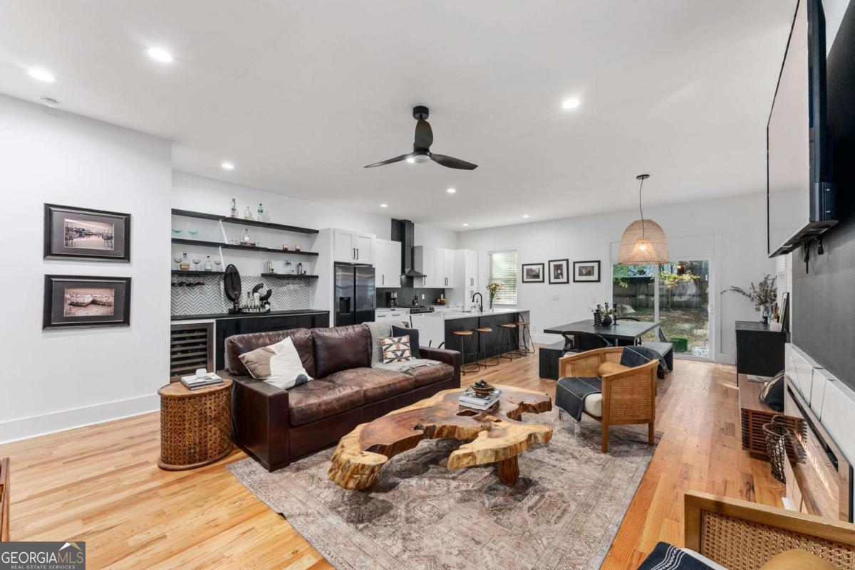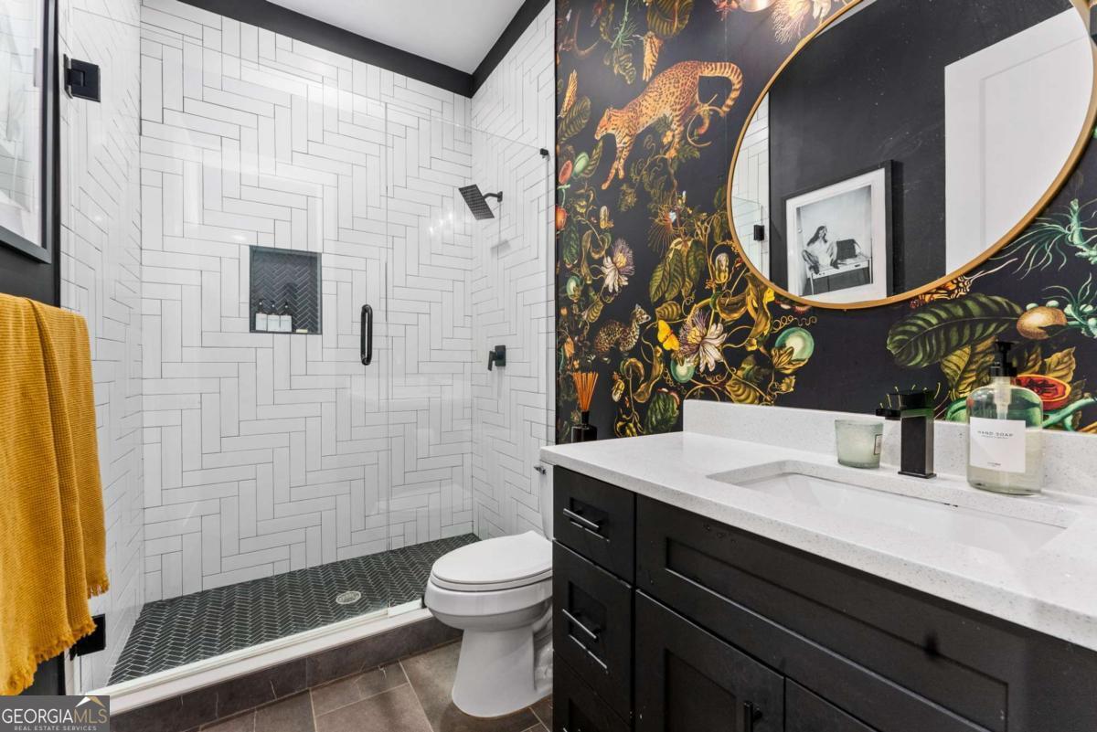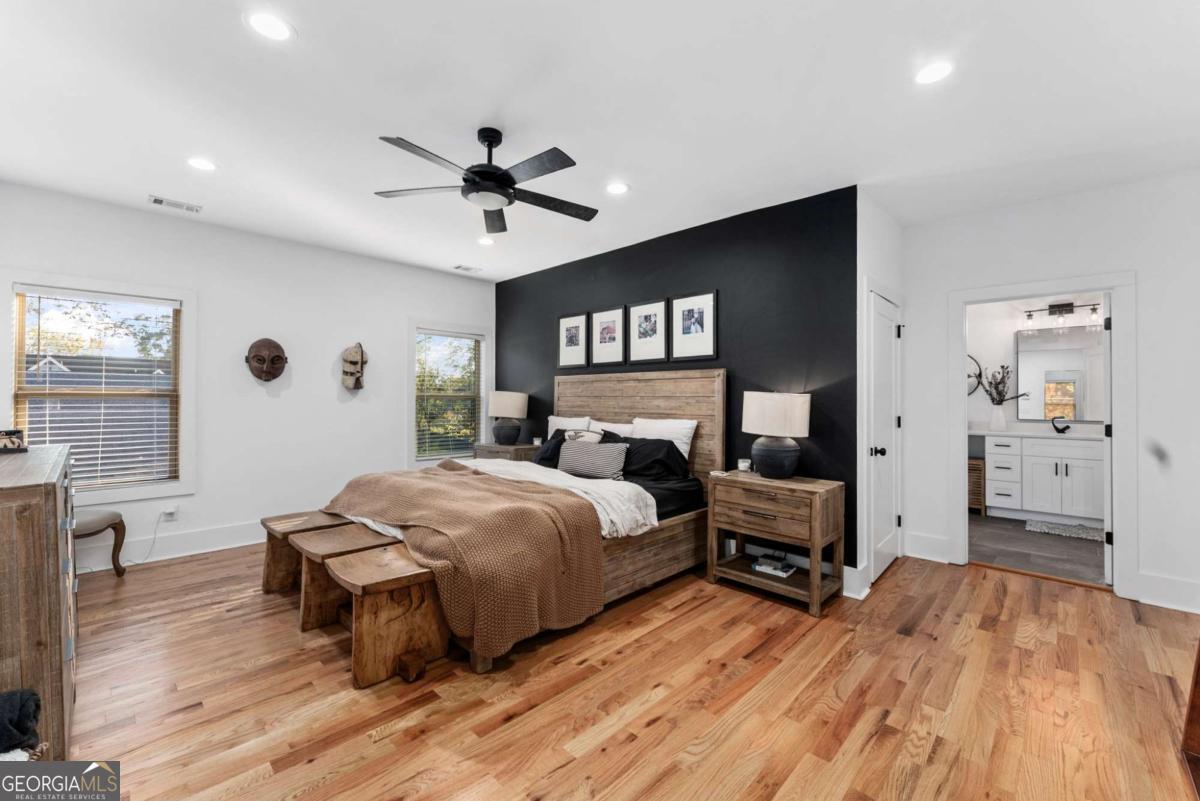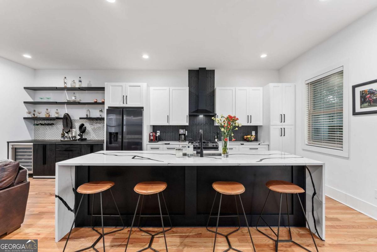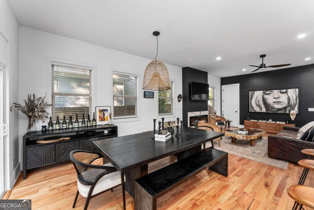 Nestled near the end of one of Kirkwood's most desired cul-de-sacs, this modern residence combines elevated finishes with a superb floor plan on a lot that makes the every day more meaningful. A gated driveway and fully fenced level backyard set the stage for entertaining inside and out. And if outside is what you like, you'll love the near-immediate access to the Pullman Trail a few doors down, connecting you within minutes to Pullman Yard's ever evolving restaurants and revolving exhibits - close enough to enjoy, yet comfortably removed for quiet evenings at home. The covered front porch with a prow leads you into a modern oasis, showcasing 10-foot ceilings and hardwood floors throughout. The envious kitchen features quartz counters, an oversized waterfall island with seating for four open to the dining room overlooking the backyard. The living room fireplace anchors the space and a custom bar wall with wine chiller is ideal when entertaining. A full guest suite on the main is well-placed for the in-laws and a full bath on main showcases the most current designer selections. Upstairs, the primary suite offers a calming retreat - a custom walk-in closet, dual vanities, water closet and a wet room punctuated by a sculptural vessel soaking tub. Three additional bedrooms including one ensuite and two secondary bedrooms that can flex for office, gym, studio or play. Downstairs, the full unfinished basement offers great overflow storage and ease of access to the mechanical systems and a natural opportunity to showcase wine collections or a future cellar buildout for the aspiring oenophile. Outside, the backyard is private and usable. Easily extend the driveway to support a future two-car garage or ADU - a meaningful value add in this submarket. EV charging is already in place. The rear covered back porch offers an enchanting tea lit entertaining space in any kind of weather. Better than new, this home blends modern architecture with warm designer finishes in a location that that offers a thoughtful sense of place within this coveted community. The ultimate Kirkwood flex.