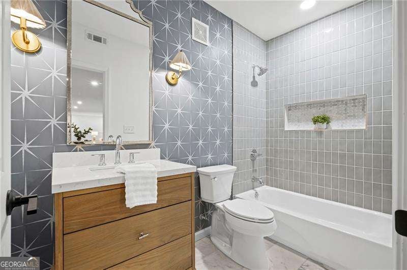 Updated to Perfection-Classic Elegance Meets Modern Comfort! Welcome to this stately three-level, all-brick residence set on an impeccably maintained corner lot with freshly landscaped grounds. From the moment you arrive, the home's timeless curb appeal and pristine presentation set the tone for what lies within. Step inside to discover a beautifully updated interior designed for both everyday living and gracious entertaining. The formal dining room accommodates up to twelve guests, while the home offers a spacious living room in addition to a cozy fire-side family room with the convenience of a wet bar. The kitchen was redesigned to encourage gathering with family and friends. Enjoy hanging out around the over-sized quartz and white oak island while using your brand-new stainless appliances. The home also boasts a light-filled sunroom with vaulted ceilings and picture windows that bring the gorgeous fall foliage from the private backyard in--an ideal spot to savor your morning coffee or unwind at day's end. The main-level bedroom suite, perfect as an optional primary on main, offers a private retreat complete with a generous walk-in closet and a stunning bathroom with double sinks and walk-in shower. Upstairs, you'll find equally impressive accommodations, including a stunning primary suite featuring a Calcutta gold marble bath with white oak cabinetry and quartz countertops. The two additional bedrooms are spacious and share a beautifully appointed bath with double sinks-perfect for family or guests. The newly redesigned daylight terrace level offers a brand new full guest bath and guest bedroom in addition to TWO large common areas and has access to the walk-out backyard and newly finished covered stone patio-ready to host your next game night or BBQ. Thoughtful updates, classic brick construction, and flexible living spaces come together to create a home that's truly move-in ready, and perfect for multi-generational living. Designer lighting, vibrant wallpapers, new cabinetry and hardwoods throughout are some of the updates you will appreciate, but don't miss the many other costly updates that have also been done such as new windows, updated electrical, all new plumbing and more. An added bonus-this property features a grandfathered private well for landscape irrigation, helping to keep your grounds lush while lowering utility costs. Ideally located close to shopping, dining, and everyday conveniences, this exceptional home delivers a rare combination of sophistication, comfort, and practicality-all in one remarkable address.