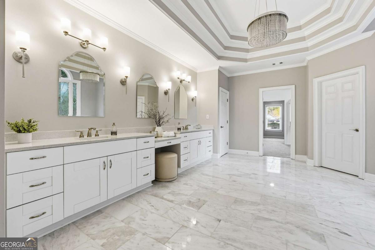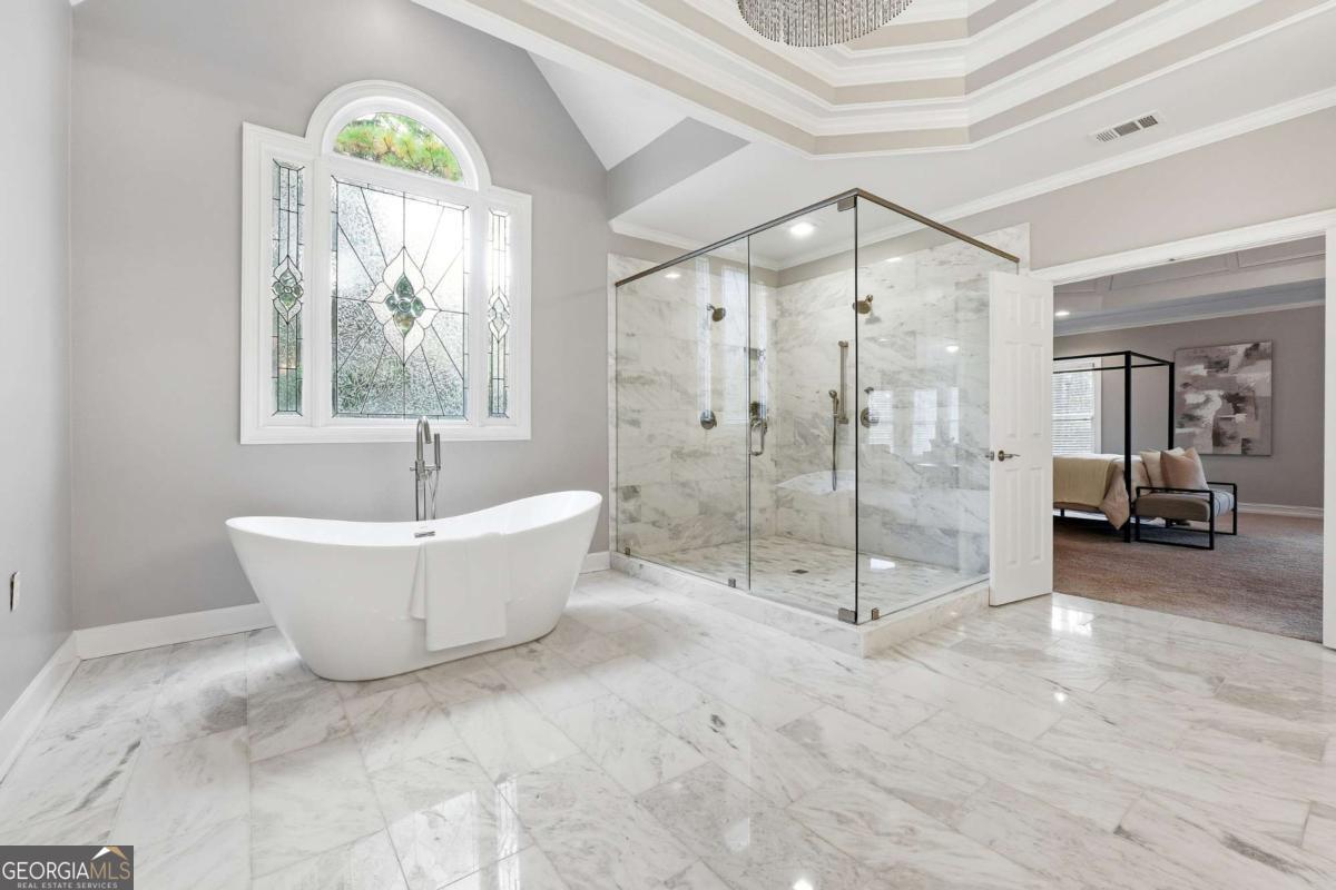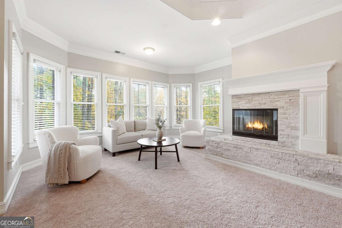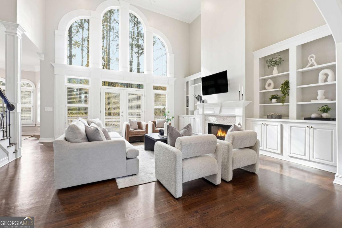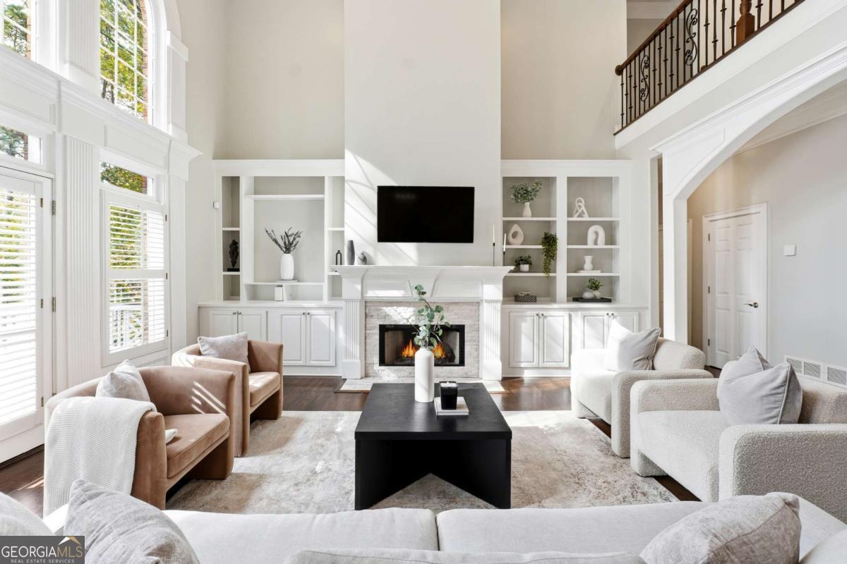 Experience refined luxury living in the prestigious gated Northshore at Windward community. Overlooking the lush fairways of the Golf Club of Georgia, 1315 Portmarnock Drive is an architectural masterpiece blending timeless elegance with modern sophistication. This impressive 6-bedroom, 6.5-bath estate welcomes you with a grand two-story foyer, soaring ceilings, intricate millwork, and walls of windows showcasing breathtaking golf course views. A gourmet chef's kitchen anchors the home with premium appliances, custom cabinetry, a large island, and seamless flow into the fireside keeping room-ideal for entertaining. The main-level primary suite offers a private sanctuary with a sitting area, fireplace, and spa-inspired bath featuring dual vanities, soaking tub, and walk-in shower. Upstairs, spacious en-suite bedrooms provide comfort and privacy for family and guests alike. The finished terrace level is an entertainer's dream with a full bar area, media space, guest suite, workshop and direct access to the private, landscaped backyard-perfect for outdoor gatherings. Residents enjoy Windward's premier amenities including swim, tennis, lake access, and the championship golf course. Minutes from Avalon, Halcyon, and GA-400, this home offers an unparalleled combination of luxury, location, and lifestyle within top-rated Alpharetta schools.