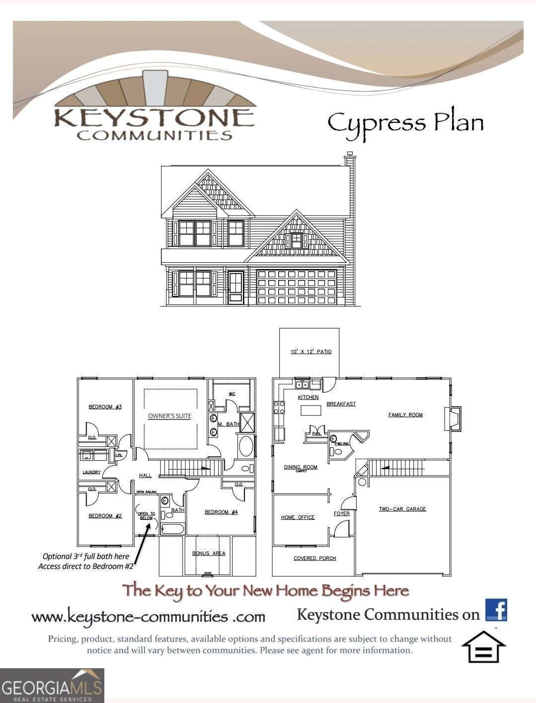 Spacious two-story home featuring 4 bedrooms and 3.5 baths. Main level offers open-concept kitchen, breakfast area, and family room, plus separate dining room, powder room, and dedicated home office. Upstairs includes 4 bedrooms and 3 full baths, providing ample space and privacy. Located at the end of a quiet cul-de-sac. Builder currently offering $7,500 toward closing costs with use of preferred lender. Note: GPS may not recognize address. Use Benson Meadows Drive, Dallas, then turn right on Jeffrey Ln. Lot 32 is at the end of the cul-de-sac. First photo is of the actual home. Interior photos are of a previously completed plan and may reflect different standards and upgrades. Built by Keystone Communities