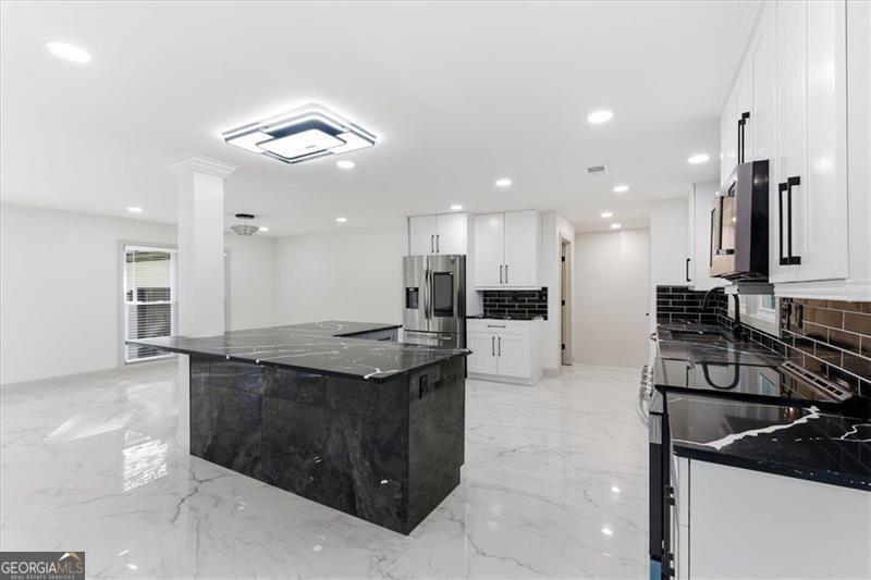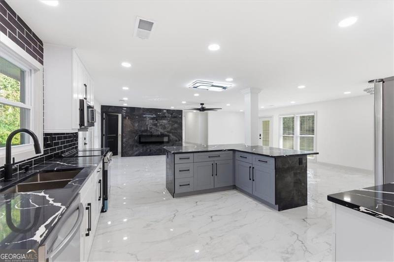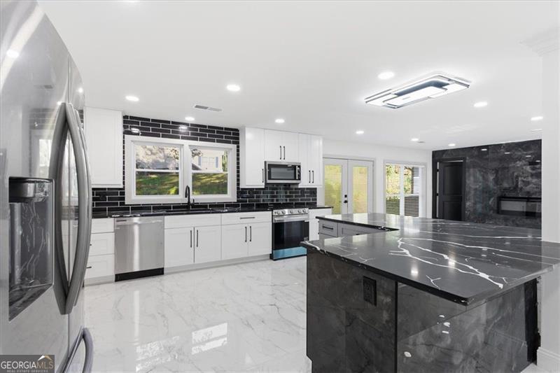 Welcome to your dream home in East Cobb, where modern luxury meets timeless comfort! This beautifully renovated home features double master suites with a 7-bedroom, 4.5-bath masterpiece that is truly a sight to behold. As you step inside, you'll be greeted by a spacious, open-concept design that effortlessly flows from the kitchen to the living and dining areas. Imagine preparing meals in a stunning kitchen adorned with black quartz countertops and brand-new cabinetry, all complemented by exquisite designer finishes that exude sophistication. Custom-designed features give this home a crisp, modern feel, enhanced by a well-appointed electric fireplace for extra coziness. The complete upgrade has been customized for luxury and comfort. From the elegant tile work throughout the home, this home creates an atmosphere that invites relaxation. The owner's suite is a true sequestered retreat, boasting a luxurious soaking tub, dual vanities, and a serene ambiance that makes unwinding a pleasure. The finished basement offers endless possibilities, whether you envision it as a cozy media room, an energizing home gym, or a welcoming guest suite, complete with its own separate cooling system for maximum comfort. Located in the highly coveted East Cobb area, this home places you just moments away from top-rated schools, delightful dining options, and charming parks. This is more than just a house; it's a lifestyle waiting to be embraced. Don't miss the chance to experience this remarkable home in person-schedule your visit today and discover the perfect blend of luxury and convenience!