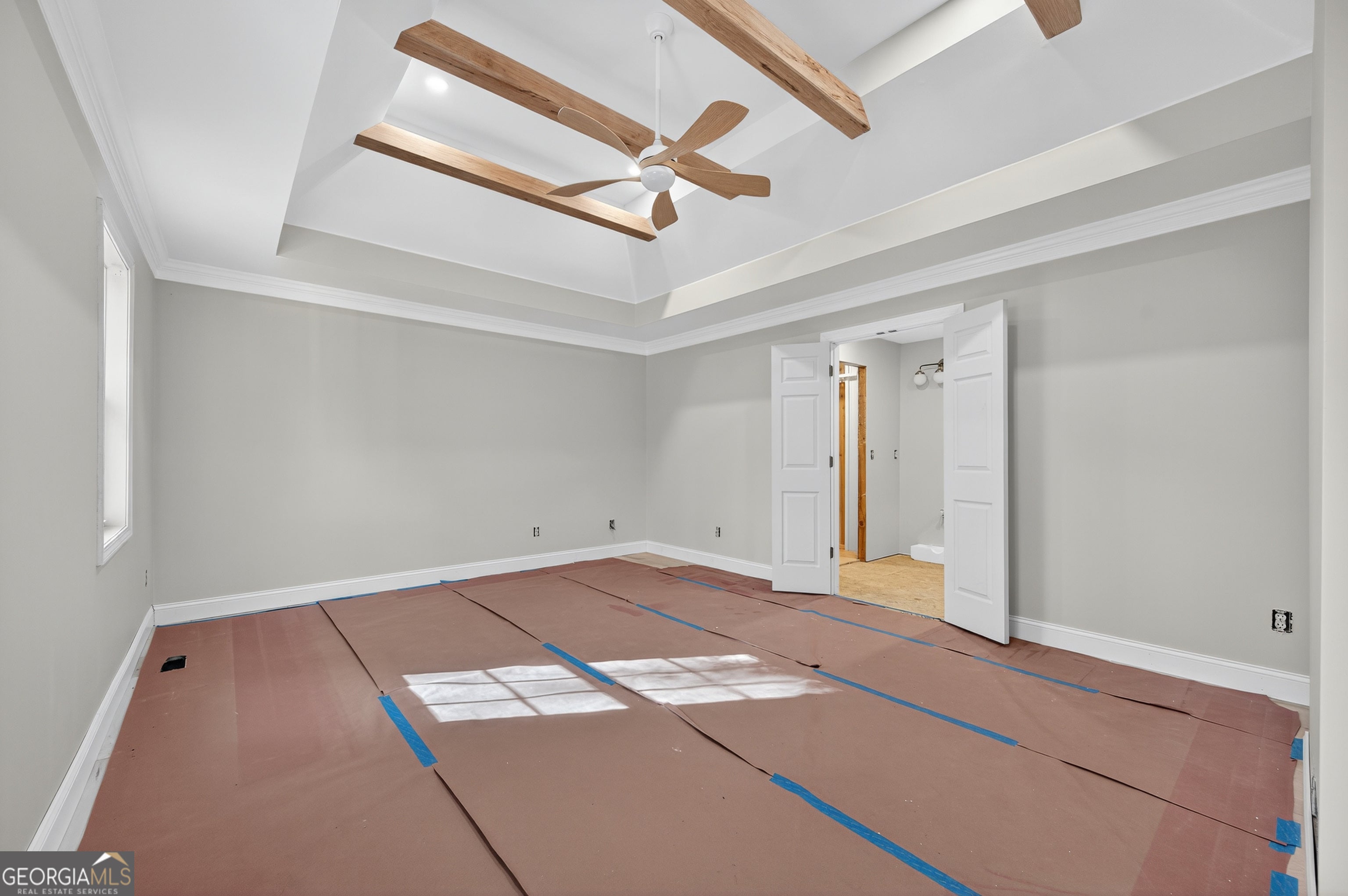 - Interior FeaturesBeamed Ceilings, Double Vanity, Master On Main Level, Rear Stairs, Tray Ceiling(s), Vaulted Ceiling(s), Walk-In Closet(s)