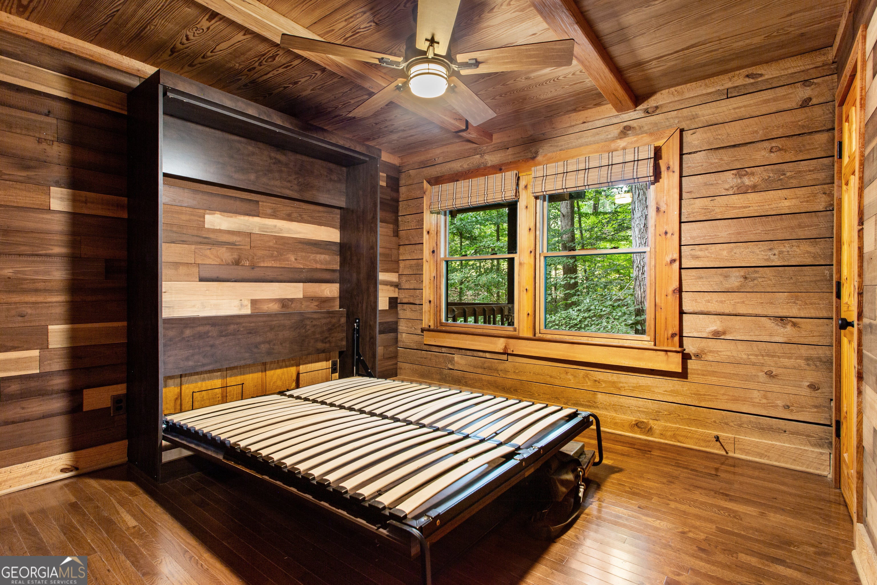 Rustic Charm Meets City Convenience - Acworth, GA Escape to 1.9 acres of country living-without giving up suburban convenience. This 3-bedroom, 2-bath handcrafted log home blends rustic warmth with modern comfort, offering open sight lines from the front door straight through to the kitchen. The main suite features a relaxing soaking tub and separate shower, while cedar-lined closets in every bedroom add a touch of luxury. One secondary bedroom even includes a built-in Murphy bed, making it the perfect guest room/office combo. The open living and dining areas center around a soapstone wood-burning fireplace, creating a cozy spot for reading or relaxing. The kitchen keeps you connected to the action while you cook, and the three-season screened porch is made for quiet mornings or evening gatherings. Step onto the oversized deck for outdoor entertaining-or imagine expanding your living space. Out back, discover your own secret garden with raised vegetable and flower beds and a blend of new and mature flowering plants. A 3-car attached garage with built-in work and storage space and an oversized detached garage/shop with its own subpanel (220v) means it's big enough for both an RV and a boat and perfect for your home business, mean you'll never run out of storage. The home exterior and structure has been updated with longevity in mind, offers low maintenance with 50 year architectural shingles, lifetime warranty on foundation repairs drainage and reinforcements, and professionally sealed, stained, and capped logs. All windows were replaced with Pella windows. Nothing has been spared to ensure this is a move-in ready home for you and your family. No HOA means freedom-bring your business, your toys, or your big dreams. Just minutes from I-75, I-575, and Lake Allatoona, this home is perfect for a full-time retreat or Airbnb investment. With a whole-house dehumidifier and propane furnace for efficiency, it's move-in ready and brimming with possibilities. Don't miss your chance to own a slice of paradise-schedule a tour today!