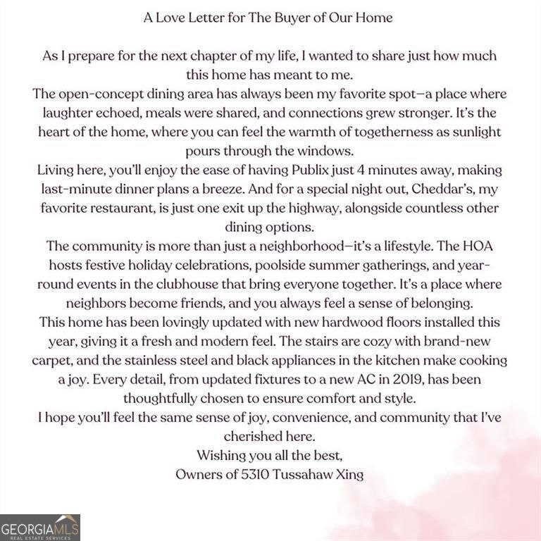 The Owner is installing a brand new garage remote and brand new beautiful bathroom floors! ||RENT TO OWN & LEASE PURCHASE AVAILABLE || LOW HOA FEES || || MOTIVATED OWNER - SUBMIT OFFERS | || NO RENT RESTRICTIONS || || TRANSFERABLE HOME WARRANTY || || UPDATED APPLIANCES & FIXTURES || || BRAND NEW HARDWOOD FLOORS || || ENERGY-EFFICIENT CONSTRUCTION || || SEASONAL CREEK VIEW & LARGE BACKYARD || || TWO SWIMMING POOLS, TENNIS, PLAYGROUND & CLUBHOUSE || ** WHAT YOU'LL SEE ** Step inside and be greeted by an OPEN-CONCEPT MAIN LEVEL with HIGH CEILINGS and BRAND-NEW HARDWOOD FLOORS that gleam under the natural light pouring in. In the kitchen, you'll see ALL-NEW STAINLESS & BLACK APPLIANCES, a modern upgrade that blends perfectly with the space. Upstairs, the ROOMMATE FLOORPLAN offers private, well-appointed bedrooms. Step out into the LARGE BACKYARD to take in the serene CREEK VIEW, surrounded by lush greenery, making it the perfect spot for relaxation or outdoor gatherings. ** WHAT YOU'LL HEAR ** Enjoy the soothing sound of the CREEK GENTLY FLOWING at the edge of your backyard, a natural soundtrack that brings peace and tranquility. Inside, hear the echoes of laughter as friends and family gather in the OPEN LIVING SPACE, perfect for entertaining. In the community, the buzz of friendly matches on the TENNIS COURTS, children playing on the PLAYGROUND, or neighbors connecting at the CLUBHOUSE will remind you of the vibrant energy this neighborhood offers. ** WHAT YOU'LL FEEL ** Experience the SOFTNESS OF NEW CARPET underfoot as you climb the stairs, or the smooth texture of the UPDATED FIXTURES throughout the home. Feel the privacy and calm of the ROOMMATE FLOORPLAN upstairs, offering an escape at the end of the day. In the backyard, you'll feel the cool breeze as you relax by the creek, soaking up the serenity of your surroundings. The ENERGY-EFFICIENT CONSTRUCTION ensures a comfortable temperature year-round, while also keeping utility costs low. ** WHAT YOU'LL EXPERIENCE ** Living here means being part of a community that offers SWIM AND TENNIS AMENITIES, a PLAYGROUND, and a CLUBHOUSE perfect for hosting or attending events. Host barbecues in the SPACIOUS BACKYARD, wake up to tranquil mornings by the creek, or take evening strolls through the neighborhood. With LOW HOA FEES and NO RENT RESTRICTIONS, you'll experience the ultimate blend of convenience, comfort, and freedom in this home. Plus, with a TRANSFERABLE HOME WARRANTY, you can move in with peace of mind knowing the major systems are covered. RENT TO OWN & LEASE PURCHASE AVAILABLE - submit your terms in an offer! FYI: The taxes appear higher only because the owner did not apply for a homestead exemption or reduction.