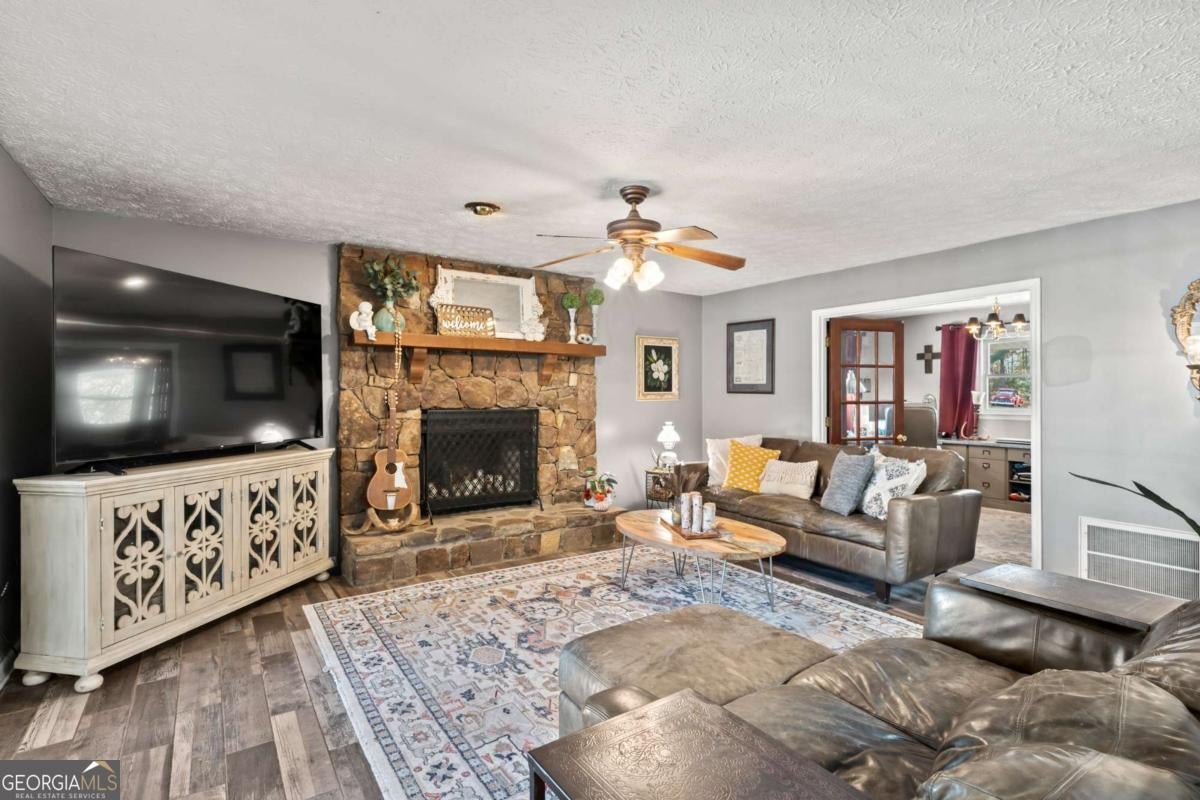 Experience the perfect balance of privacy, comfort, and natural beauty on this 6.12-acre property, surrounded by a mix of open and wooded land. Warm hardwood floors flow through the main living areas, while tile adds a polished touch to the bathrooms and laundry room. The kitchen boasts granite countertops, a breakfast room, and a pantry, seamlessly opening to the inviting family room with its cozy fireplace, while a separate dining area provides space for memorable gatherings. The oversized owner's suite offers a peaceful retreat with a double vanity, bidet, tiled tub and shower combo, and a spacious walk-in closet. Outdoor living is equally impressive, featuring a wraparound porch, a large deck, and multiple fire pit areas perfect for evenings under the stars. Practical features include RV access, ample parking, and a 1,200-square-foot unfinished basement with exterior entry, a stubbed bath, and a dedicated workshop space-ideal for hobbies or future expansion. The property's mix of cleared and wooded land, ATV trails, and scenic trees that change with the seasons create a true private sanctuary. Conveniently located near Rome, Cartersville, and Rockmart, and just two hours from Atlanta Airport, this home offers the tranquility of rural living with easy access to outdoor recreation, local charm, and modern conveniences.