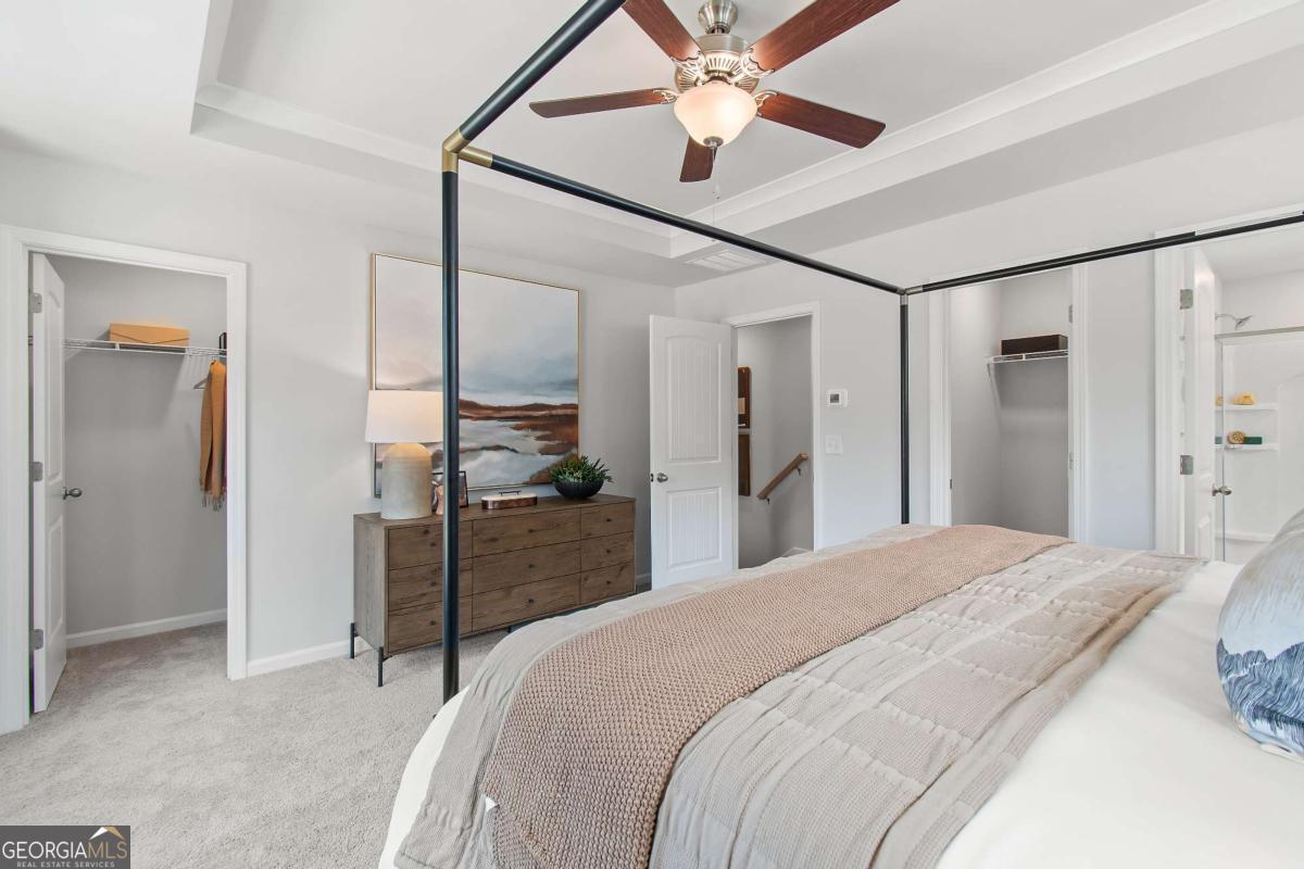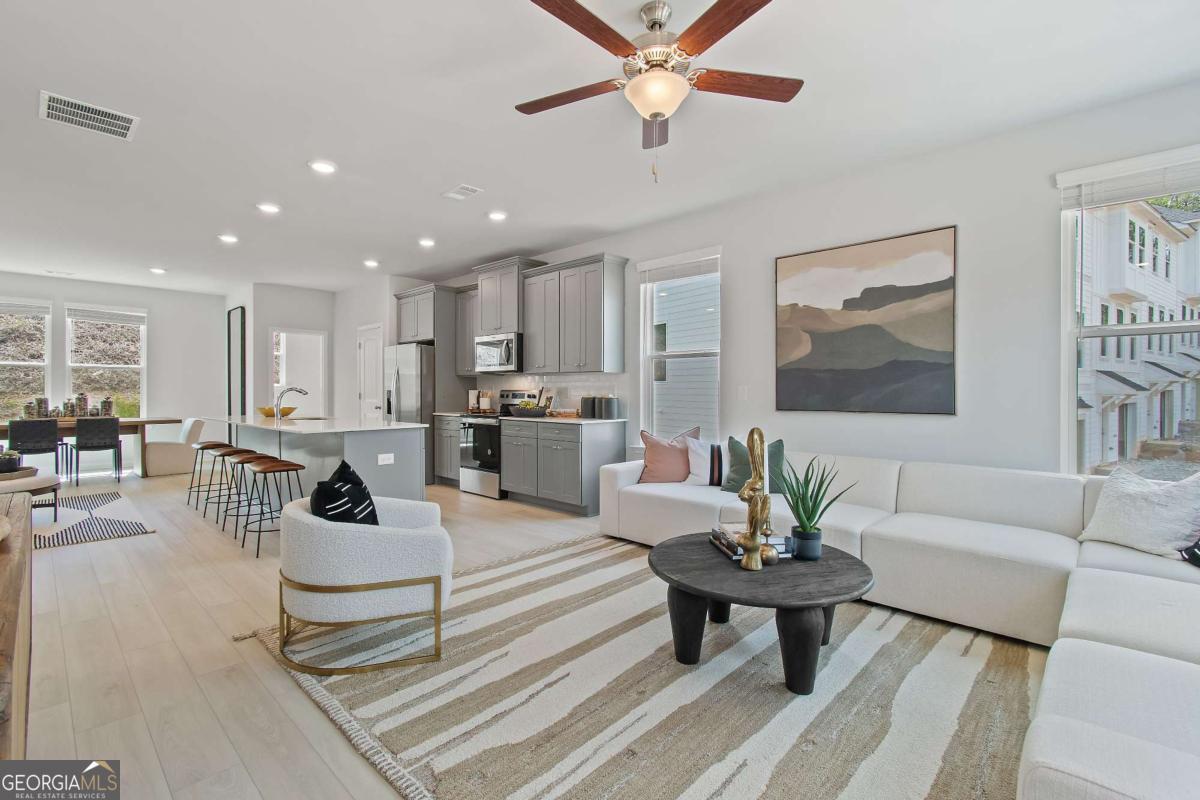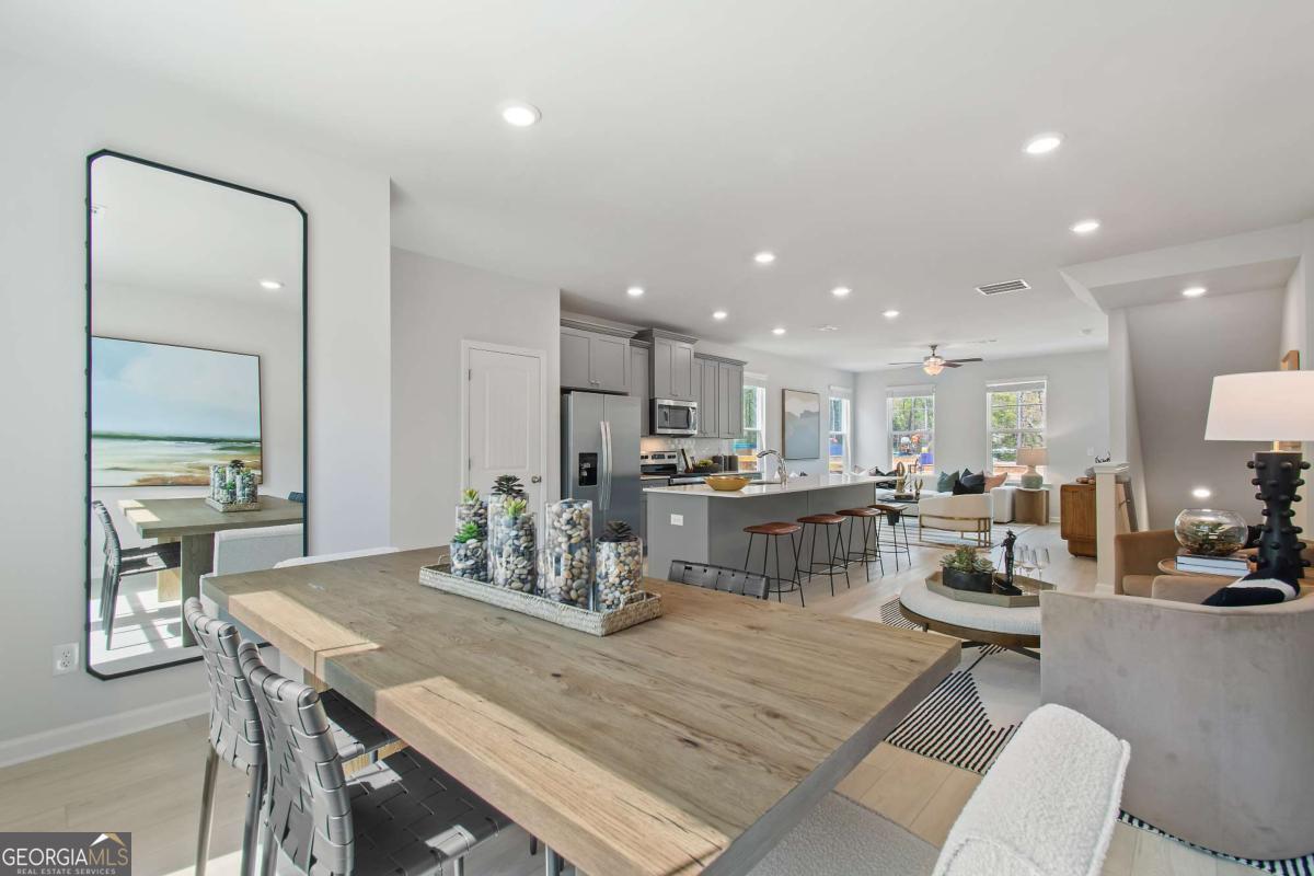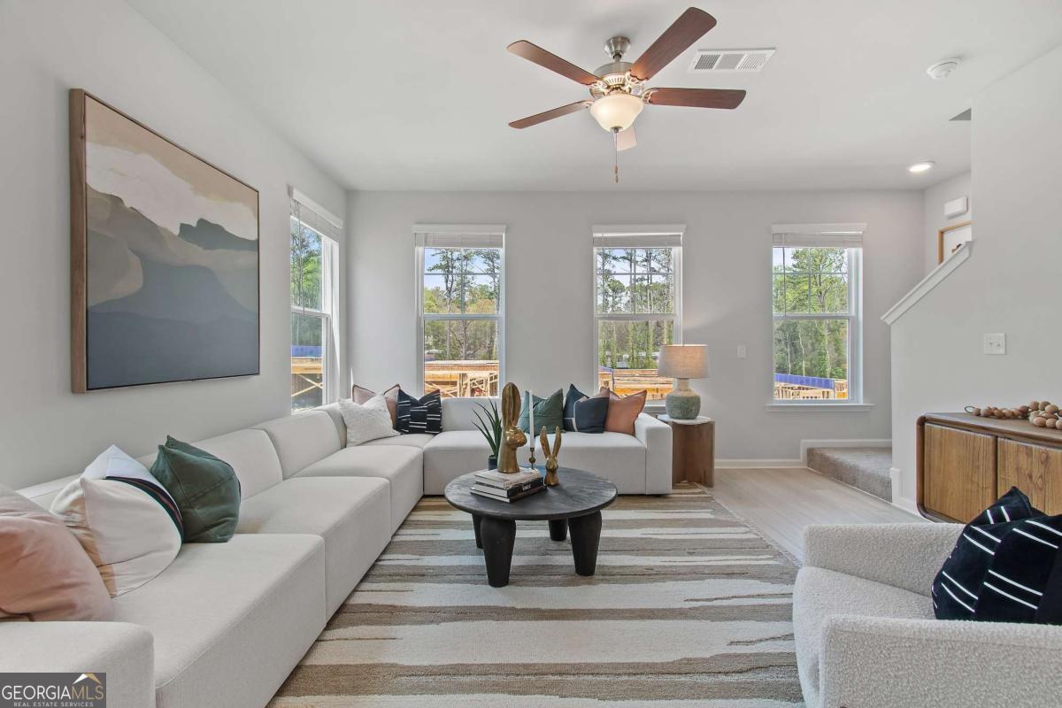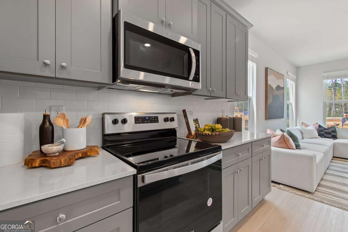 Discover this impressive three-story townhome featuring 3 bedrooms and 3.5 baths, plus a spacious game room perfect for entertaining. The ground level includes a large game room, a half bath, and access to a covered back patio. On the second level, enjoy a beautifully designed kitchen with ample cabinetry, a large island, Quartz countertops, a tile backsplash, and a full suite of stainless-steel appliances. The kitchen overlooks the breakfast and family rooms, making it ideal for gatherings, and there's a convenient powder room on this level. The third floor is your private retreat, with a roomy Owner's Suite featuring tray ceilings, dual walk-in closets, and a luxurious spa-like bathroom with a double vanity. Two additional spacious bedrooms, pre-wired for ceiling fans, and a full bathroom are also on this level. The laundry area includes a washer and dryer. Additional features include a one-car garage with an opener, a one-car parking pad, and window screens and blinds throughout. Conveniently located just 2.5 miles from the airport, 9 minutes from downtown Atlanta, and 12 minutes from the College Strip and Mercedes-Benz Stadium. You'll also be close to the future Aerotropolis and Airport City, with excellent access to major highways, Marta, and the Atlanta Beltline Eastside Trail. Monticello offers luxury townhome living with a low-maintenance lifestyle. *Photos are representative and may not reflect the actual townhome being built.* Please note: If the buyer is represented by a broker/agent, DRB REQUIRES the buyer's broker/agent to be present during the initial meeting with DRB's sales personnel to ensure proper representation.