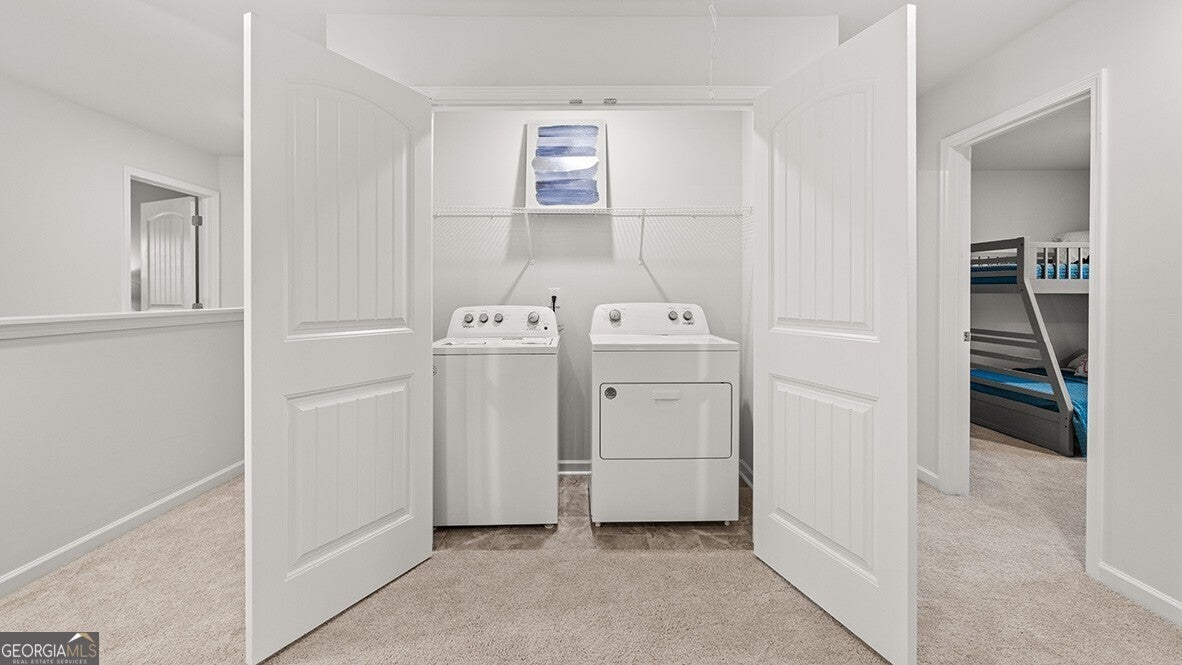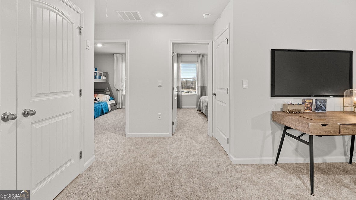 Welcome to 3269 Ryker Road at Oconee Overlook, a brand new DR Horton community in Gainesville. The Sudbury floorplan is a spacious two-story plan featuring 3 bedrooms and 2.5 bathrooms in 1,877 square feet along with a 2-car garage. Enjoy beautiful, wooded views from your back patio. As you step off the front porch, a long foyer welcomes you and leads into the open-concept main living area. A large family room is the perfect place for family and friends to gather or for a quiet night with a book or movie. The family room flows seamlessly into the well-appointed kitchen with a center island, granite countertops, beautiful white shaker-style cabinetry, and stainless-steel appliances. A dining area directly off the kitchen provides space for a dining table and opens onto the back deck or patio. There is also a half bathroom tucked away on the first floor. Up the stairs you'll turn from the landing into the primary suite. A spacious bedroom is complimented by the en suite bathroom featuring a separate tub and shower, dual vanity, water closet, linen closet, and a roomy walk-in closet. Across the landing you'll be led into a loft area that's perfect for a game room or second living space. 2 secondary bedrooms, the laundry room, and an additional bathroom, also with dual vanity, round out the upper floor. Just minutes from Lake Lanier, residents can enjoy endless opportunities for outdoor recreation. With plenty of dining options, shopping centers, and everyday conveniences nearby, Oconee Overlook offers a perfect balance of comfort and accessibility. Call us today to make 3269 Ryker Road your new home today! DISCLAIMER: Photos listed are of a model Sudbury home, not of actual unit. Some specifications may differ.