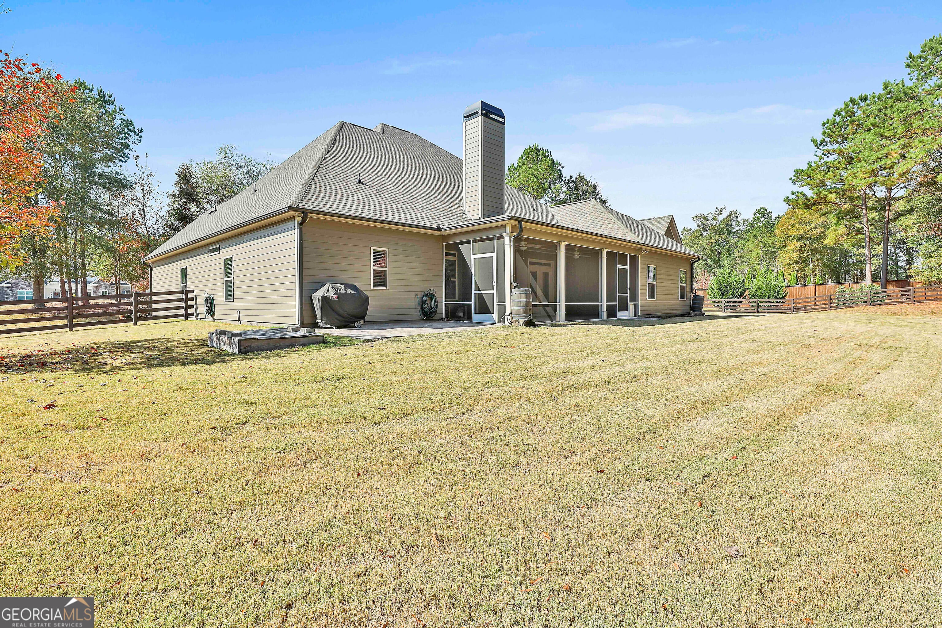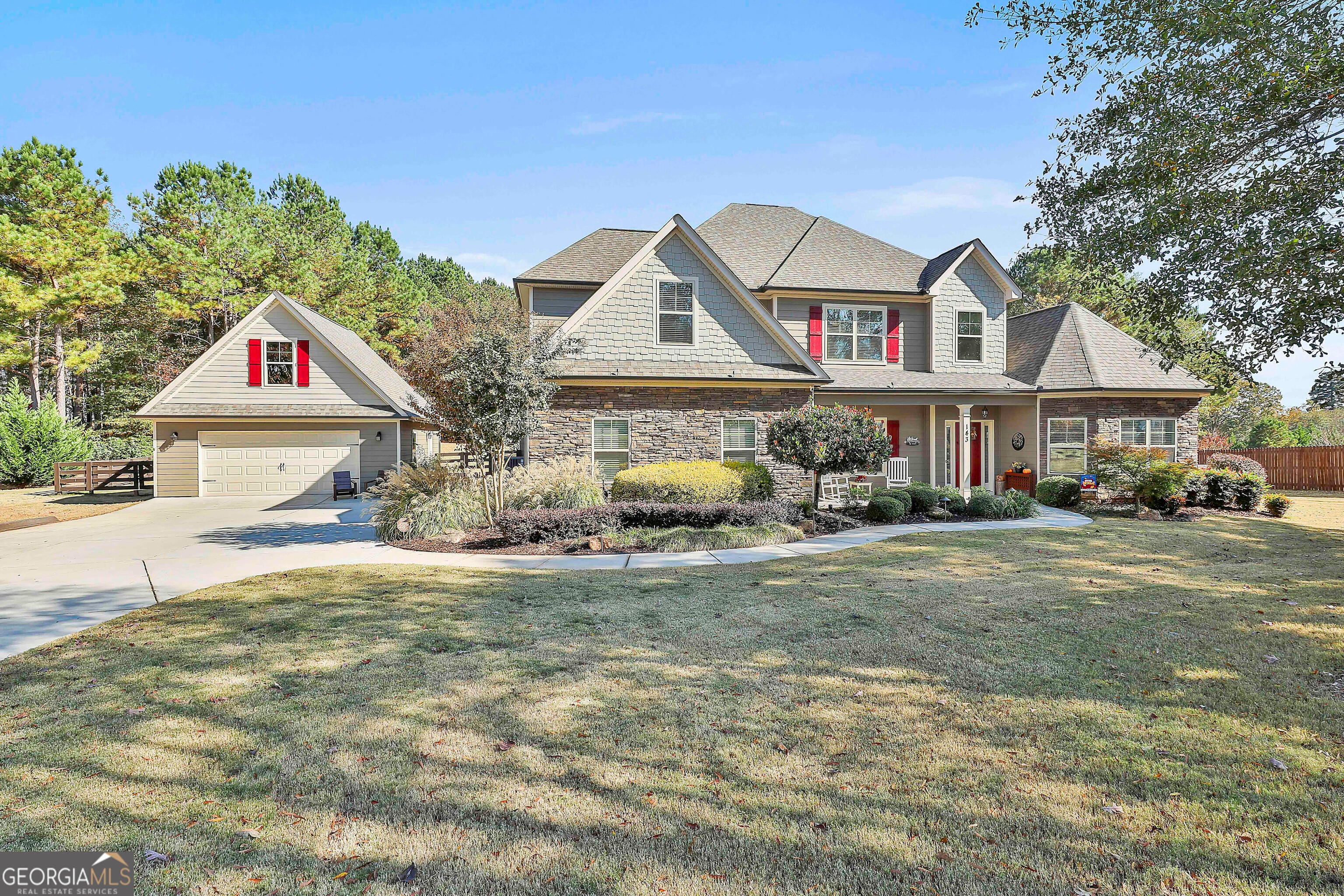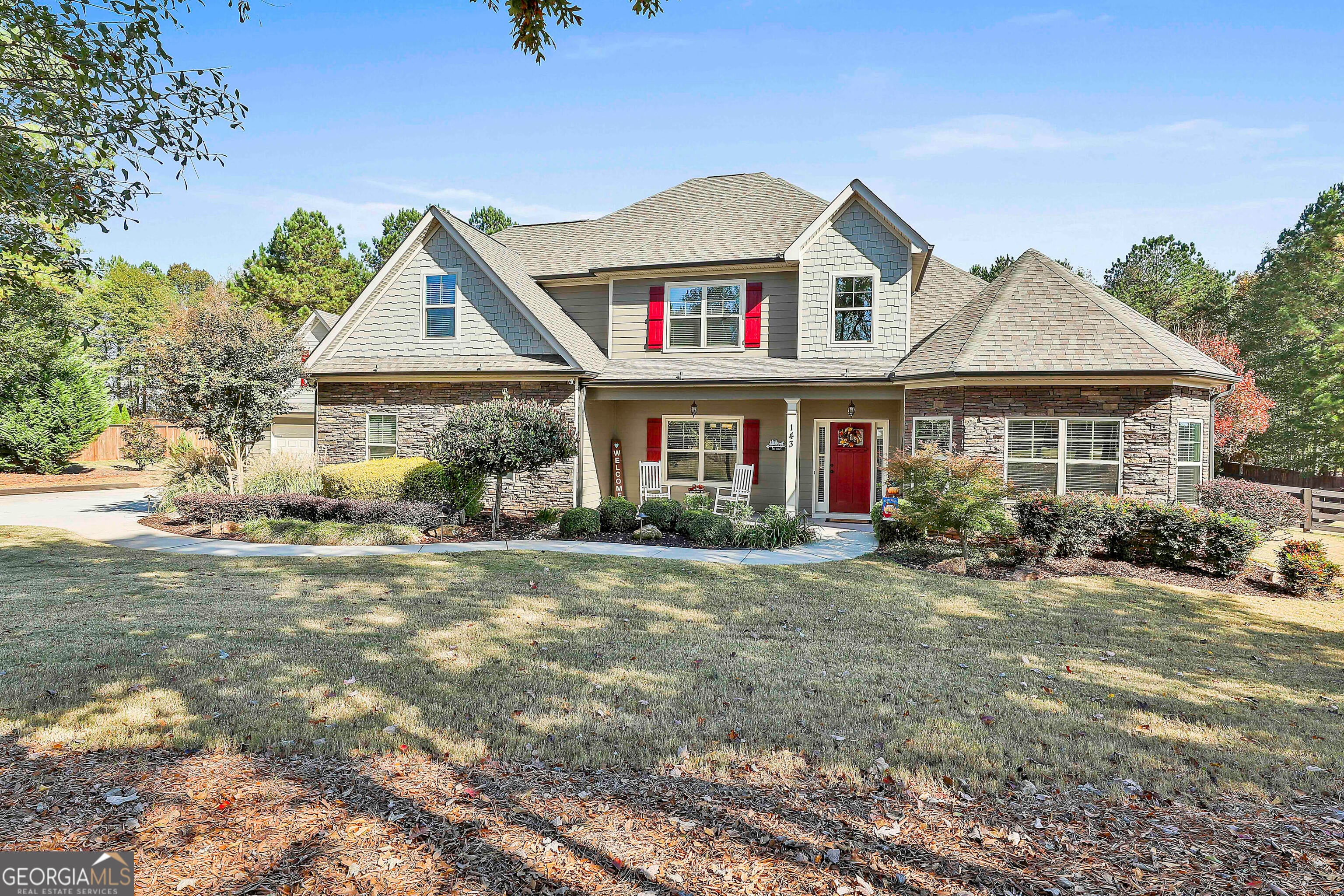 This 3766 square foot single family home has 4 bedrooms and 3.5 bathrooms. This home is located at 143 Linchwood Dr, Senoia, GA 30276. This is a beautiful and well maintained home in the Linchwood estates subdivison of only 27 homes all on one acre lots. As you drive up you will notice the beautiful landscaping which looks just as beautiful at night when the professionall installed landscape lights come on. This is an excellent location convient to Senoia, Peachtree City, and Newnan. Step through the front door and notice the soaring high ceilings that lead to a beautiful living roon with stone fire place. The Living room and gormet kitchen are open to each other and offer tons of living space, The kitchen features a double oven, electric range, dishwasher, refrigerator with ice maker and microwave. The beautiful walk in pantry offers plenty of storage space, and the custom granit counter tops are amazing. The large 16 x 19 master bedroom has a beautiful tray ceiling and adjoins the master bathroom with double vanity sinks, large walkin shower and seperate bathtub. The master closet has a cutome built in closet system with drawers and lots of room to hang clothes as well as plenty of shelf space. Two other bedrooms are downstairs each with its own walk in closet. There is also a full bath as well as a half bath also down stairs. Closer to the front of the house are a beautiful dining room with coffered ceiling and a large 15 x 15 office / den space. Upstairs you will find a large bonus room excellent for games, t.v., workout area, etc.. there is also another bedroom and full bath upstairs, great for older child / teen or out of town guest,. The property also features a two car garage as well as a another detached oversize 2 car garage. This would be outstanding as a work shop or room to park your boat or ATV's etc... The detached garage also has a second level for even more storage. Enjoy the large screened in back patio as you overlook the beautiful backyard which is partially wooded and completly fenced in with farmhouse style fencing. Don't miss this opportunity enjoy one of Senoia's most beautiful homes.