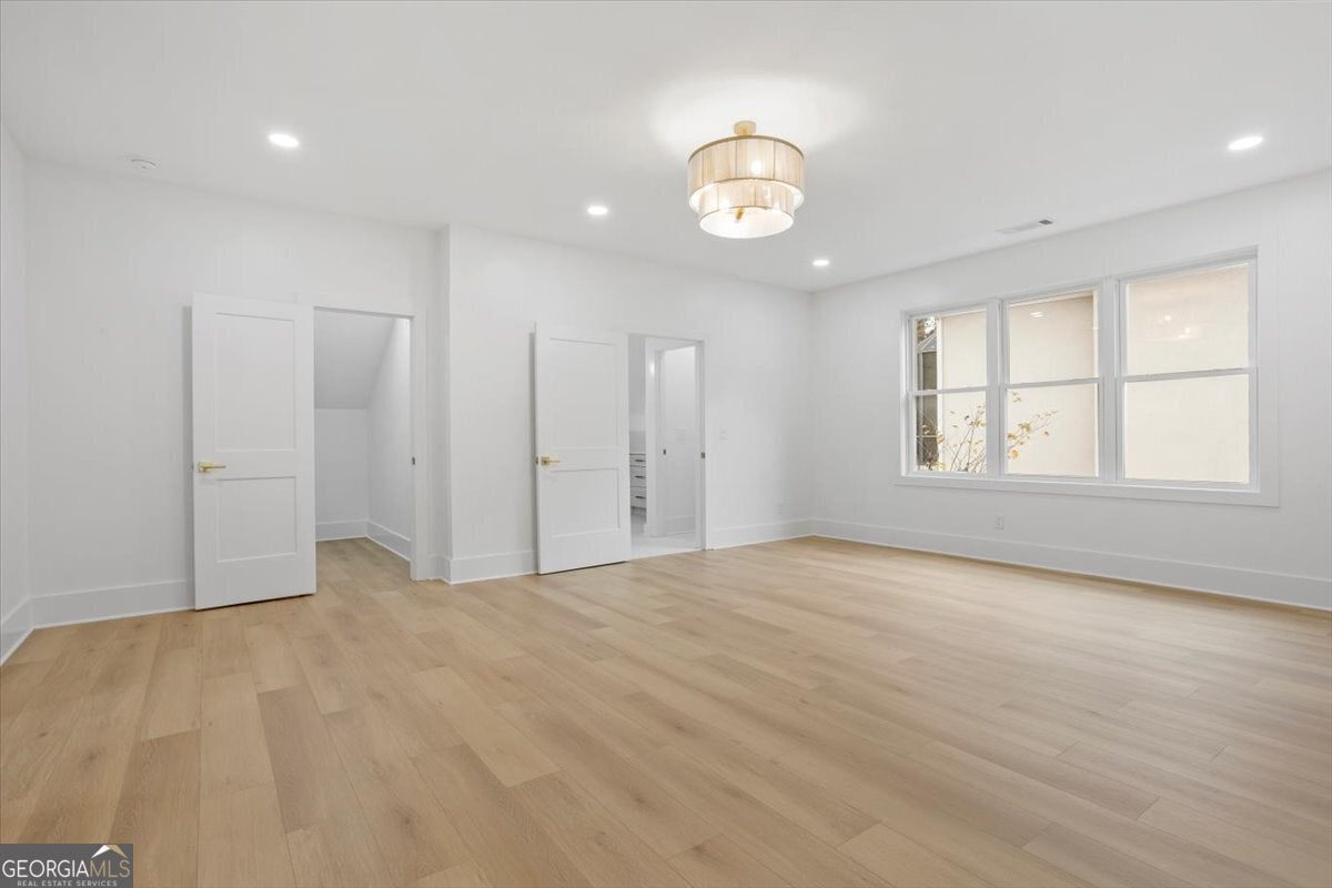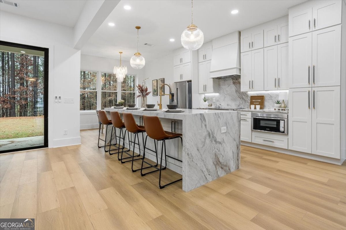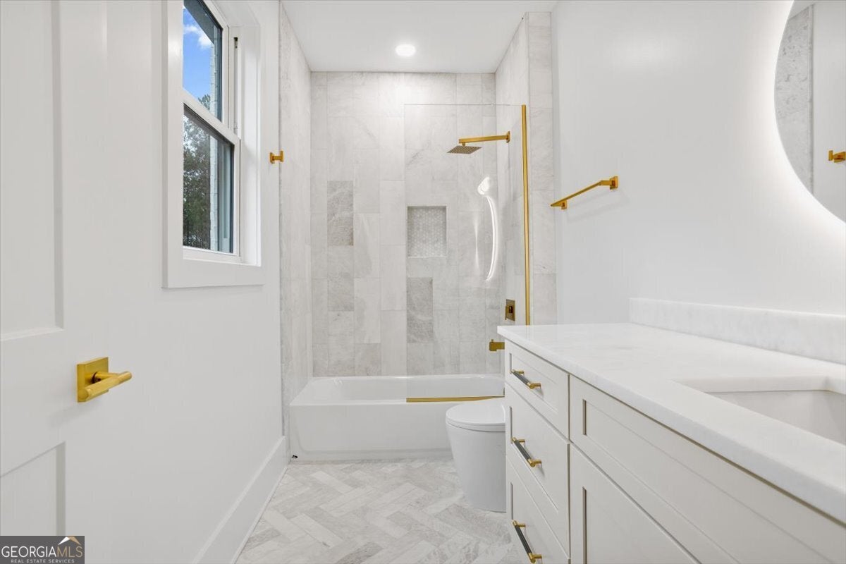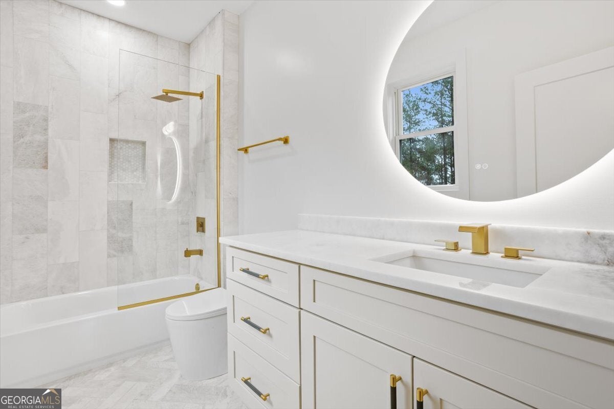 Stunning new construction modern luxury awaits at 606 Talmadge Ln in Governors Preserve. This four-sided painted brick residence features 10'+ ceilings and a dramatic living room highlighted by a floor-to-ceiling solid-surface stone fireplace and 3-panel multi-slide glass doors that open seamlessly to the private backyard. The chef's kitchen is meticulously designed with waterfall stone counters, a walk-in pantry, breakfast nook, large dining room, and a butler's pantry with wet bar. This flexible multigenerational layout boasts two primary suites-one on each level-including a superb upstairs suite complete with its own private exterior entrance from the garage. The second floor also features a Jack-and-Jill bath layout with shared access to a charming Romeo and Juliet balcony. Additional functional spaces include a main-level office, an upstairs bonus room, and a versatile room above the garage ideal for a 6th bedroom, media room, or private retreat. All bathrooms showcase granite countertops and high-end fixtures. The property is completed by an oversized garage with epoxy floors and EV charging, and a level backyard perfectly suitable for a future pool. Located in a top-rated school district and minutes to downtown Canton with easy access to Roswell, Alpharetta, and Cumming. This is a rare blend of craftsmanship, comfort, and contemporary design-your next chapter of luxury begins here.