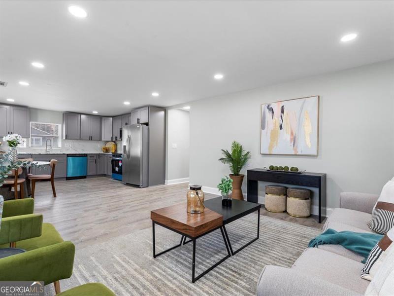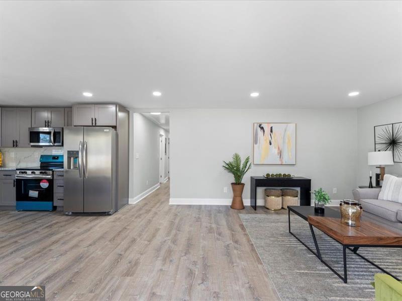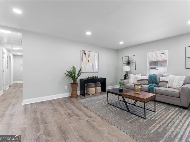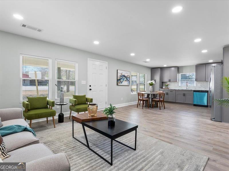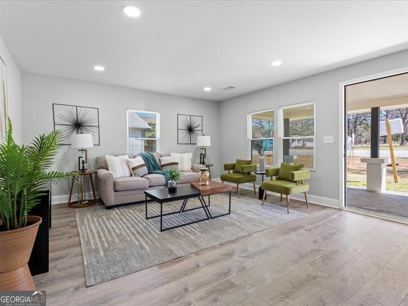 Welcome to this beautifully renovated ranch-style home, set on a generous half-acre lot that provides ample space in both the front and back yards!! This home features a brand-new roof, offering peace of mind and long-term durability. Inside, the open-concept kitchen showcases elegant stone countertops, a stylish tile backsplash, and modern stainless steel appliances. New luxury vinyl tile (LVT) flooring flows seamlessly throughout the home, adding a fresh and contemporary feel. The spacious master bedroom includes direct access to the backyard, creating a private retreat for relaxation. Both the front and backyards offer endless potential-perfect blank canvases for gardening, outdoor entertaining, or personalized landscaping. Located in a community that blends country charm with urban convenience, this home sits just 30 to 40 minutes from downtown Atlanta. Residents enjoy a peaceful lifestyle with less traffic, a welcoming neighborhood feel, and easy access to city amenities.