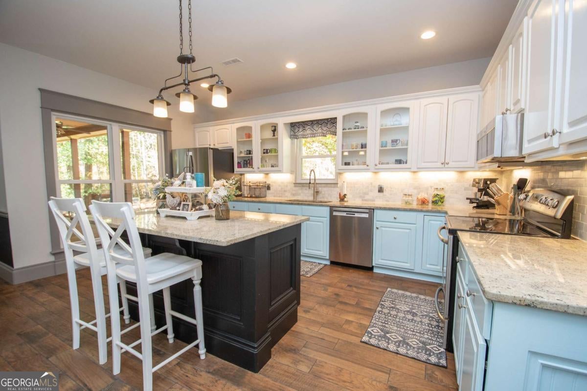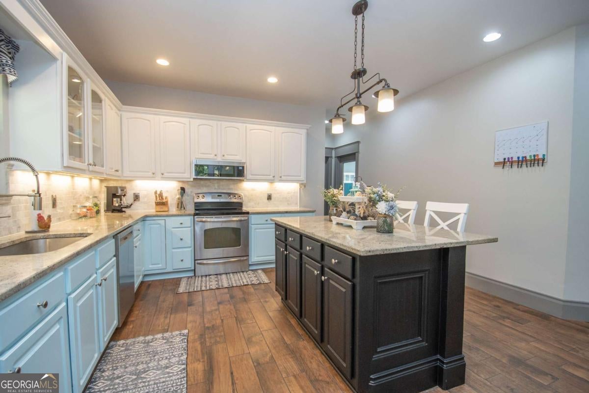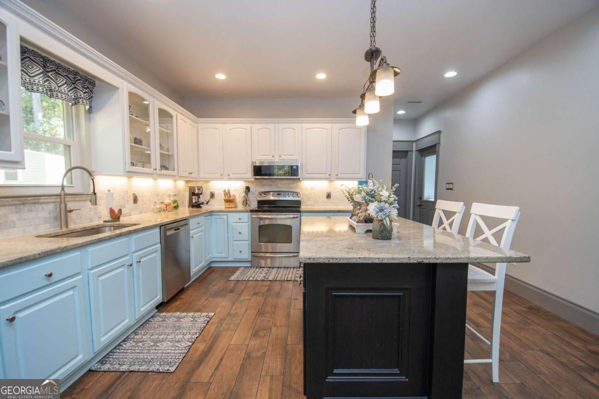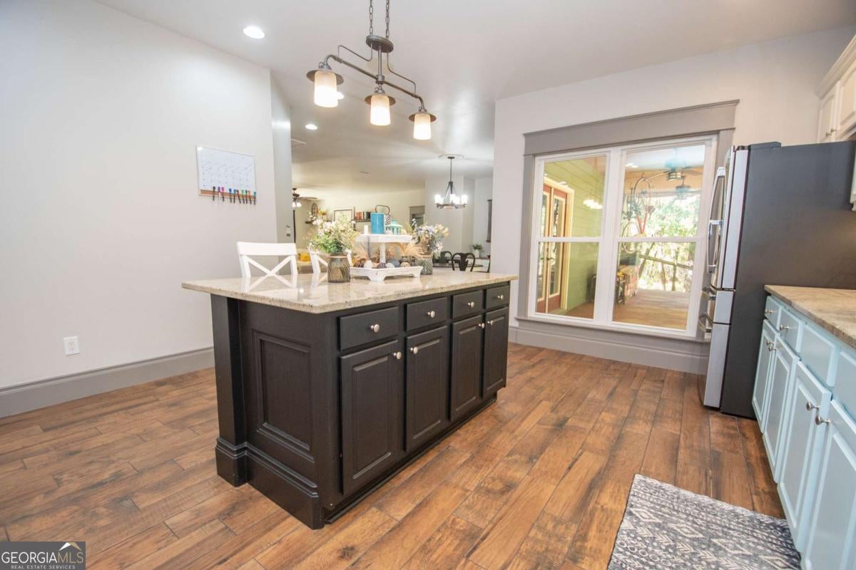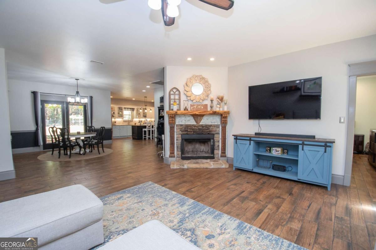 The One You've Been Waiting For! Welcome home to this beautifully remodeled 2,264 sq. ft. ranch nestled on over 8 private acres, a rare find that perfectly blends space, comfort, and country charm! This 3-bedroom, 2-bath home welcomes you with high ceilings, tile flooring, and custom wood finishes throughout. The spacious open floor plan includes a large family room with a cozy fireplace, a formal dining area, and a massive updated kitchen featuring granite countertops, abundant cabinetry, and generous workspace, ideal for any home chef! You also have bonus areas including an office space and a flex room perfect for a fourth bedroom, workout room, or den! The primary suite is a true retreat with a spacious bathroom, a walk-in closet, and beautiful tile work. The split-bedroom design offers privacy, while each room feels bright and airy with tall ceilings, large trim, and detailed baseboards! Step outside and enjoy vaulted, tongue-and-groove porches both front and back, perfect for rocking chairs, relaxing afternoons, or evening gatherings with friends and family. The property offers endless opportunities with a fenced yard, an oversized chicken coop, and plenty of space for goats and bees. There's even a basketball goal for the kids! Recent updates include an AC system (2019), a new water heater (2024), a full home remodel (2020), and a water filtration system. A winding private driveway leads you to this peaceful retreat surrounded by nature and open space. Enjoy the best of both worlds, peaceful country living just 10 minutes from downtown LaGrange, 2 miles from the Liberty Hill Boat Ramp on West Point Lake, and within walking distance of the volunteer fire department. With its charm, updates, and land, this home truly has it all. Call today before it's gone!