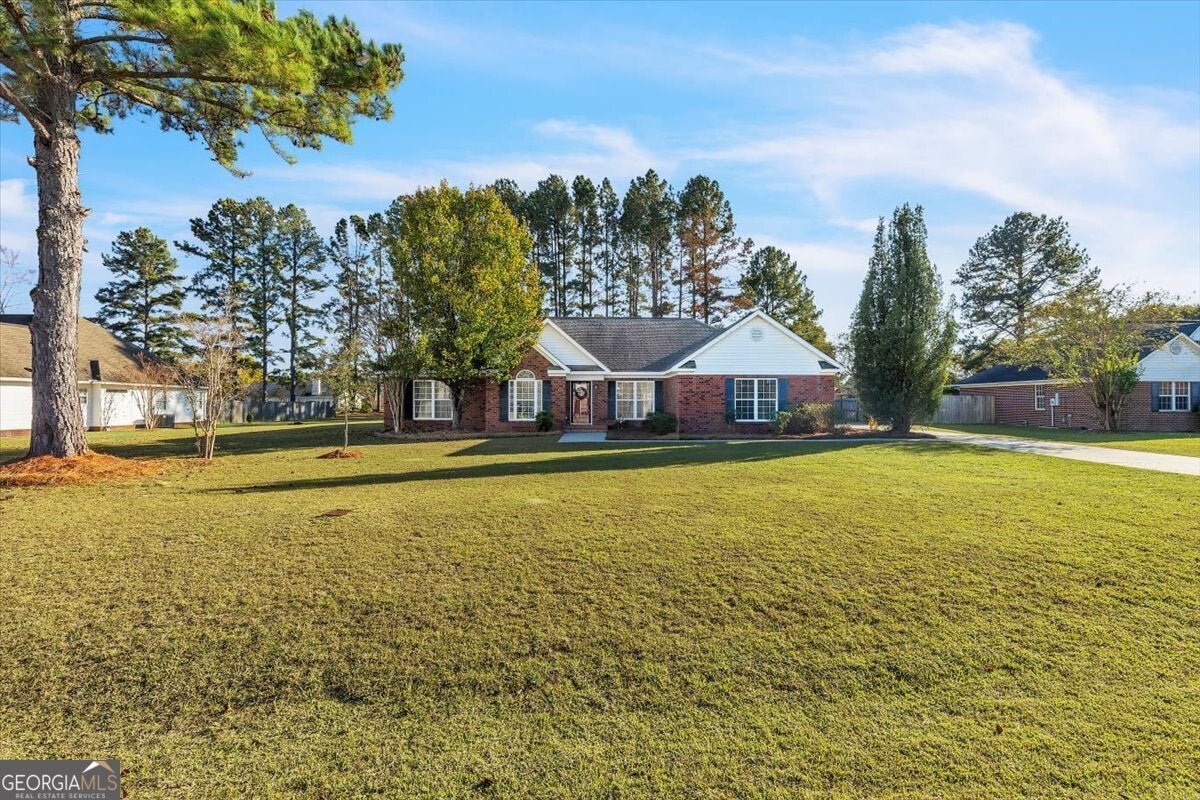 Welcome to this beautifully updated 4-bed, 2.5-bath brick home located in a quiet subdivision just 5 minutes from downtown Statesboro! Step inside to a bright, inviting interior with thoughtful updates throughout-including NEW flooring, lighting, & fresh paint. The living room offers vaulted ceilings & tons of natural light, while the huge bonus room has a gas fireplace. You'll love the kitchens NEW quartz countertops, center island w/ breakfast bar, & ample cabinet space. Enjoy a desirable split floor plan with the primary suite offering a walk-in closet, double vanities, soaking tub, & access to the large back patio. Relax or entertain on your expansive .61-acre lot with a storage shed. Other features include a 2-car garage with NEW motor, & NEW water heater, sliding glass doors, vanities, & exterior lighting. Ideally located minutes from GSU, shops, & restaurants. With Statesboro continuing to grow & thrive, there's never been a better time to make this vibrant community your home!