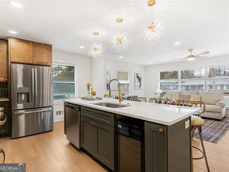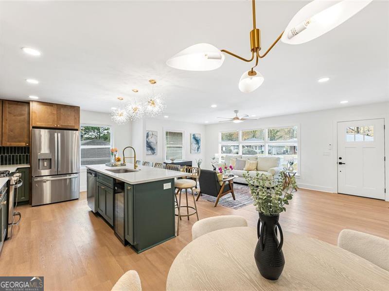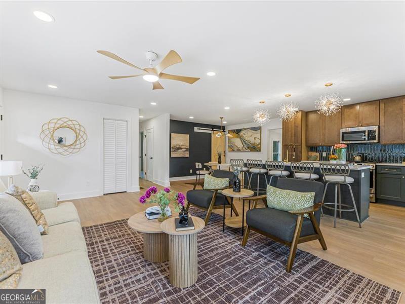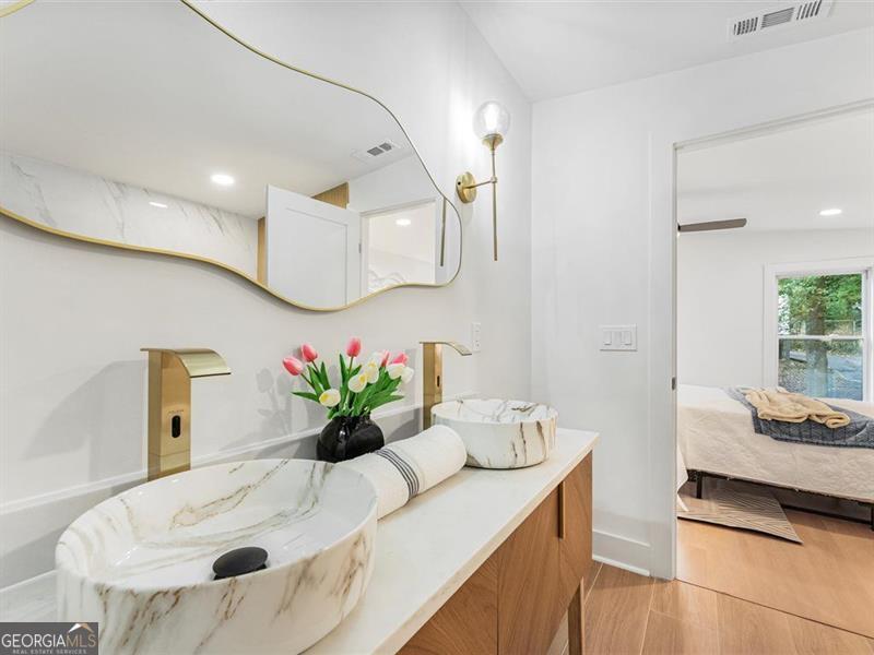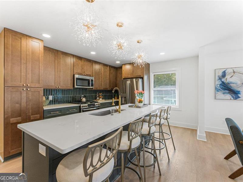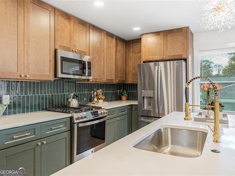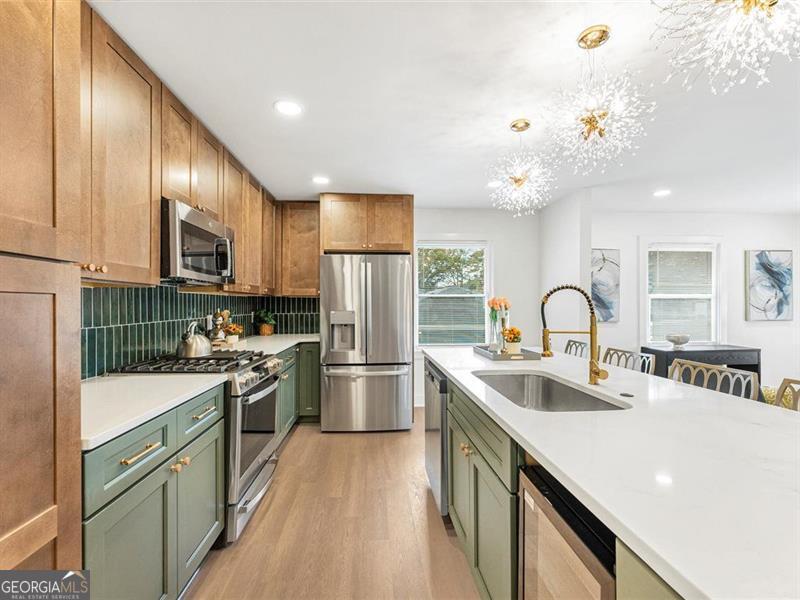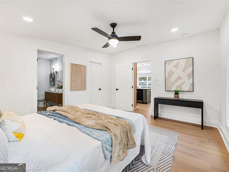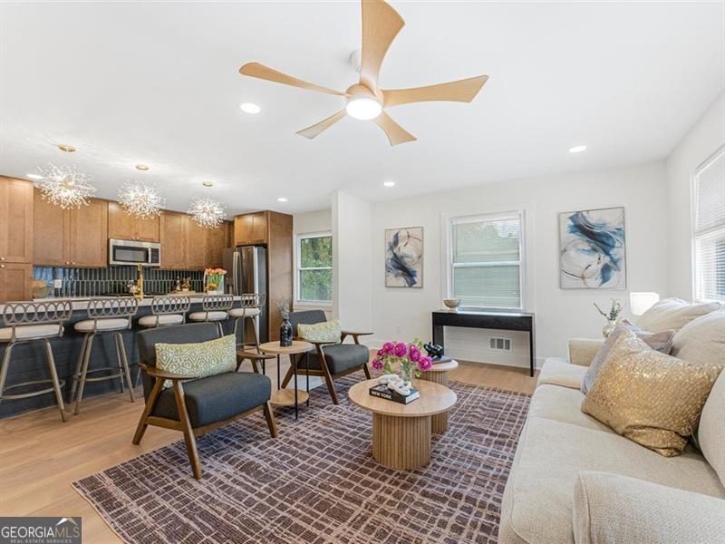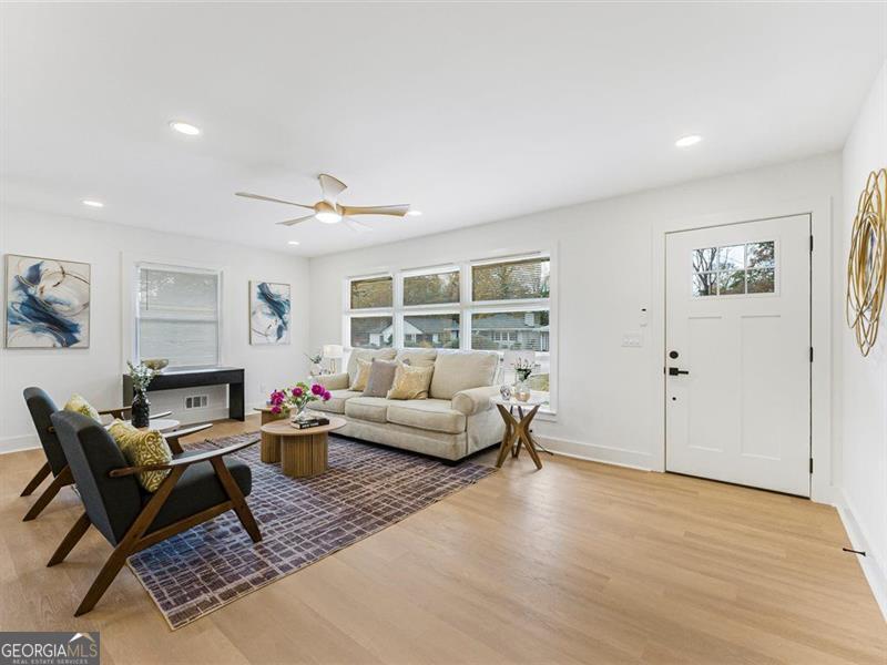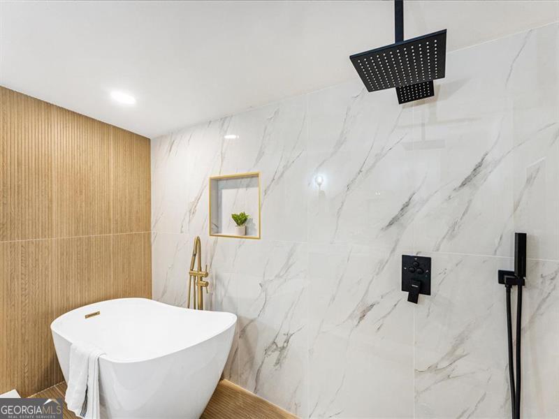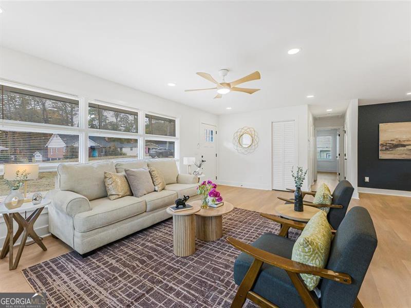 Beautifully remodeled home featuring stunning upgrades throughout! Enjoy new rain gutters, floors, windows, cabinets, quartz countertops, brass fixtures, and stylish door trims. The open-concept kitchen showcases a beautiful color palette and stainless steel appliances. The master suite offers a spa-like retreat with a soaking tub and double shower heads for the ultimate relaxation. The finished basement provides extra space, perfect for guests or a home office. The backyard is ready for your personal finishing touches. Conveniently located about 15 minutes from Downtown Atlanta and 20 minutes from the airport, this home perfectly blends comfort, luxury, and accessibility.