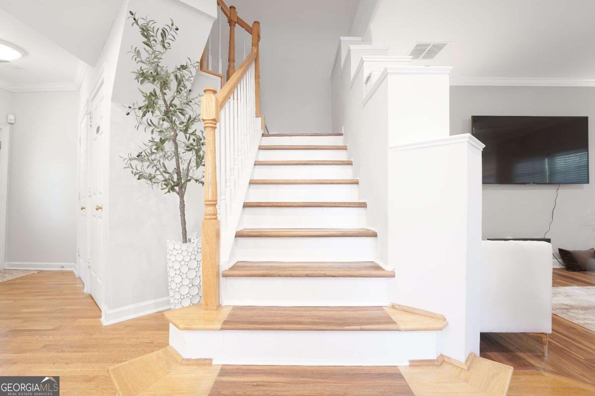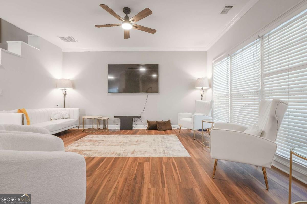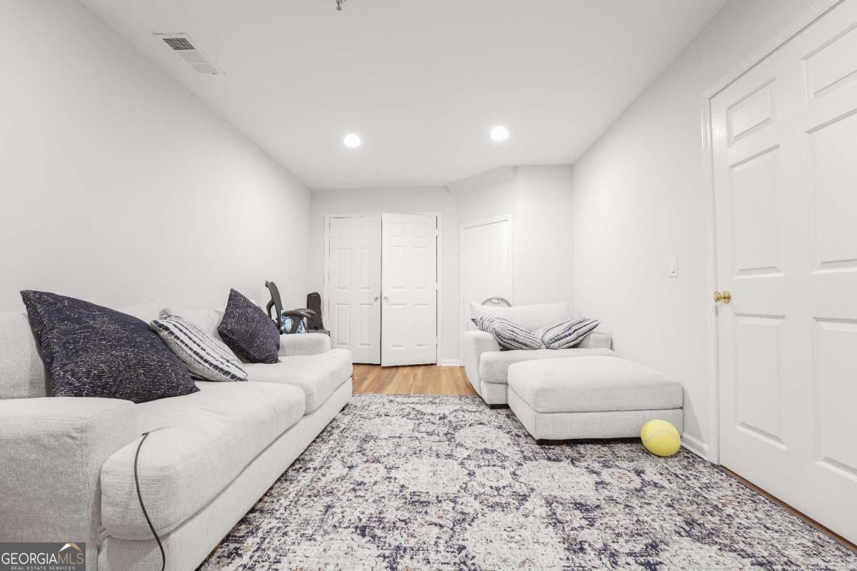 Beautifully updated end-unit townhome in the heart of Sandy Springs! This bright and spacious home features an open-concept main level with hardwood floors, 10-ft ceilings, and large windows bringing in natural light. Modern kitchen with white cabinets and appliances flows into a cozy living area with a double-sided fireplace and access to the deck. Upstairs offers two large bedrooms with en-suite baths, including a primary suite with trey ceiling, walk-in closet, and spa-style bath. Bonus room downstairs is perfect for an office, media room, or guest suite. Two-car garage and excellent location-minutes from GA 400, downtown Sandy Springs, and Roswell!