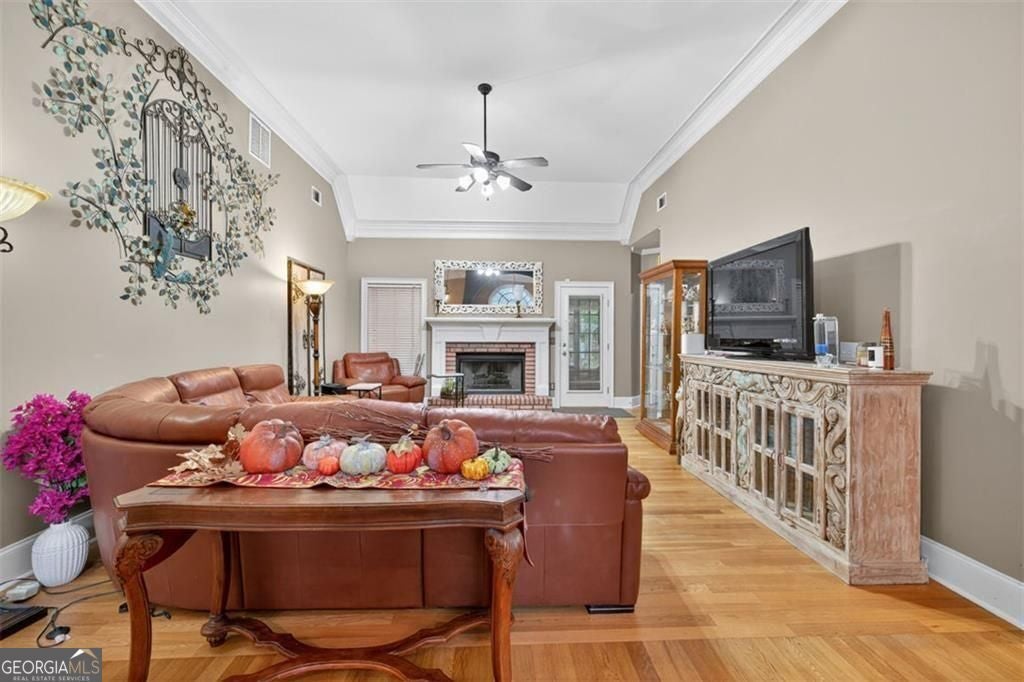 Welcome home to this beautiful, well maintained brick residence in the highly desired, well established Tara Club Estates, a beloved Southern staple known for it's charm and community spirit! Step inside to discover crown molding throughout, gleaming wood floors, and a cozy gas fireplace that sets the tone for comfort and elegance. The spacious granite kitchen is a chef's delight, featuring abundant counter space, high end appliances including a BRAND NEW BOSCH dishwasher and a WOLF gas range! There is also a kitchen desk area and a coffee bar!! Overlooking a flower-filled backyard, the sink's view is a daily dose of serenity! Enjoy peaceful afternoons on the tiled, screened in porch, ideal for taking in the tranquility of the backyard which has a flowing coy pond or entertaining your guests with food and your favorite sports! The front and backyard are both a birdwatcher's dream. The primary suite impresses with lots of space, an exquisite trey ceiling, and a spa-like experience complete with a jetted tub, fully tiled shower and floors. The main floor guest rooms are spacious, and the front room also offers a view of the front yard, which is also dream setting as it is bursting with perineal flowers! A separate teen suite upstairs offers privacy and flexibility for guests, hobbies, or a home office. With a newer roof, NEW hot water heater, updated furnace and a NEW dishwasher, this home combines timeless elegance with modern updates for easy living! Tile floors in the baths and laundry room add both style and durability! All that's left to do is move in and start enjoying the comfort, quality and charm this home offers inside and out! Did I mention LOCATION?!