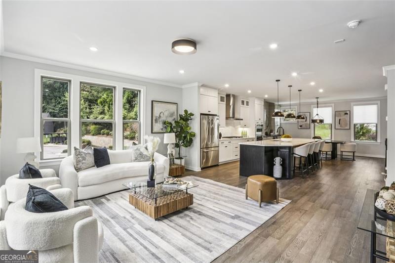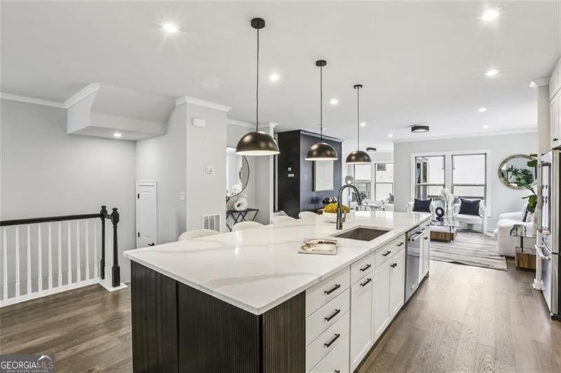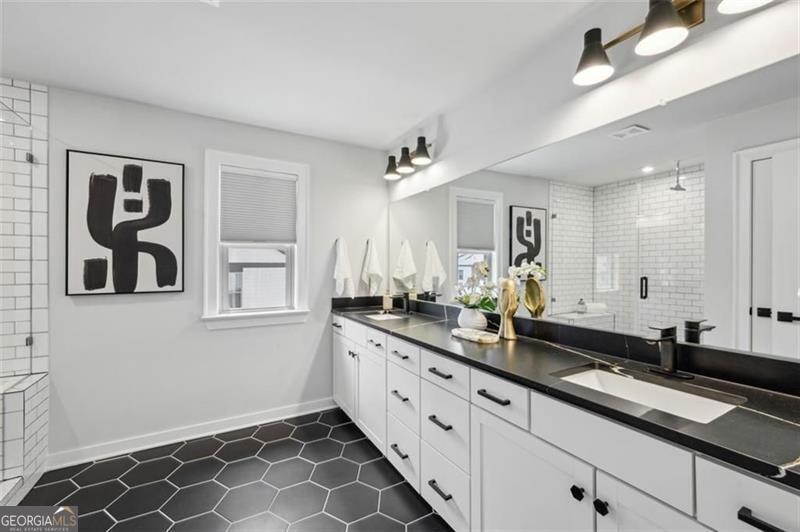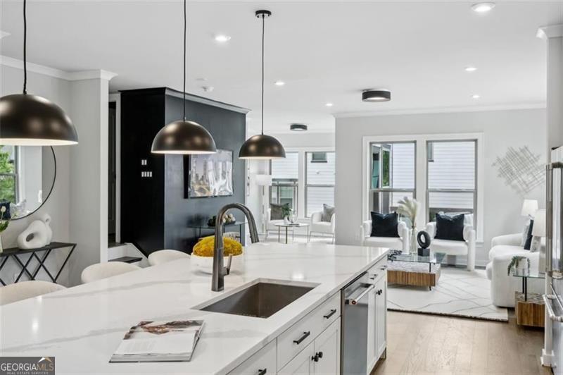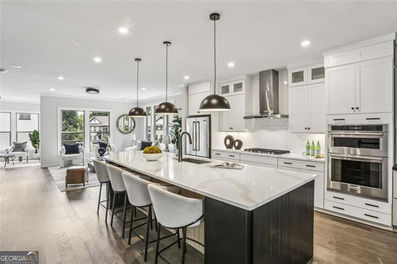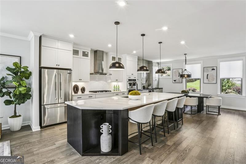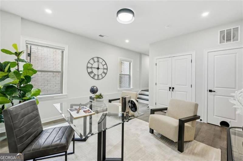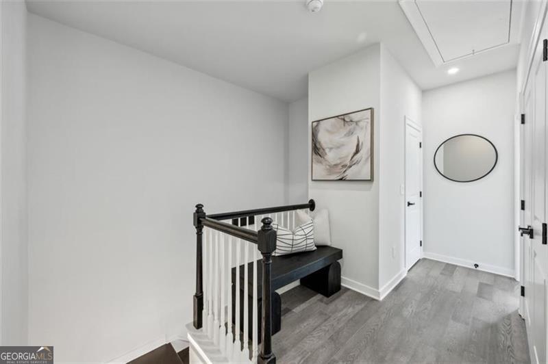 Move right into this spectacularly upgraded, better than new Carver Plan end unit in Parkside at Mason Mill-one of the most sought-after communities near Emory! This stunning 4-bedroom home offers an unbeatable combination of luxury, location, and lifestyle, with an impressive array of owner-selected upgrades throughout. Perfectly positioned near guest parking and close to community amenities, this home is among the most recently constructed in the neighborhood. Designed with both comfort and sophistication in mind, the open-concept layout features high-end wood-style flooring, designer lighting, and abundant natural light throughout thanks to the premium end-unit placement. The heart of the home is a chef's dream kitchen: oversized quartz island, five-burner gas cooktop, full-height backsplash, KitchenAid stainless steel appliances, and upgraded ceiling-height cabinetry with integrated storage. Adjacent is a custom-built shiplap-accented pantry with a hidden appliance garage and coffee station, and a dual-zone beverage refrigerator. A dedicated office nook with built-in cabinetry and an upgraded designer powder room add functionality and flair. The spacious terrace level offers flexible living space-ideal as a guest suite, home office, playroom, media room, or gym-complete with a full bath and access to the garage. Upstairs, the luxurious primary suite features trey ceilings, and a spa-inspired ensuite with an oversized frameless shower and upgraded floor-to-ceiling tile. Two additional bedrooms and another full bath complete the upper level, with every bathroom thoughtfully customized with designer finishes. The garage has a dedicated 240-volt circuit for EV charging. Parkside at Mason Mill delivers resort-style living in-town, with amenities including a pool, fitness center, fully furnished clubhouse, business center, scenic walking trails, and a creekside dog park. Enjoy direct access to Mason Mill Park and the South Peachtree Creek Trail, which connects seamlessly to Emory. With unbeatable proximity to Emory, the CDC, VA Hospital, Scottish Rite, Toco Hills and downtown Decatur-as well as shopping, dining, and entertainment-this home offers exceptional value and convenience in one of Atlanta's premier locations.