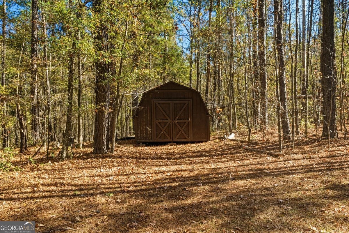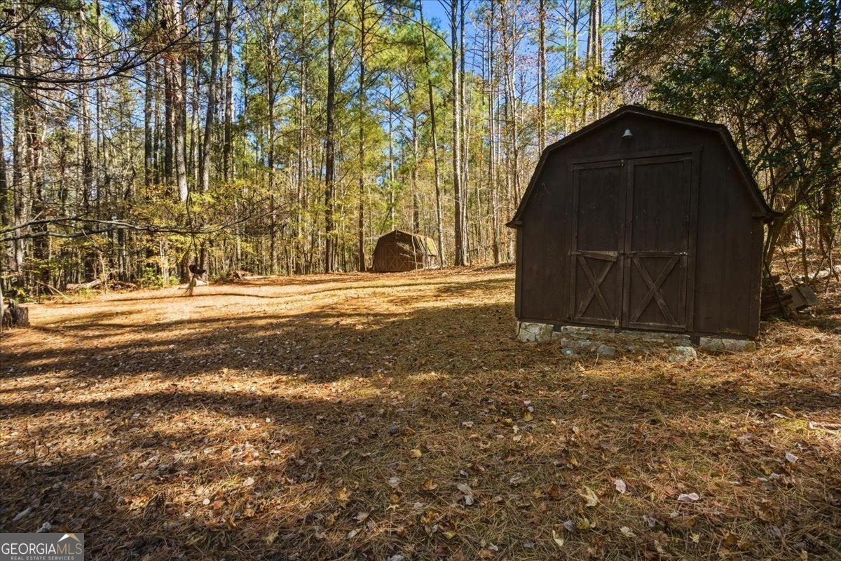 Tucked away on 14.938 acres of private Georgia countryside, this custom home in Griffin offers a serene retreat surrounded by nature's quiet charm. A covered front porch overlooks a peaceful pond - the perfect spot for morning coffee or evening reflection - while the gentle rustle of trees reminds you just how rare this kind of privacy has become. Inside, a warm and inviting living room centers around a beautiful stone fireplace, leading to a cozy kitchen complete with wall oven, cooktop, and breakfast bar. The primary suite rests conveniently on the main level, while two additional bedrooms upstairs share a spacious bathroom. Both bathrooms include the convenience of a double vanity. Step out back to a covered patio and take in the seasonal views of rolling land and wooded serenity. Practical features include a new roof and new HVAC system, ensuring comfort and efficiency for years to come. The outbuilding and shed provide ample storage and workshop space - a bonus for hobbyists or anyone seeking functional flexibility. Minutes from Griffin's local shops and conveniences. 18.8 miles from Trilith, 17.5 miles from Peachtree City and 27.6 miles from Hartsfield-Jackson Atlanta International Airport. Whether you're envisioning a private homestead, weekend retreat, or long-term land investment, this property offers the best of rural tranquility and smart opportunity - all in one beautiful package. Sale includes both 590 S New Salem Road and 592 S New Salem Road (parcel ID's: 266 01004F and 266 01004G)