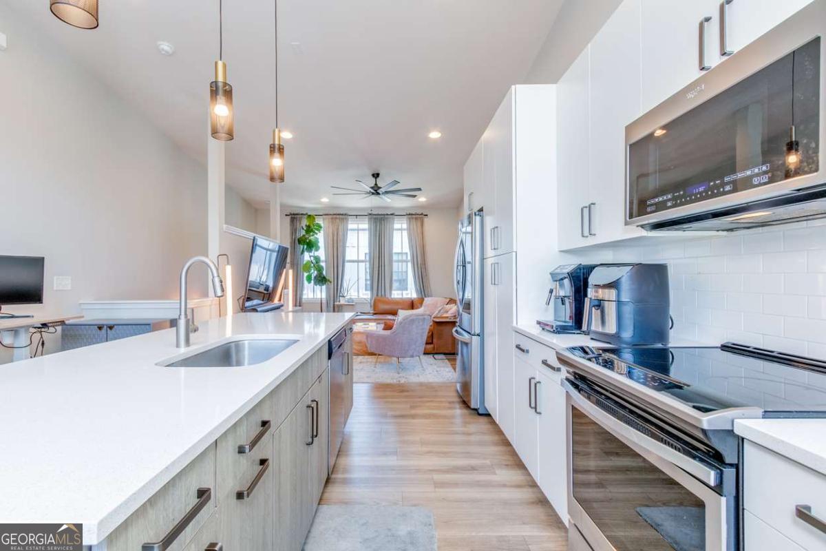 West Midtown Townhome for Rent - Modern Design, Smart Upgrades & Prime Location Experience upscale urban living in this stunning contemporary townhome located in the heart of West Midtown Atlanta. Designed for those who crave modern luxury and convenience, this three-level residence features designer finishes, high-end upgrades, and an open-concept floor plan perfect for entertaining. On the second level, you'll find two spacious bedrooms. The primary suite offers a spa-like retreat with a tiled frameless glass shower, premium fixtures, and power shades. The secondary bedroom includes its own beautifully updated bathroom with a tiled shower/tub combo, matte black finishes, and dual access for guests. The laundry room is conveniently located on the same floor. The third level delivers true open-concept living - with floor-to-ceiling windows, vaulted ceilings, and seamless flow from the kitchen to the living and dining spaces. The chef's kitchen boasts quartz countertops, graphite cabinetry, stainless steel appliances, and a large island with seating for four. Step out onto the oversized patio, ideal for indoor/outdoor entertaining or enjoying an evening under the Atlanta skyline. Smart home features include intelligent lighting, smart locks, garage openers, programmable thermostat, and power window shades. A two-car garage with secure entry and an extra storage room complete the package. Located within walking distance of Westside Provisions District, you're steps away from Atlanta's best shopping, dining, and nightlife. With a future BeltLine connection nearby, this location is one of the most desirable in West Midtown. Don't miss your chance to rent this exceptional modern townhome in one of Atlanta's most vibrant and rapidly growing luxury communities.