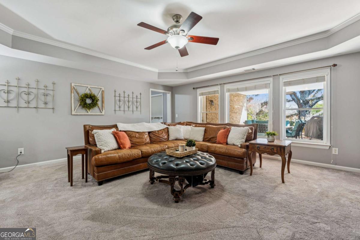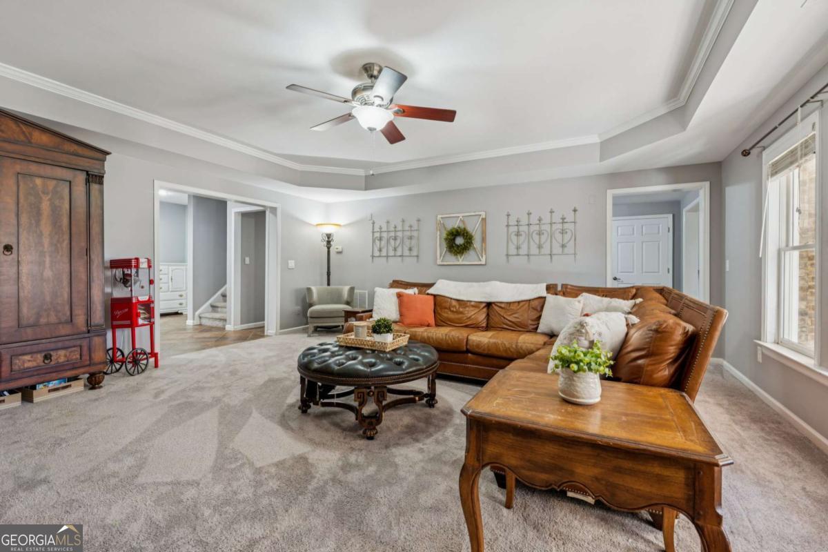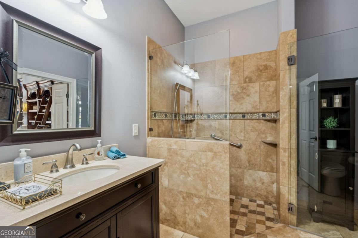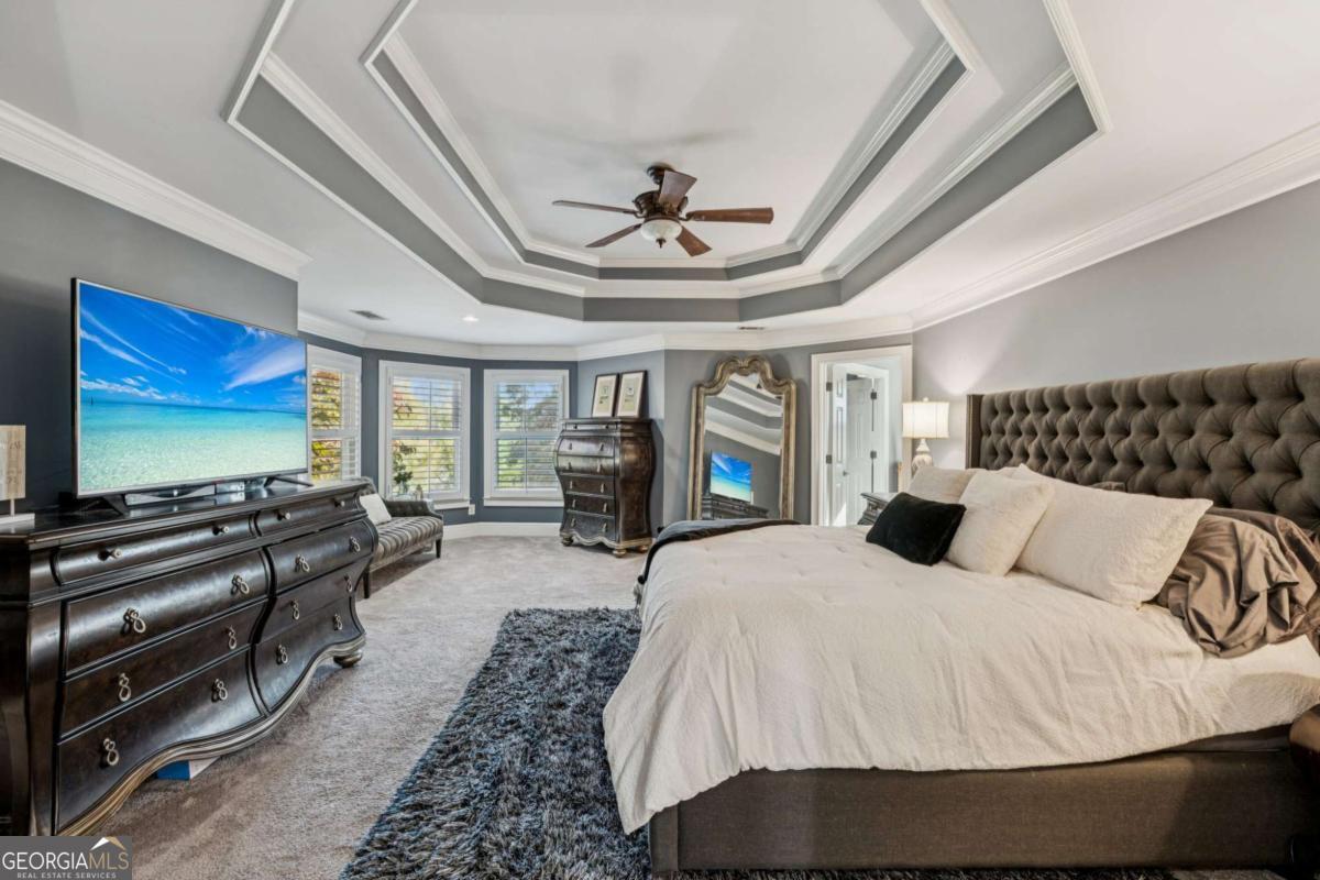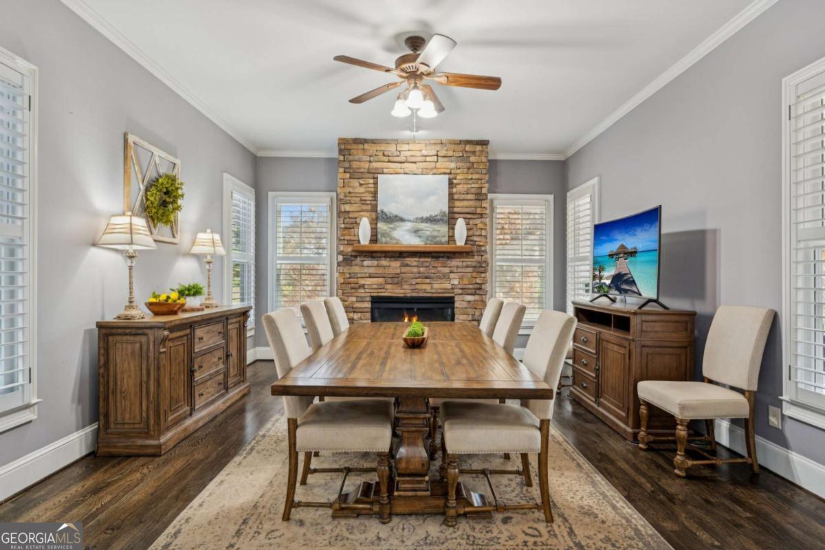 Welcome home to timeless Southern charm and modern luxury at this 6 Bedroom + 5 1/2 Bathroom + Finished Basement masterpiece in sought after Rivermoore Park! This stunning 4-SIDE BRICK home features a COVERED FRONT PORCH, REPLACED ROOF (8 yrs), REFINISHED HARDWOOD FLOORS AND STAIRS, PLANTATION SHUTTERS, SCREEN PORCH, NEW AC UNIT WITH AIR PURIFIER SYSTEM (5 yrs) and SALTWATER HEATED POOL on over half acre private lot. A HOME OFFICE with French doors offers the perfect work-from-home space, while the formal dining room connects seamlessly to the butler's pantry for effortless entertaining. The Great Room impresses with a COFFERED CEILING, custom built-in bookcases, and a gas fireplace. The Gourmet Kitchen is a chef's dream-complete with white cabinetry, stone countertops, a LARGE ISLAND, gas cooktop, double ovens, and a Keeping Room featuring a FLOOR-TO-CEILING STONE FIREPLACE. Step outside to the VAULTED SCREEN PORCH and enjoy year-round relaxation. Upstairs, the oversized Master Bedroom offers a sitting area, COFFEE BAR, and large walk-in closet. The updated Primary Bath features GRANITE vanities, an enlarged tile shower with seamless glass and a SOAKING TUB. Three spacious secondary bedrooms include two sharing a Jack-and-Jill bath and one with its own en-suite. The FINISHED DAYLIGHT BASEMENT has it all with a media room, game room, office, exercise room (equipment included), bedroom, full bath, refreshment bar, and ample storage. Outdoor resort-style living awaits at this sparkling HEATED SALTWATER POOL, (new salt cell and filter 2025), surrounded by gorgeous landscaping, a pergola, and a grassy play area-all within a fully fenced, private .59 acre lot accented by mature trees. Stone steps lead up to a flat driveway and 3-car side-entry garage. Great investment priced under market value in the most popular neighborhood in Suwanee, a tree-lined sidewalk community! World Class Amenities including: Junior Olympic Swimming Pool, 10 Tennis Courts, Basketball Court, Putting Green, 2 Playgrounds, & 80-acre nature meadow with walking path. Award winning NORTH GWINNETT SCHOOLS, and close to Suwanee Town Center, Multiple Parks, Suwanee Greenway, Publix, Chick-fila, and Starbucks! Easy access to I-85, Hwy 400, PIB, Mall of Georgia and Lake Lanier! Don't miss this one!