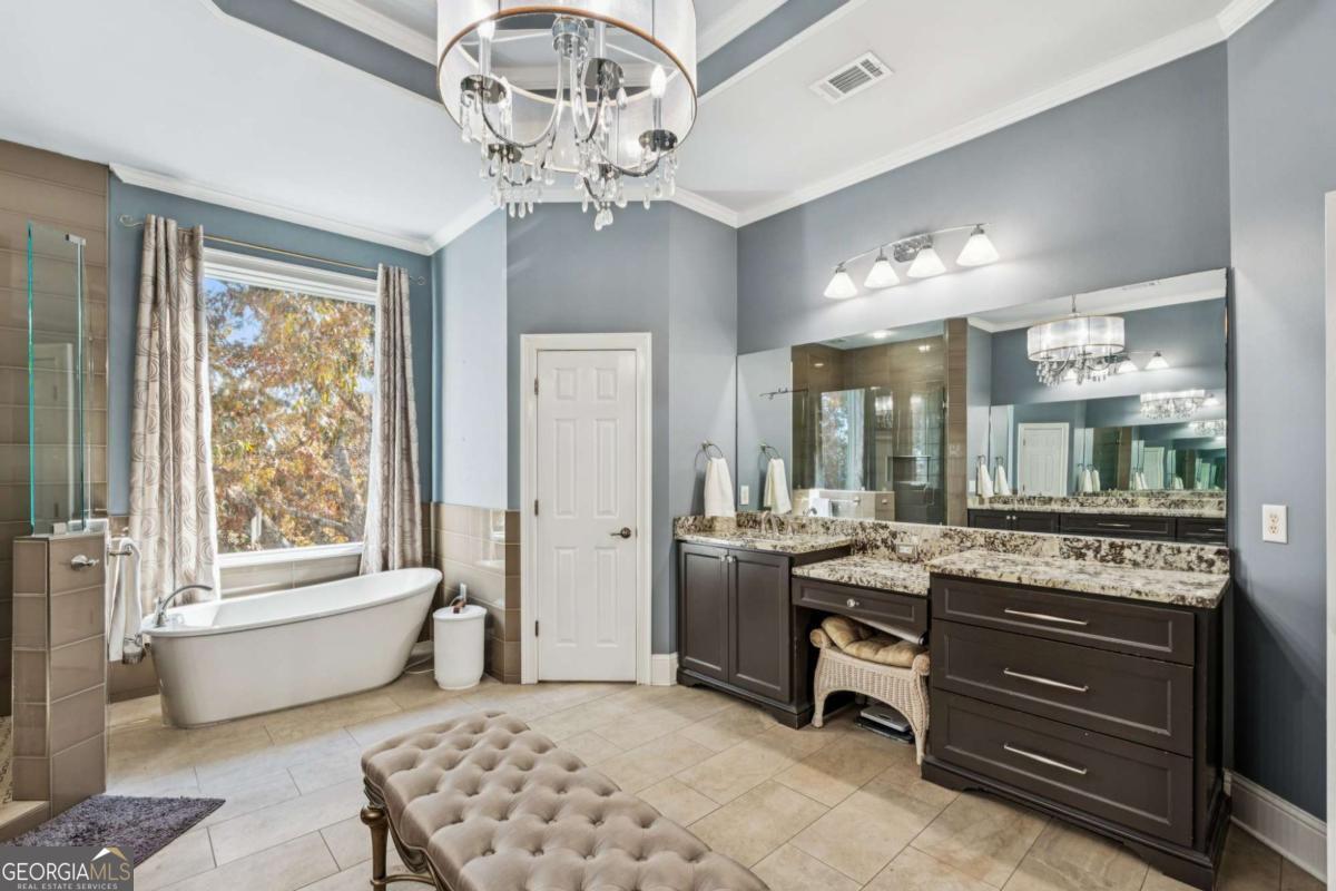 - Interior FeaturesBookcases, Double Vanity, High Ceilings, In-Law Floorplan, Separate Shower, Tile Bath, Tray Ceiling(s), Two Story Foyer, Vaulted Ceiling(s), Walk-In Closet(s)