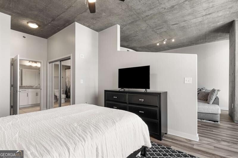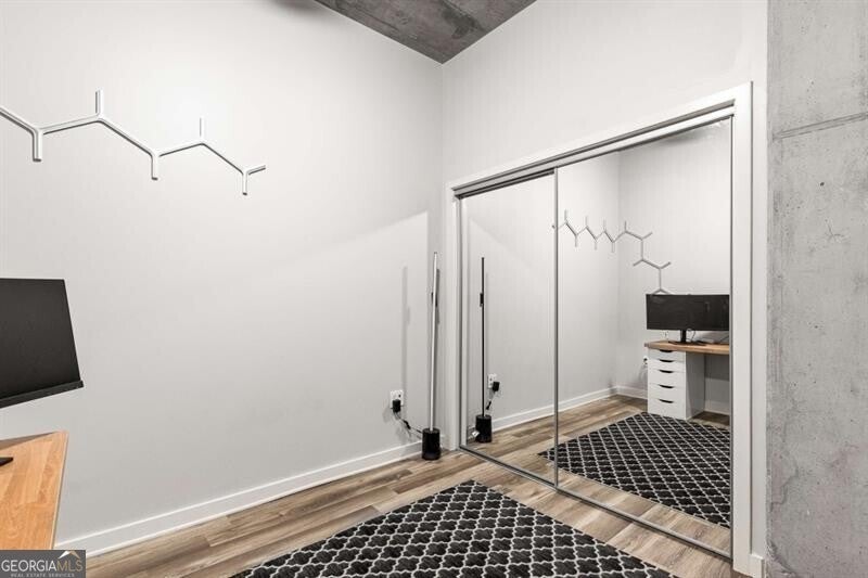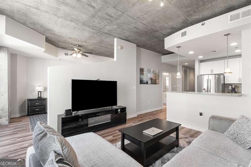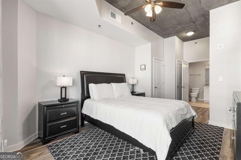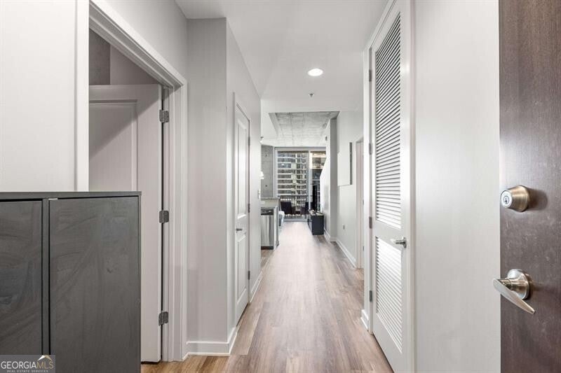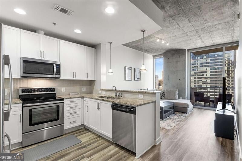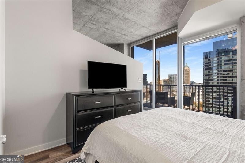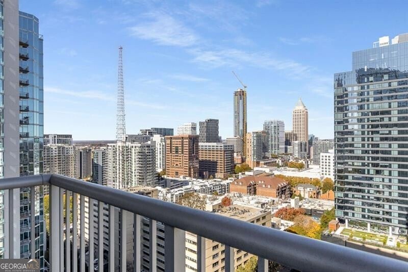 Experience true city living in the heart of Midtown in this bright and modern 2 bed condo on the 20th floor of Viewpoint! Floor-to-ceiling windows fill the space with natural light and showcase incredible city views - imagine waking up and looking out your window to watch the sunrise over the city! The open floor plan features sleek flooring and paint throughout, in-unit washer and dryer, and a spacious, updated bathroom - truly move-in ready! The kitchen is outfitted with stone countertops, stainless steel appliances, and plenty of storage the perfect space for both cooking and entertaining. The primary bathroom is fit for a king (bed!), features two closets, laundry closet, and en-suite bathroom. The second bedroom offers flexibility as a guest room or the perfect work from home office! Step outside onto your private balcony to take in the incredible Midtown skyline views and enjoy watching the city come alive at night. Viewpoint offers some of the best amenities in Midtown, including a resort-style pool, outdoor grilling area, movie theater, fitness center, and 24-hour concierge. You're just steps from Piedmont Park, the Beltline, MARTA, the Fox Theatre, Georgia Tech, and all of Midtown's best dining and nightlife. Welcome home!