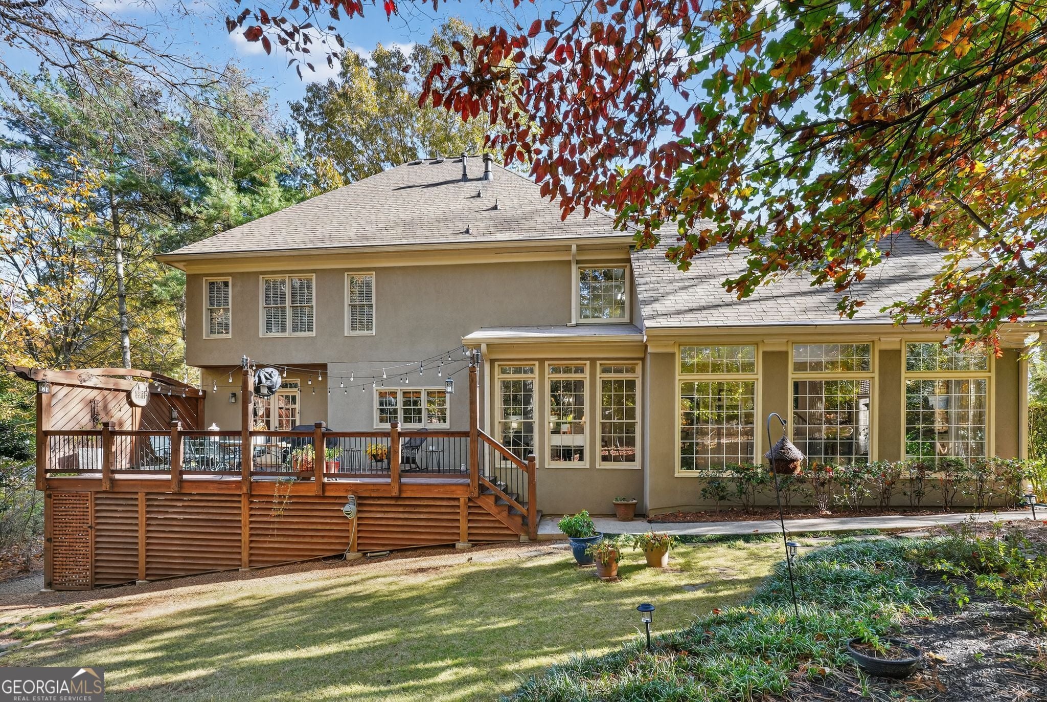 Welcome to this stunning 5-bedroom, 4.5-bath home in the highly sought-after Johns Creek community! With 3,600 sqft of thoughtfully designed living space, this residence offers both elegance and functionality-perfect for families and entertaining. This unique floor plan features two separate staircases, one leading to the private primary suite, which includes his and hers closets and a spa-like primary bathroom. Floor-to-ceiling insulated and tinted windows fill the home with natural light while providing energy efficiency and privacy. In addition to the 3600 square feet of finished living space, there is also an 1800 square feet daylight basement that is studded and plumbed. Its ready and waiting for the next owner's creativity. The gourmet kitchen flows seamlessly into the dining and living areas, ideal for gatherings large or small. Enjoy main-level access to your professionally landscaped backyard oasis, complete with a new deck-perfect for year-round entertaining. The exterior features timeless stucco for added curb appeal. Additional highlights include a home office and multiple living areas, providing ample space for work and play. Oxford Mill is a vibrant, active community featuring a top-tier swim team, ALTA tennis, and a walking trail to Dolvin Elementary. The HOA covers tennis courts, pickleball, a pool, pond, garbage, and common grounds. The pool and clubhouse are within walking distance, with plenty of guest parking available. Peace of mind comes with a roof replaced in 2015, a furnace and HVAC system regularly maintained (under warranty), a hot water heater new as of December 2024, and an active termite bond. Modern conveniences include Comcast Fiber optics installed. Opportunities like this are rare-schedule your private showing today and experience luxury, comfort, and convenience in one of Johns Creek's most desirable communities!