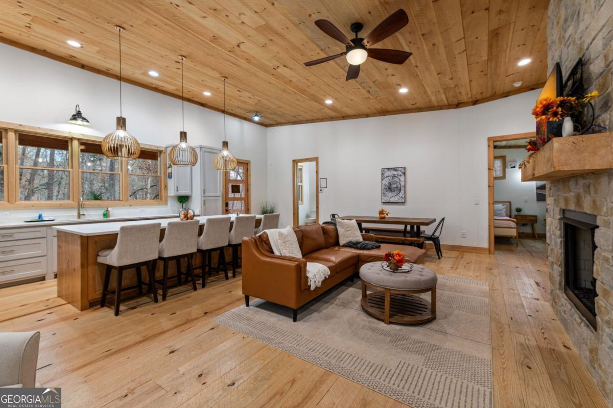 Welcome to your modern mountain retreat! This 2 bedroom, 2.5 bath cabin combines contemporary style with rustic charm and is perfectly situated just minutes from McCaysville and Blue Ridge, GA. Nestled on a private, wooded lot, this property offers peaceful seclusion while remaining close to dining, shopping, outdoor adventures, the Toccoa River and Lake Blue Ridge. This turn-key cabin is fully furnished and completely move-in ready-ideal whether you're seeking a full-time residence, weekend getaway, or a high-performing vacation rental. The open-concept main level features soaring ceilings, warm wood finishes, abundant natural light, and a modern kitchen with quality appliances. Each bedroom offers an en-suite bath for ultimate comfort and privacy. Enjoy relaxing or entertaining on the spacious decks surrounded by mountain tranquility. With short-term rentals allowed, this property presents an exceptional investment opportunity in one of North Georgia's most desirable areas. Combination of location, privacy, and modern finishes-this cabin has it all. Just bring your bags and start enjoying the mountain life!
