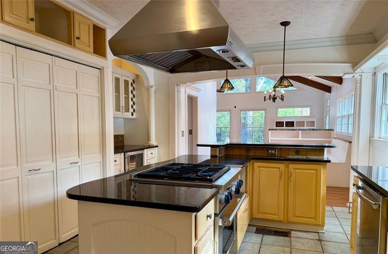 - Interior FeaturesWhirlpool Bath, Vaulted Ceiling(s), Beamed Ceilings, Pulldown Attic Stairs