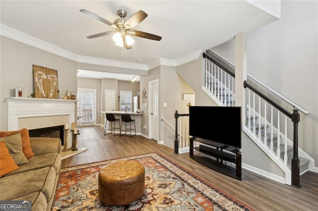 Nestled at 5972 Eagle Tiff Lane, Sugar Hill, GA, this attractive property in Gwinnett County presents an exceptional residential opportunity. The home is in great condition. The living room is a welcoming space, anchored by a fireplace that promises warmth and ambiance; crown molding adds a touch of refined elegance to the room's design. In the kitchen, culinary aspirations come to life amidst shaker cabinets and stone countertops, while a kitchen peninsula and bar offer versatile space for both meal preparation and casual dining. Crown molding continues here, unifying the design aesthetic throughout the heart of the home. The primary bedroom is a private retreat, enhanced by a tray ceiling that adds visual height and architectural interest; crown molding provides a cohesive design element. An ensuite bathroom offers convenience and privacy. This 1798 square feet home, built in 2003, contains two bedrooms and two full/two half bathrooms and offers an open floor plan. This Sugar Hill residence represents a unique opportunity to enjoy a home designed for both comfort and sophisticated living.