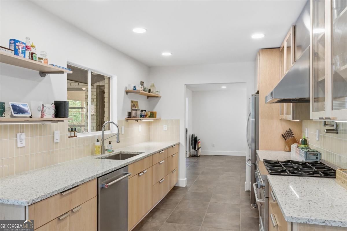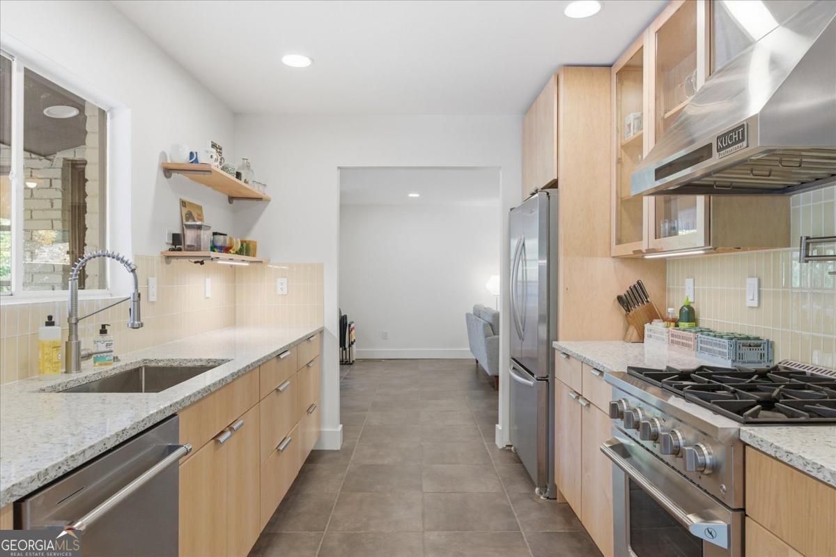 Impeccably upgraded midcentury modern ranch with gorgeous backyard oasis & cocktail pool in sought-after Lavista Park, minutes from Emory, Buckhead, Buford Highway, 85 & 400. Situated among a luxury home boom between Lenox Rd and Briarcliff Rd, this stunning property has been thoughtfully remodeled with premium finishes and upgrades. New gourmet kitchen with maple frameless cabinets, professional stainless steel range & hood, Vetrazzo counters & glass subway tile backsplash. All-new bathrooms with waterfall showers, subway & penny tile. New LG washer/dryer set, designer interior LED lighting, modern PEX plumbing lines, 200-amp service, energy-efficient open cell spray foam insulation, new premium interior & exterior paint, solid-core MDF doors w/premium hardware, custom EasyCloset systems, Loft ripplefold curtains, Tesla charger, ADT security system, Rainbird irrigation & more. Original Italian ceramic & saltillo tile floors stand up to wear & tear (no creaks or loud footsteps!). Fully fenced-in backyard with patio, gunite salt water pool, mature trees & fresh landscaping. Front yard with mature landscaping, generous gravel parking pad, carport & original Spanish courtyard. Warm, coordinated midcentury interior & exterior aesthetic. Don't miss the chance to own the extremely livable, instagrammable Atlanta midcentury modern ranch you've been waiting for!