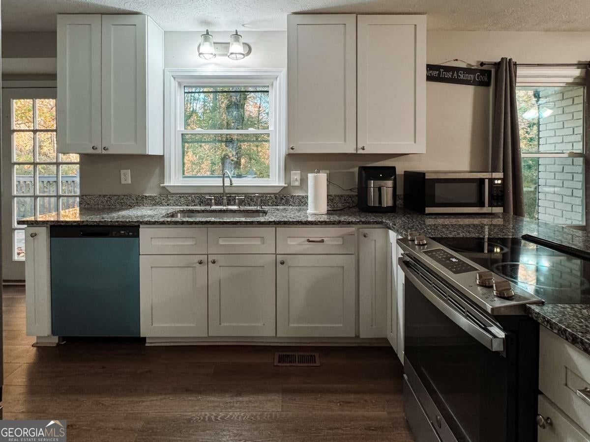 Welcome to this beautifully updated 3 bedroom, 2 bath, four-sided brick home situated on a serene 1.2-acre lot. The home underwent a thorough 2023 renovation including a new roof, new HVAC, new flooring, new kitchen cabinets, granite countertops, updated bathroom showers and vanities, modern fixtures, and a new water heater. The spacious back deck offers plenty of room for outdoor dining and entertaining, all while enjoying the peaceful wooded views.The full daylight basement is already studded and ready for your vision, offering endless potential for expansion and added value! Enjoy being just minutes away from all the dining, shopping, and entertainment in downtown Douglasville. Don't miss out! Schedule a showing today!