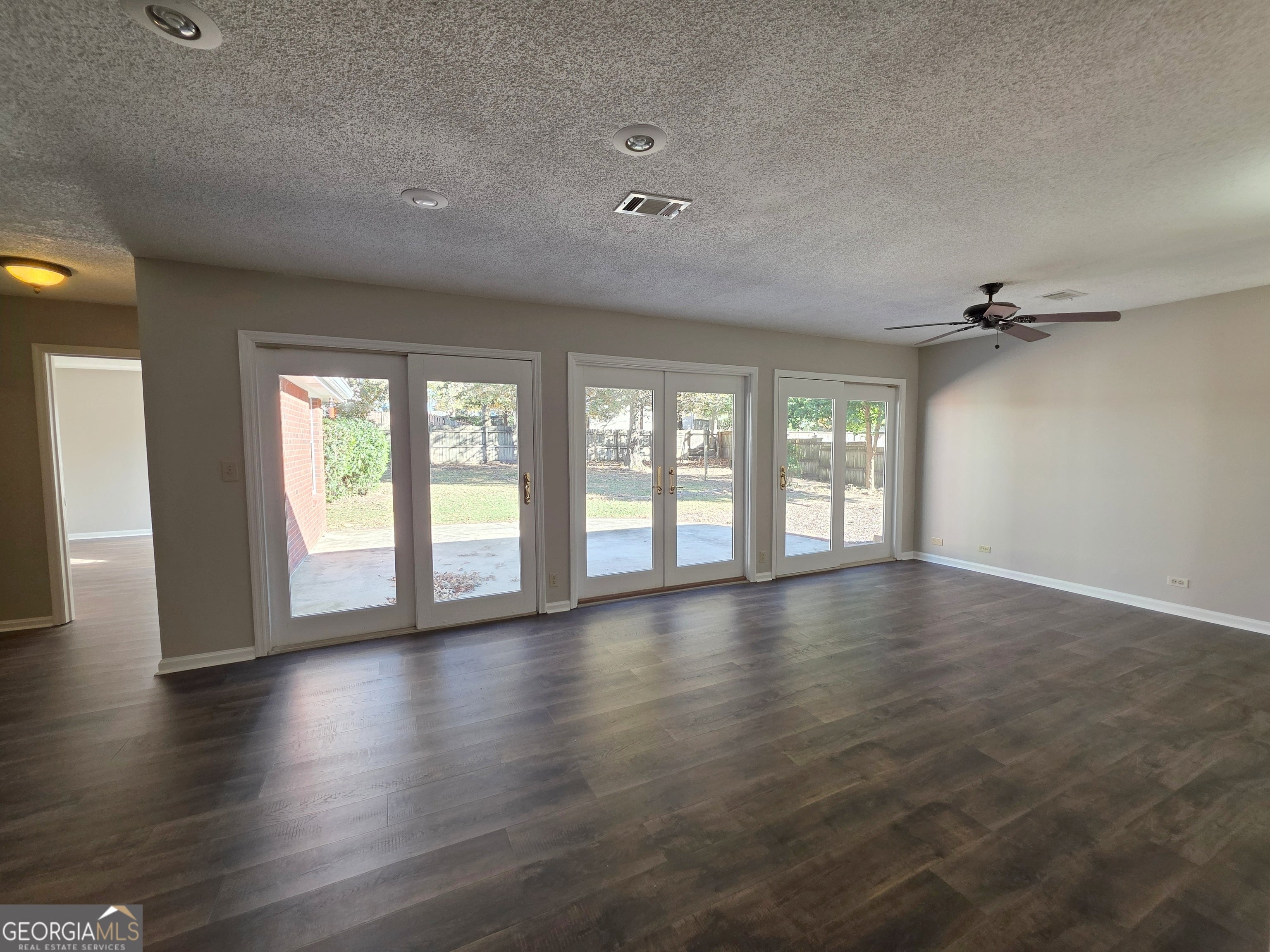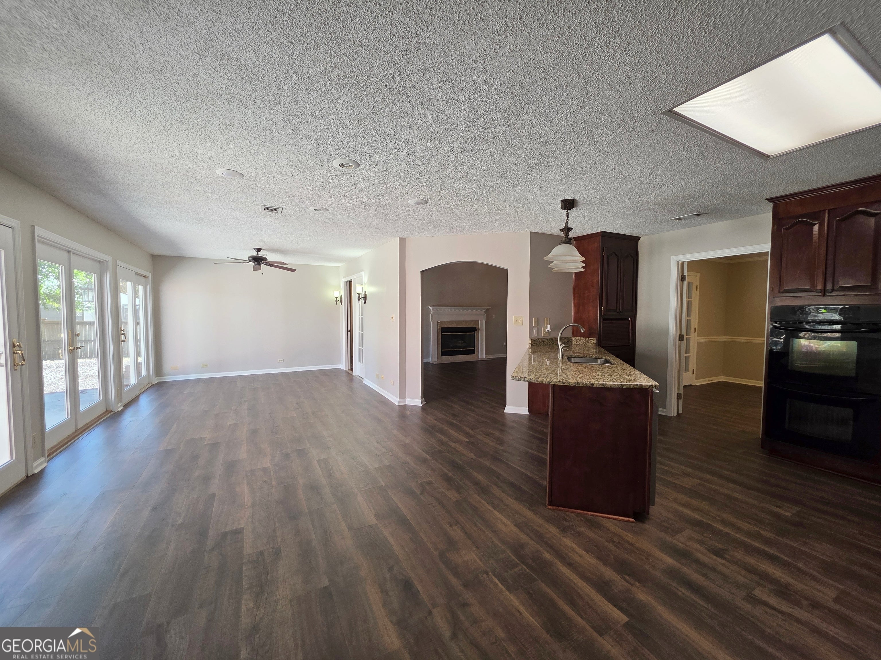 Discover comfort and style in this freshly renovated 3-bedroom, 2-bath home in Warner Robins offering 2,139 sq. ft. of inviting living space on a spacious 0.61-acre lot. A long covered front porch welcomes you inside to an airy living room with high ceilings and a cozy fireplace that instantly feels like home. Off the main living area, a versatile room with elegant French doors makes the perfect home office or formal dining space. The open kitchen and family room design is ideal for entertaining, featuring a breakfast bar, double wall oven, cooktop, pantry, and three sliding glass doors that fill the space with natural light and lead to a large patio overlooking the fully fenced backyard. The owner's suite offers a private retreat with dual walk-in closets, a soaking garden tub, separate shower, and double vanity. The split bedroom plan adds extra privacy for family or guests. With fresh paint, new LVP flooring, and a two-car side-entry garage that leads directly into the kitchen, this home blends functionality with modern charm. Enjoy peaceful evenings on the patio, room to garden or play, and extra storage in the backyard shed. Conveniently located near shopping, dining, and Robins Air Force Base, this move-in-ready home checks all the boxes for comfort, space, and location. Call your favorite real estate agent to schedule a viewing!