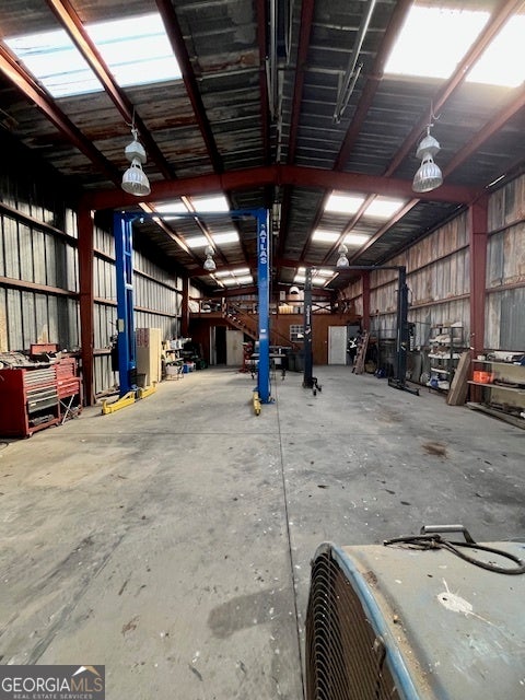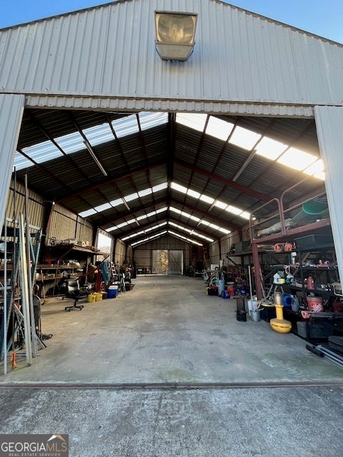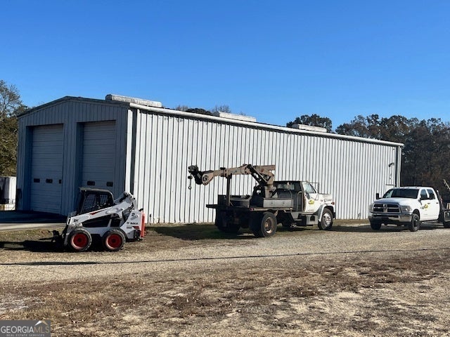 Great Hoschton (Barrow Co) location with close access to I-85. This property features an Office space (1170sf), three offices, two baths and breakroom, covered open storage space (5000sf) with power and water, upper shop (4040 sf) has water, power, 14' bay doors on three sides, mezzanines, bathroom, two small offices inside, outside under awning storage. Lower shop considered a mechanics shop, (2100 sf) has 14' bay doors, power, water, two manlifts (one heavy duty, other is standard vehicle), mezzanine, breakroom with bathroom and Mini split for heat/air. 4-5 small outdoor storage buildings and wash station for equipment and vehicles. 8' fence with barbed wire above around perimeter of property with gate on 3.5 acres. Ideal for a construction yard. Appointment Only.