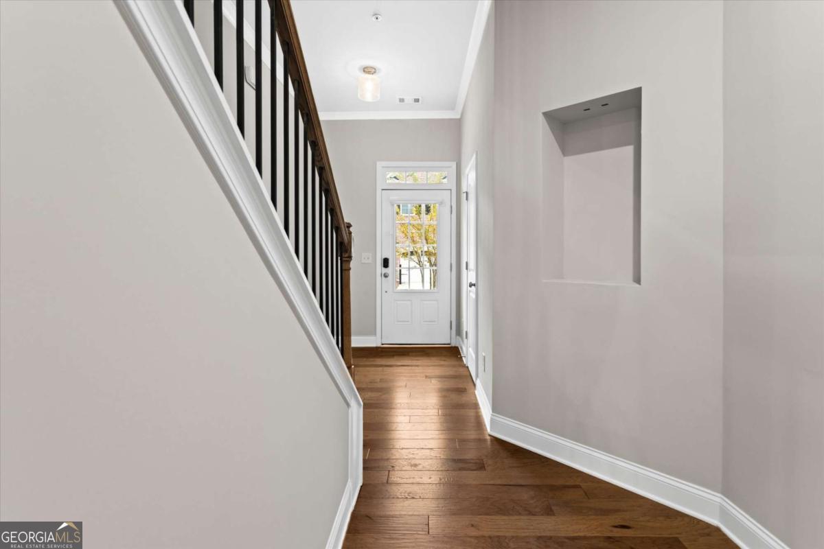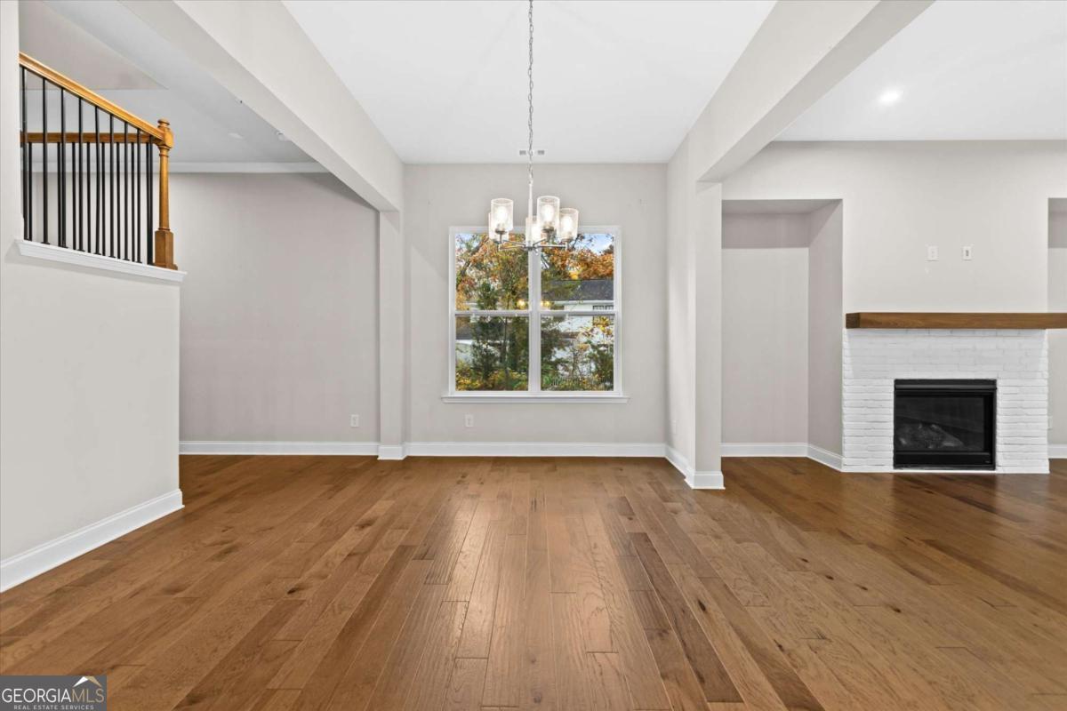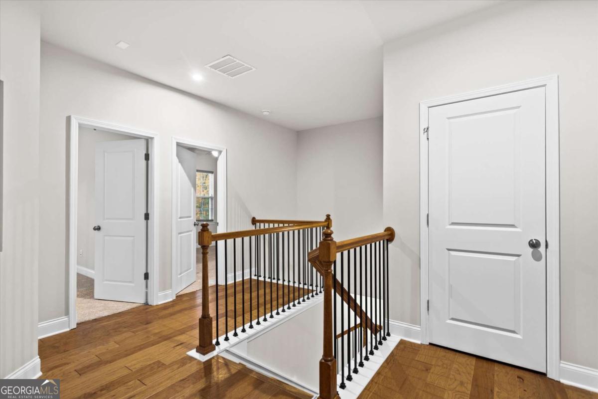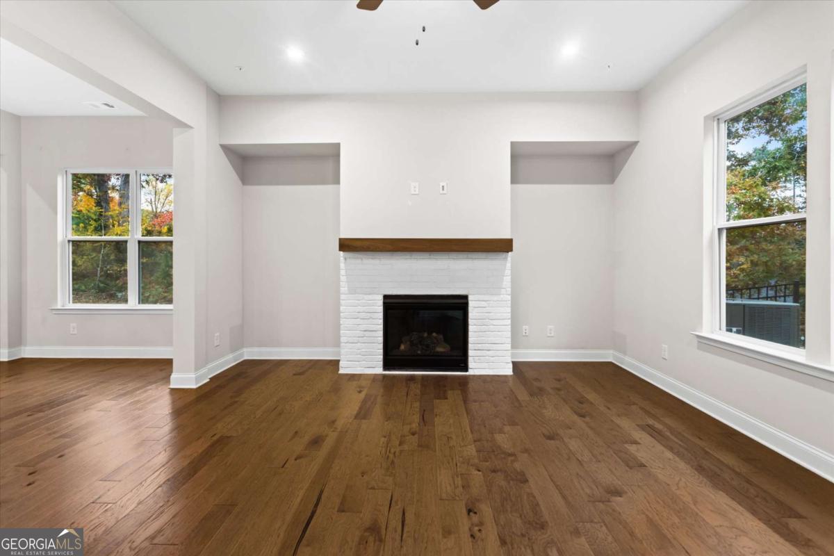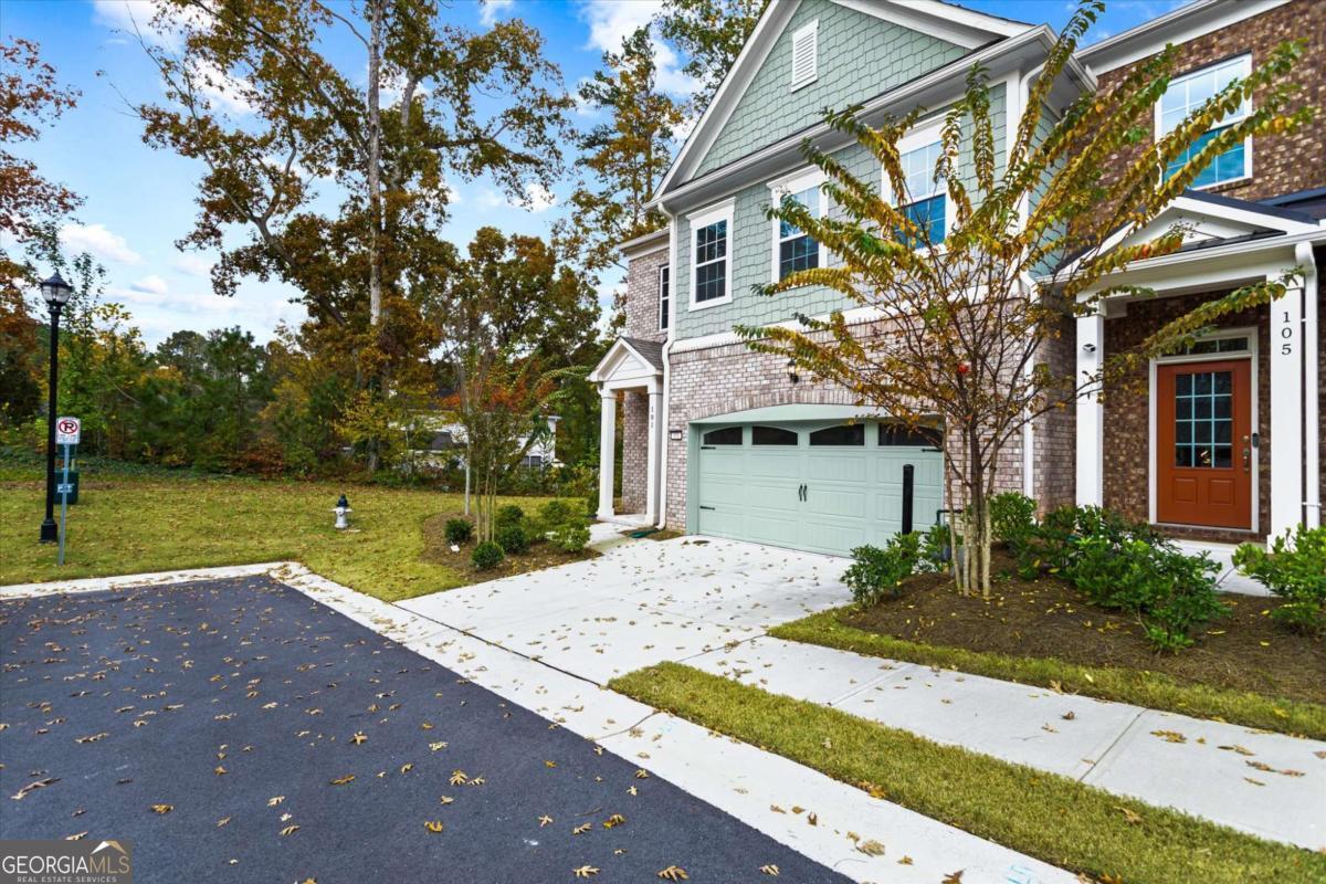 Modern NEW-Construction Style End-Unit Townhome Built 2023 Aldyn Community 3BR/3.5BA 2-Car Garage Premium Upgrades Throughout. Experience elevated contemporary living in this stunning, like-new end-unit townhome located in the sought-after Aldyn community! Just minutes from the vibrant charm of downtown Woodstock. Built in 2023 and lightly lived in, this home showcases sleek modern design, luxury finishes, and the fresh feel of new construction throughout.Step into a bright, open main level featuring warm hardwood floors, custom lighting, and a beautifully designed modern fireplace in the living room. Beautiful iron rod railings enhance the staircase, adding a sophisticated architectural touch.The gourmet kitchen offers white cabinetry, quartz countertops, a large island, stainless-steel appliances, range hood, under-cabinet lighting, a chic tile backsplash, and brand-new refrigerator, washer, and Walk in pantry. Exceptional modern Kitchen.The upper floor features hardwood flooring in all common areas and high-end carpet in all three bedrooms, creating a cozy, warm, and inviting feel. Tiles in the laundry area add durability and easy maintenance. The luxurious primary suite includes a private balcony, two walk-in closets, and a spa-inspired bathroom with double vanities, soaking tub, and a designer-tiled walk-in shower.Additional upstairs highlights include a large laundry room with a utility sink, plenty of storage, and new high-efficiency washer-dryer. Both secondary bedrooms include their own full private baths and walk-in closets. One of which features a window, allowing natural light and ventilation. The hardwood floor in the common area has made easy convenience. Outdoor living is elevated with both a front patio and a private fenced backyard patio, perfect for entertaining or relaxation. Premium upgrades continue throughout the home with high-end blinds, new engineered hardwood flooring, and beautifully finished spaces. A standout feature is the oversized, ground-level 2-car garage, easy to access and complete with a premium finished floor and TWO water heaters for added convenience.Located in a quiet, beautifully maintained community offering resort-style amenities, including a swimming pool and pool house. This home is just minutes from top-tier shopping, dining, parks, and major highways. A rare blend of modern style, comfort, and new-construction elegance. Schedule your private tour today!